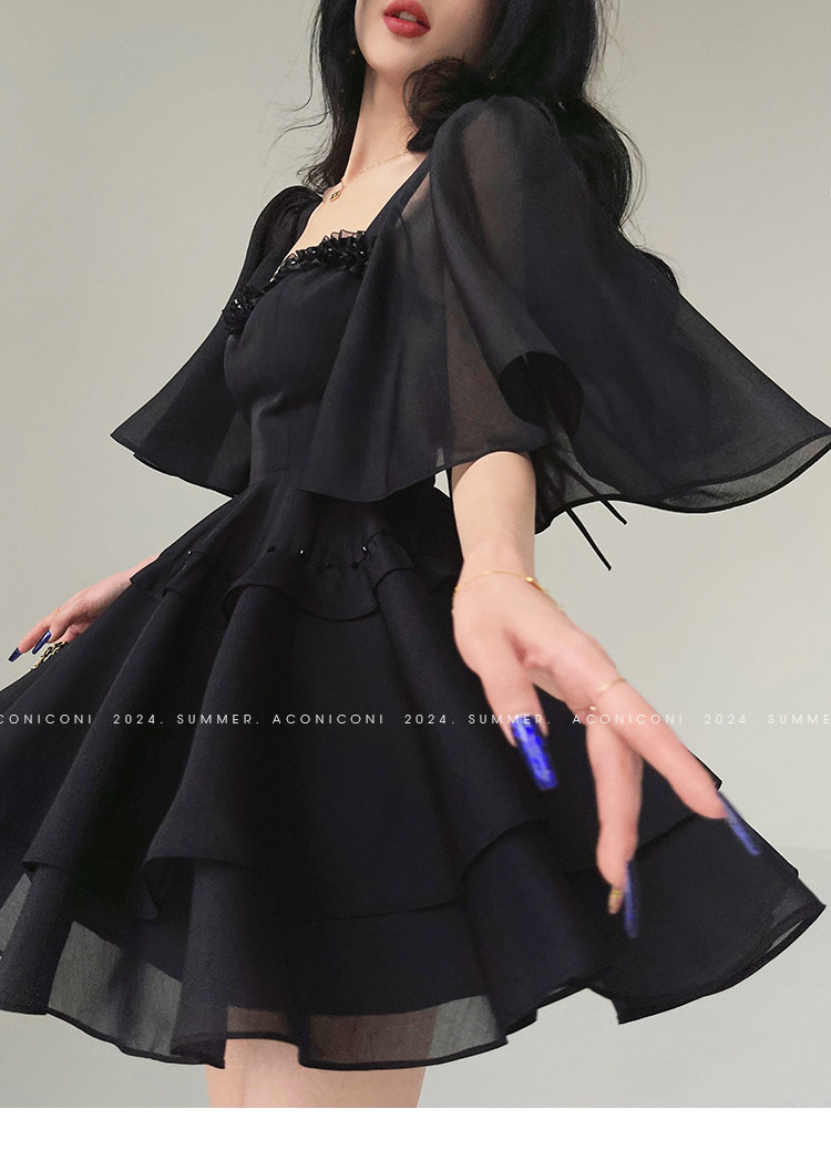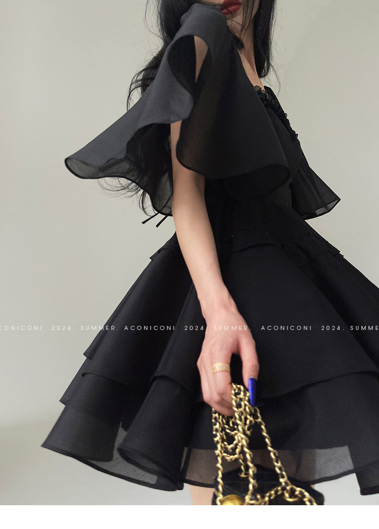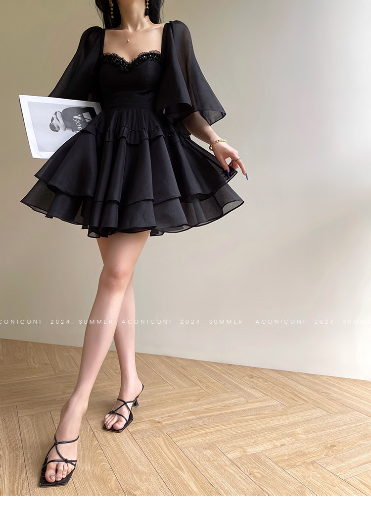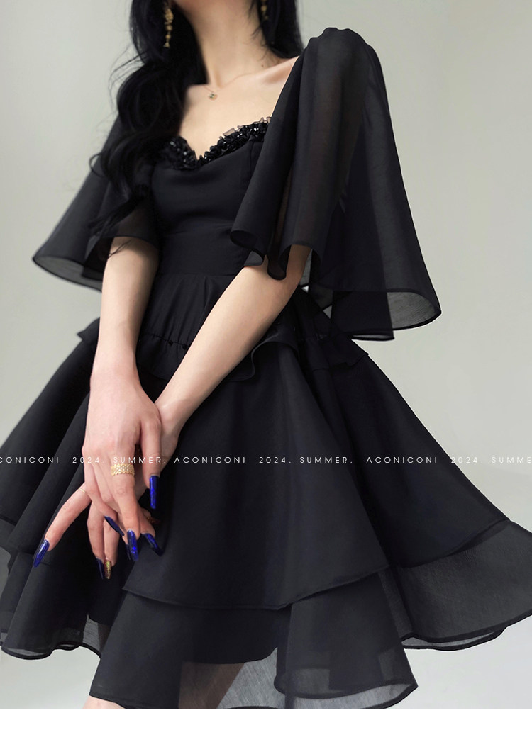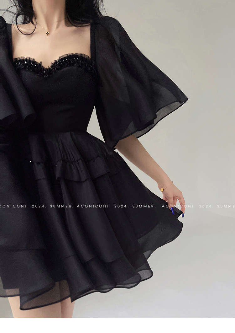 Aconiconi b|夏夜微光法国覆古赫本风格腰修身连衣裙串珠飞袖 [Original Page Link]