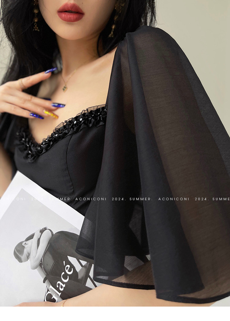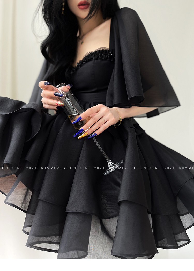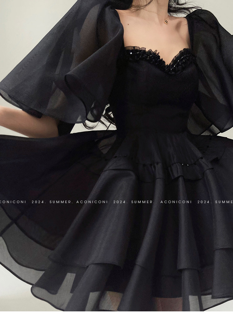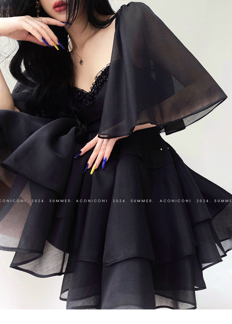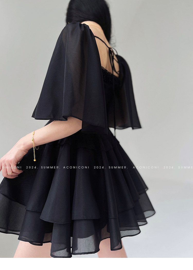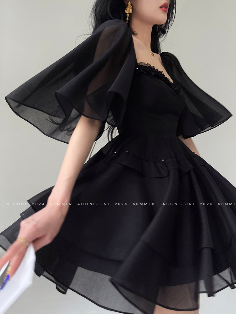 Aconiconi b|夏夜微光法国覆古赫本风格腰修身连衣裙串珠飞袖 [Original Page Link]