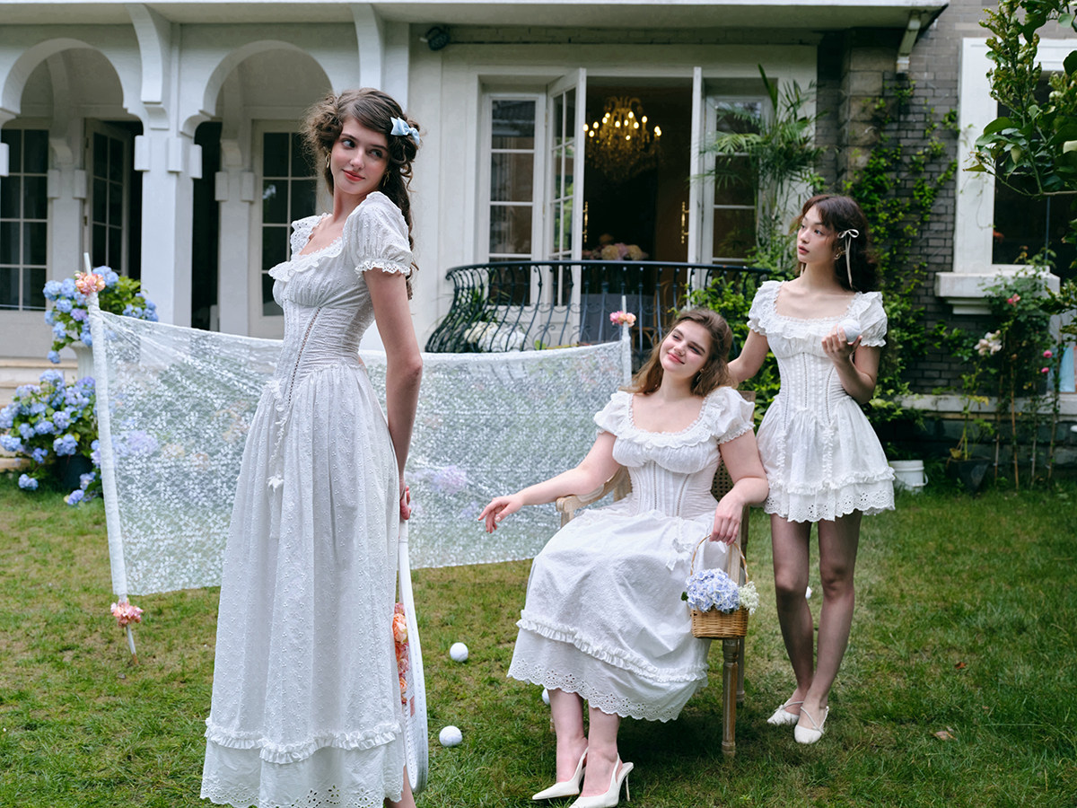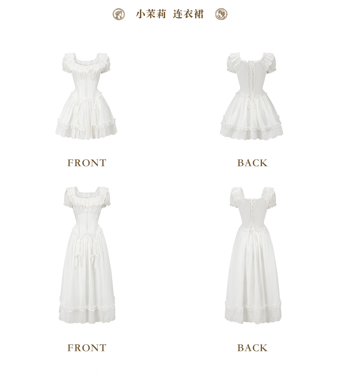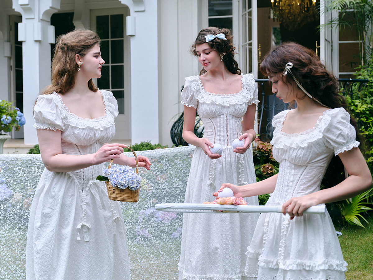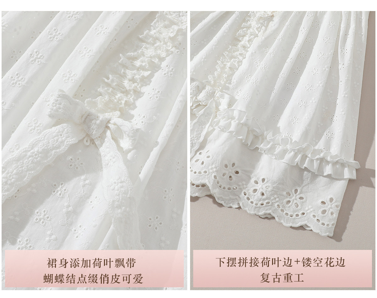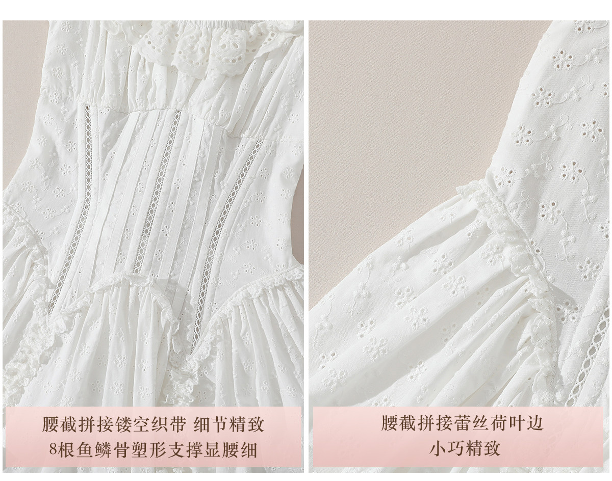 LaceMade Little Jasmine French pastoral design hollow white fishbone dress short and long version