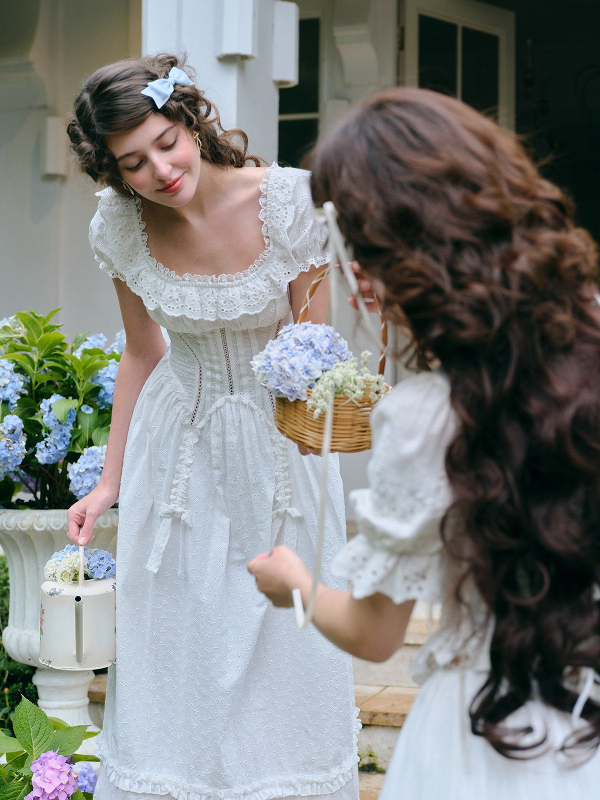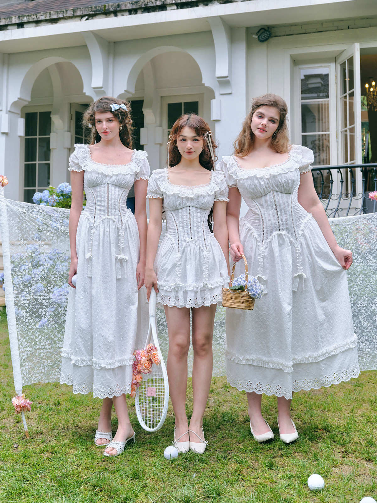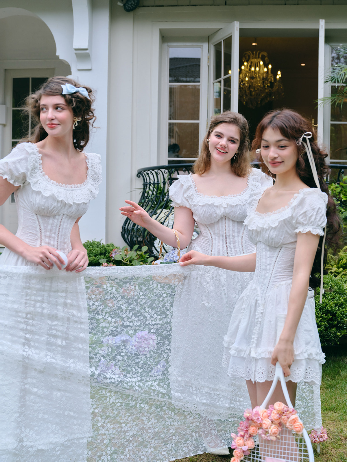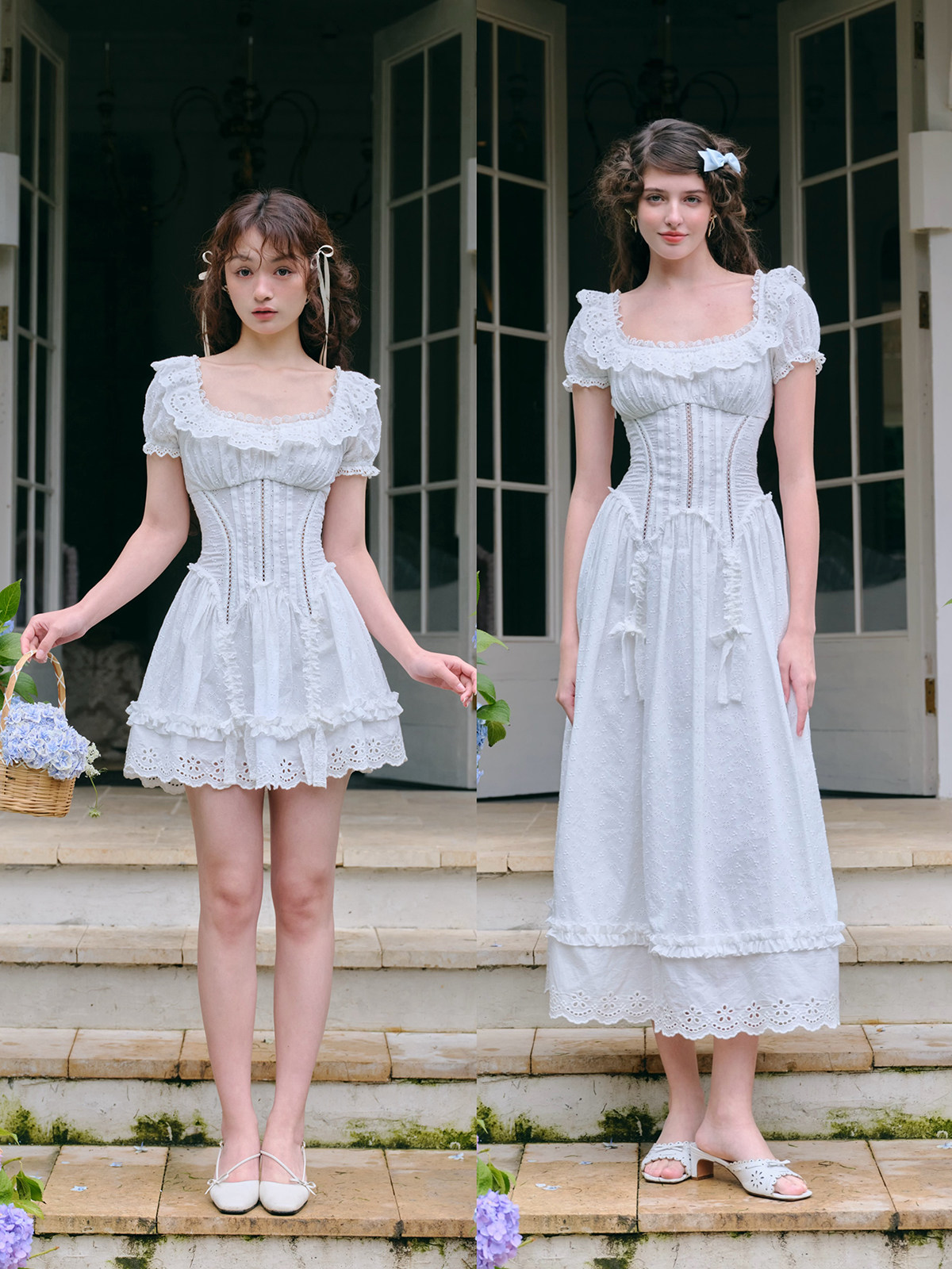 LaceMade Little Jasmine French pastoral design hollow white fishbone dress short and long version