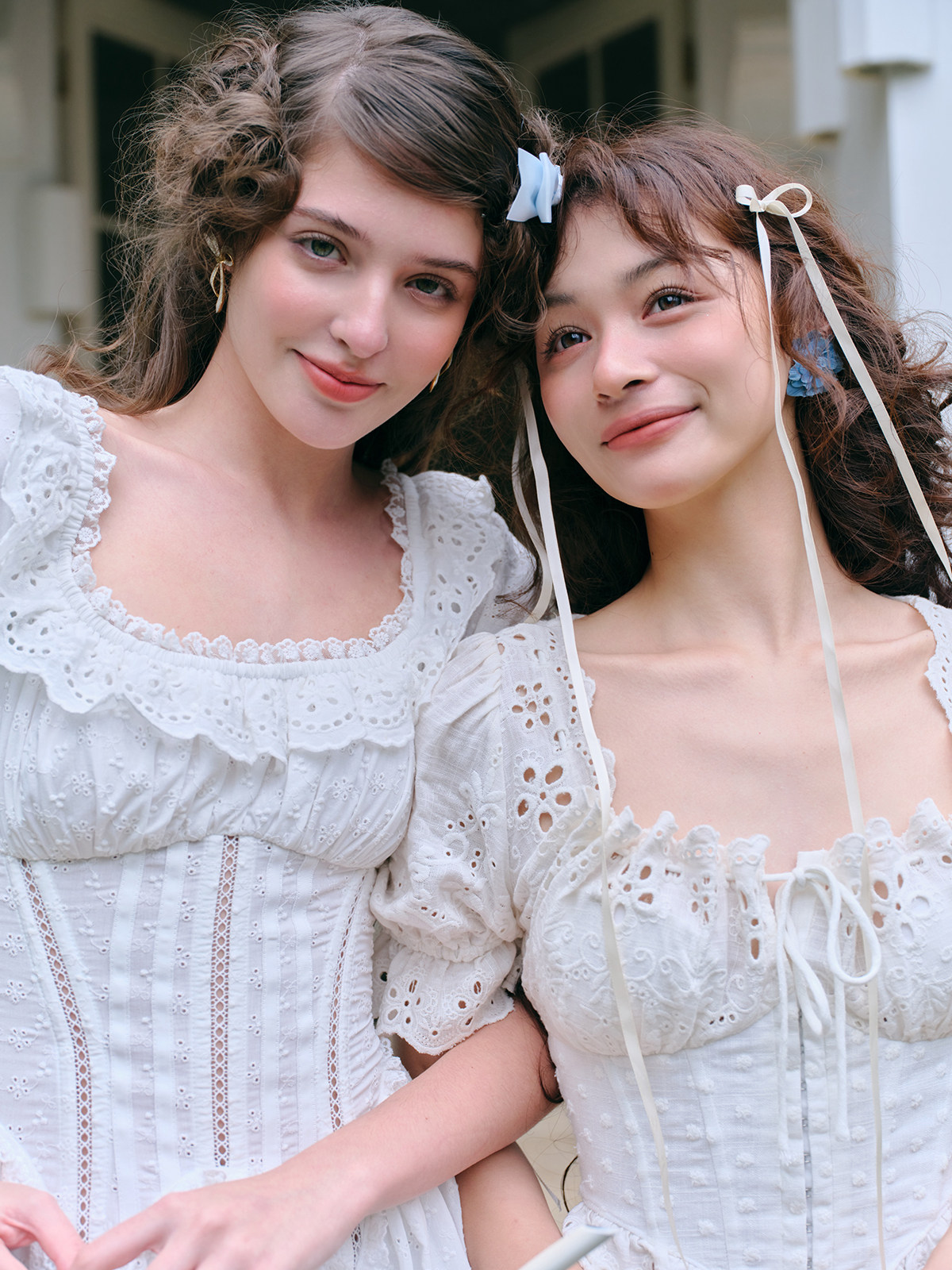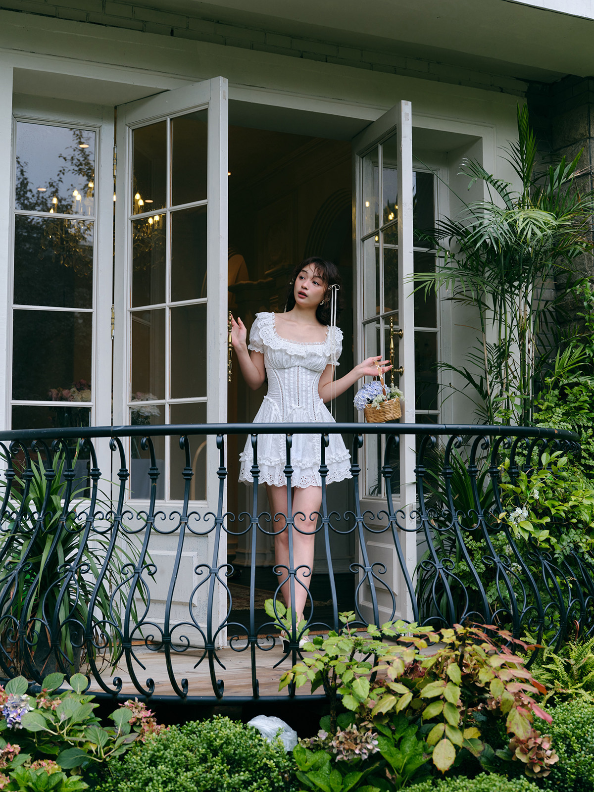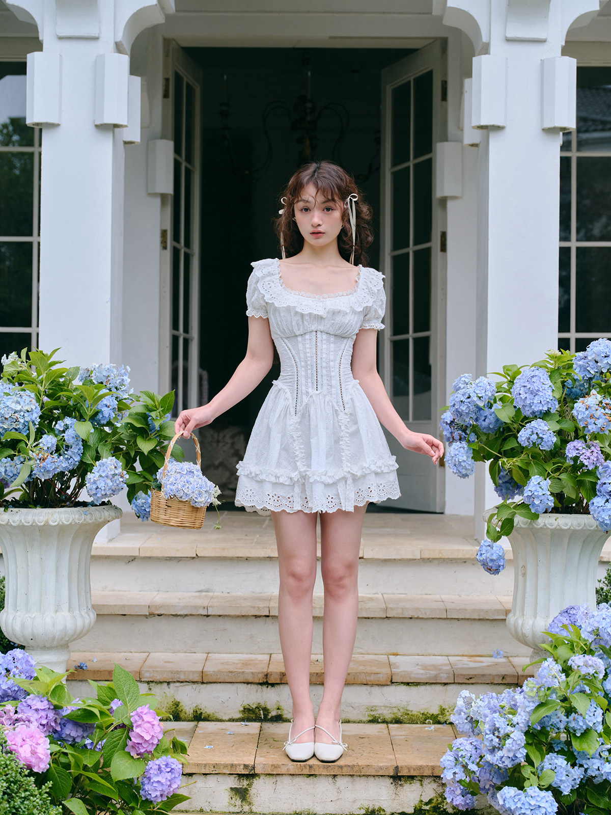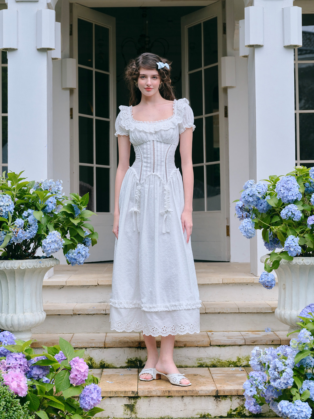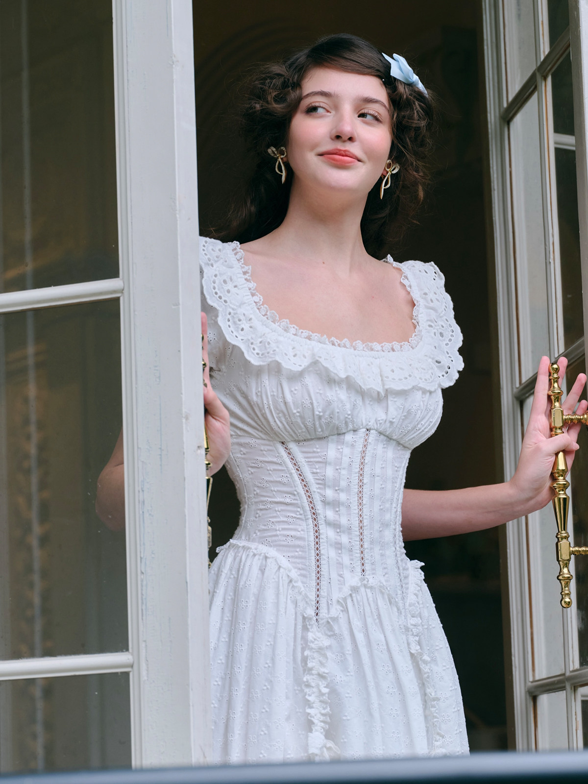LaceMade Little Jasmine French pastoral design hollow white fishbone dress short and long version