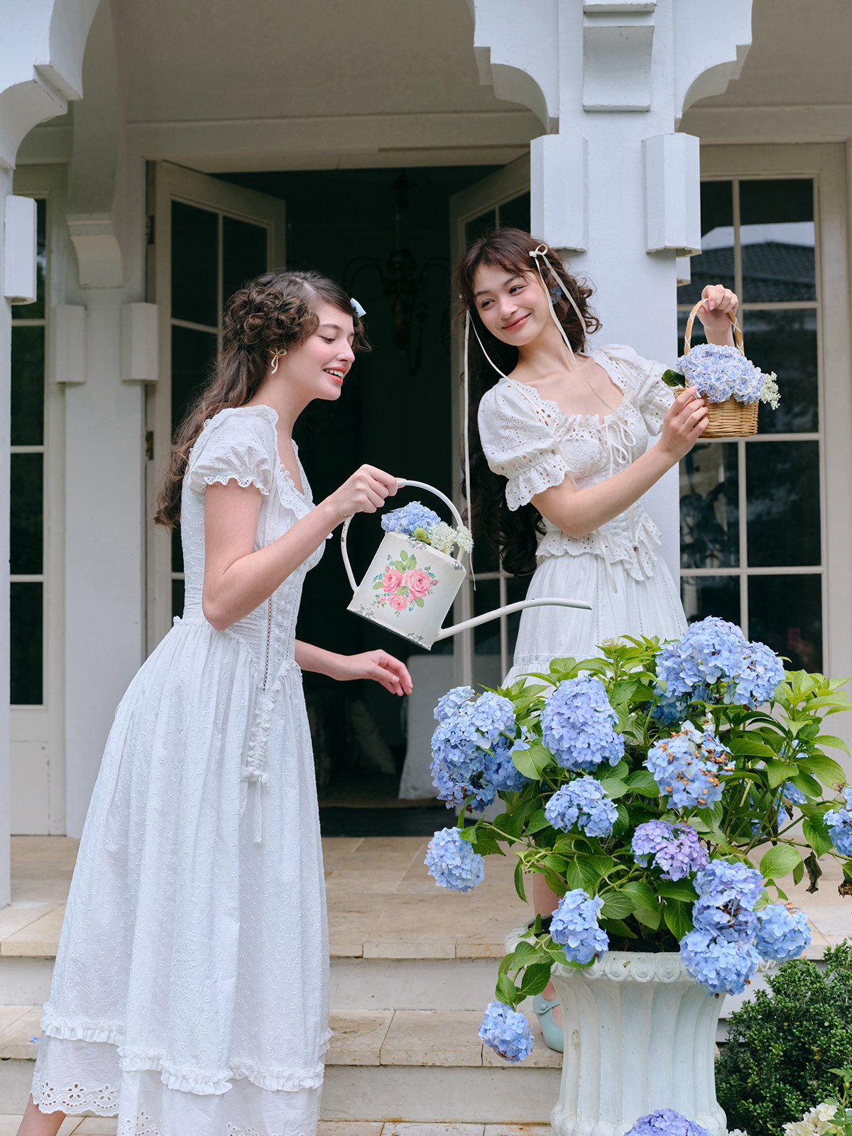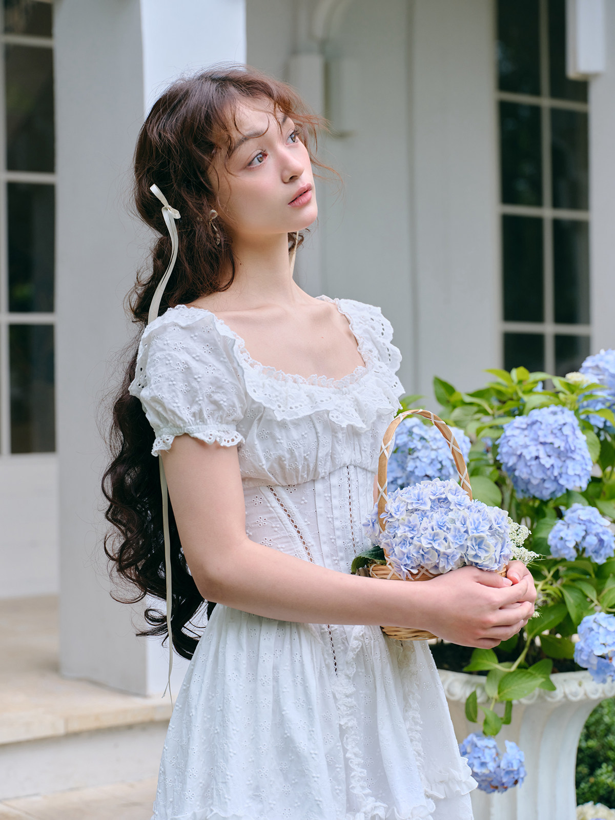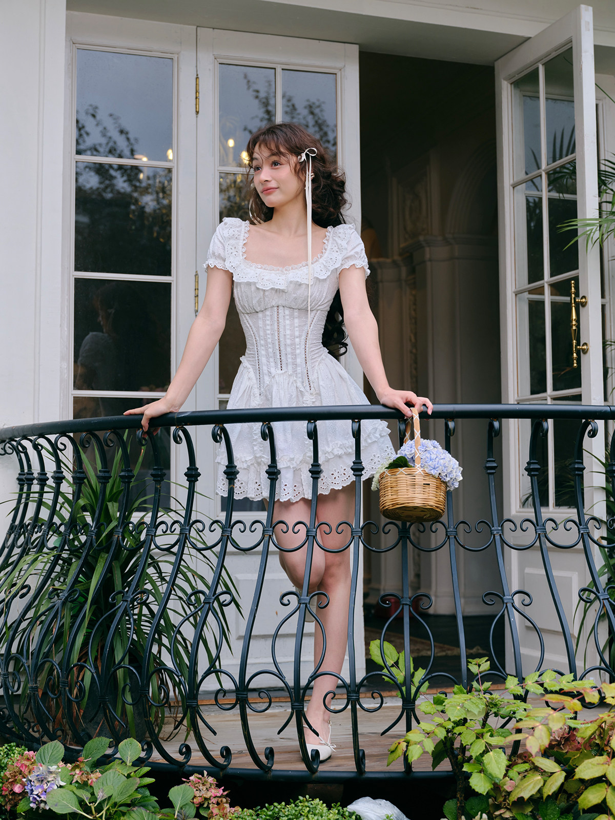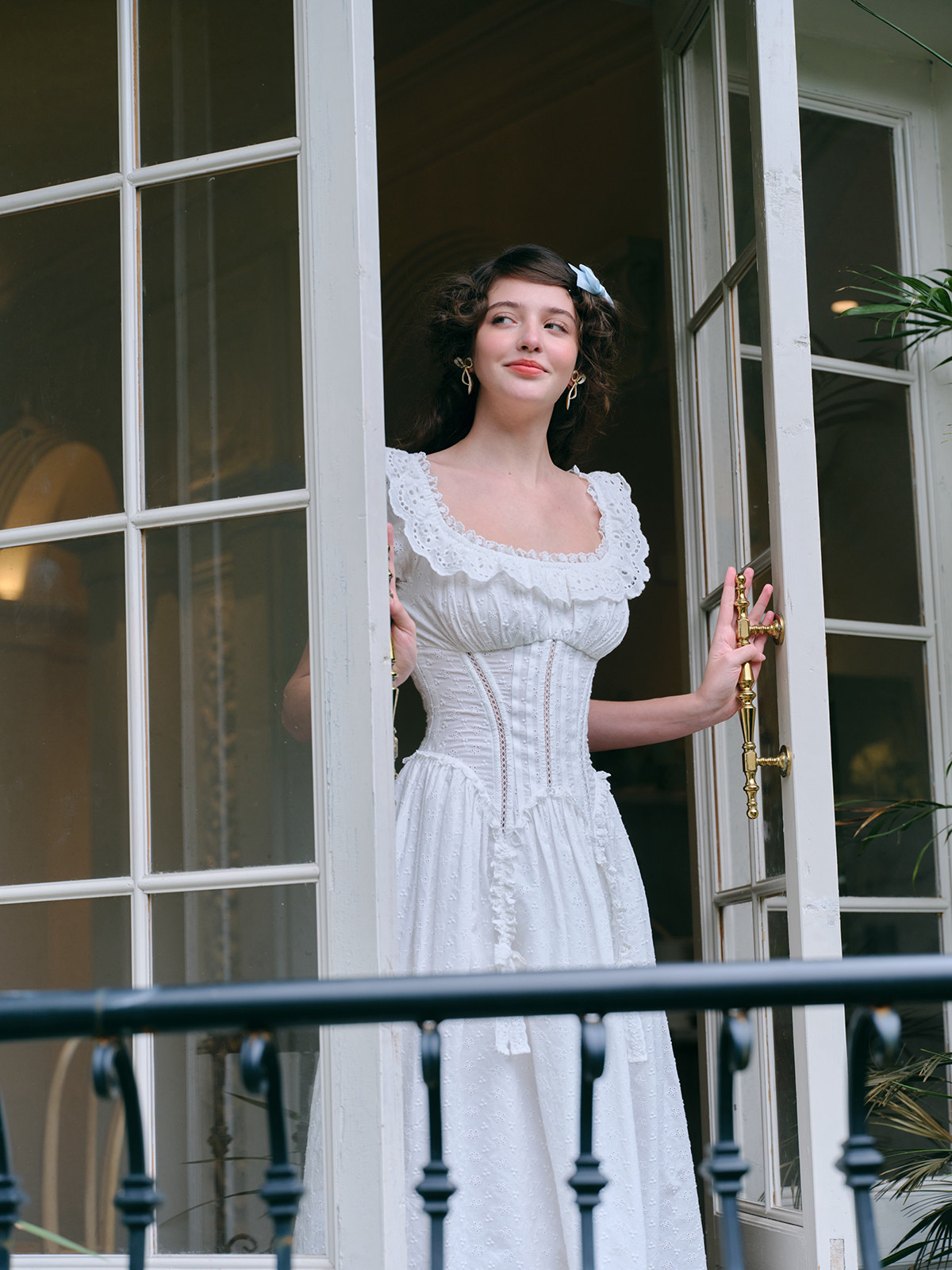 LaceMade Little Jasmine French pastoral design hollow white fishbone dress short and long version