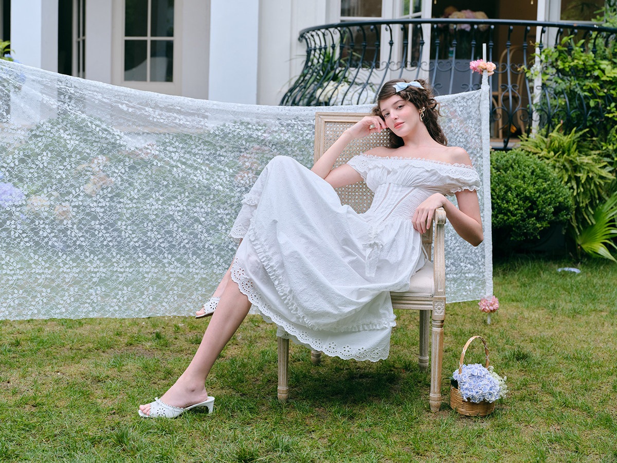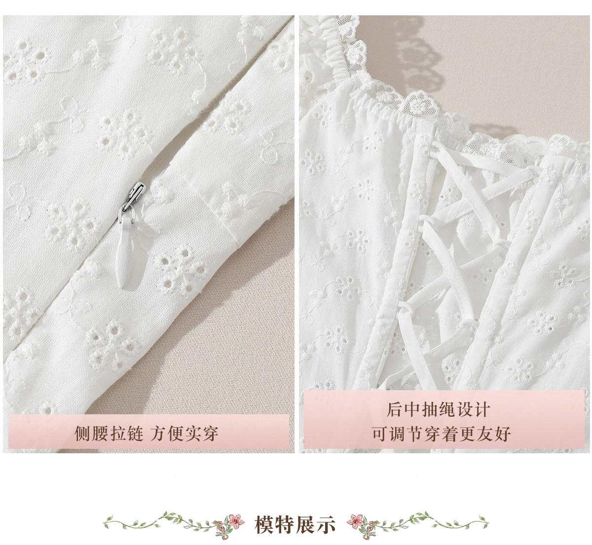 LaceMade 小茉莉 法式田园设计感镂空白色鱼骨连衣裙小个子长短款 [Original Page Link]