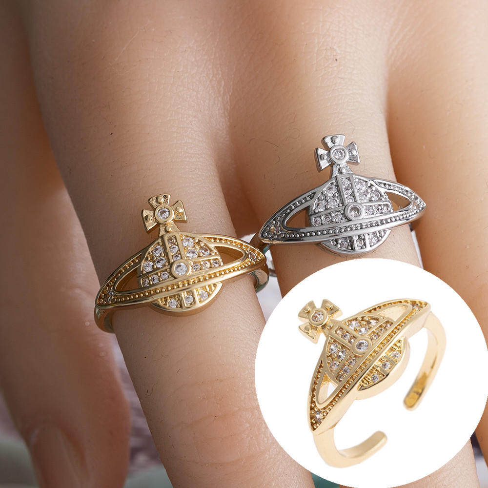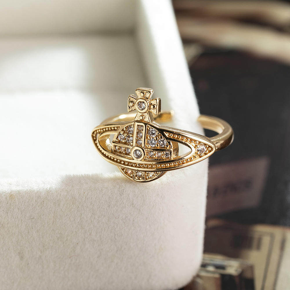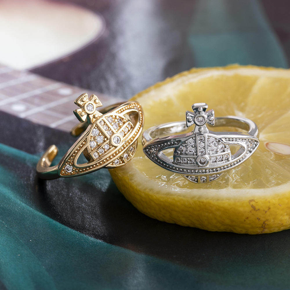 Vivienne Westwood ring, Saturn niche design, micro-paved zircon ring, vintage open ring, new cross-border product from Europe and America.
