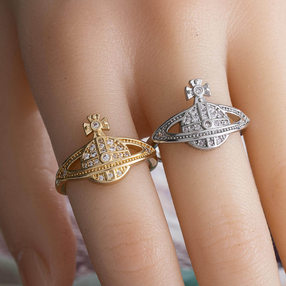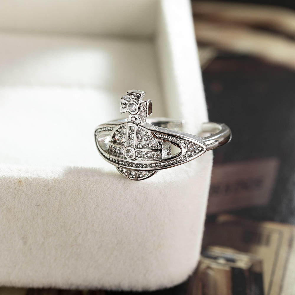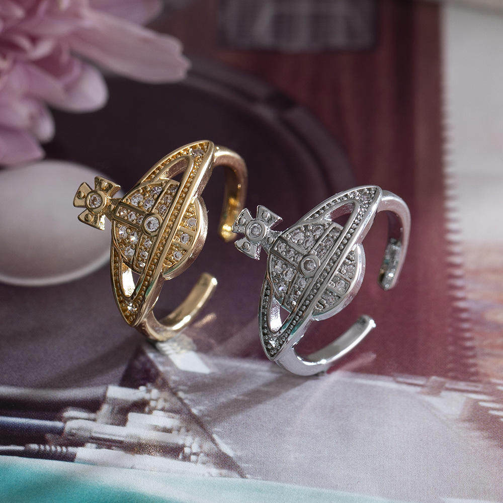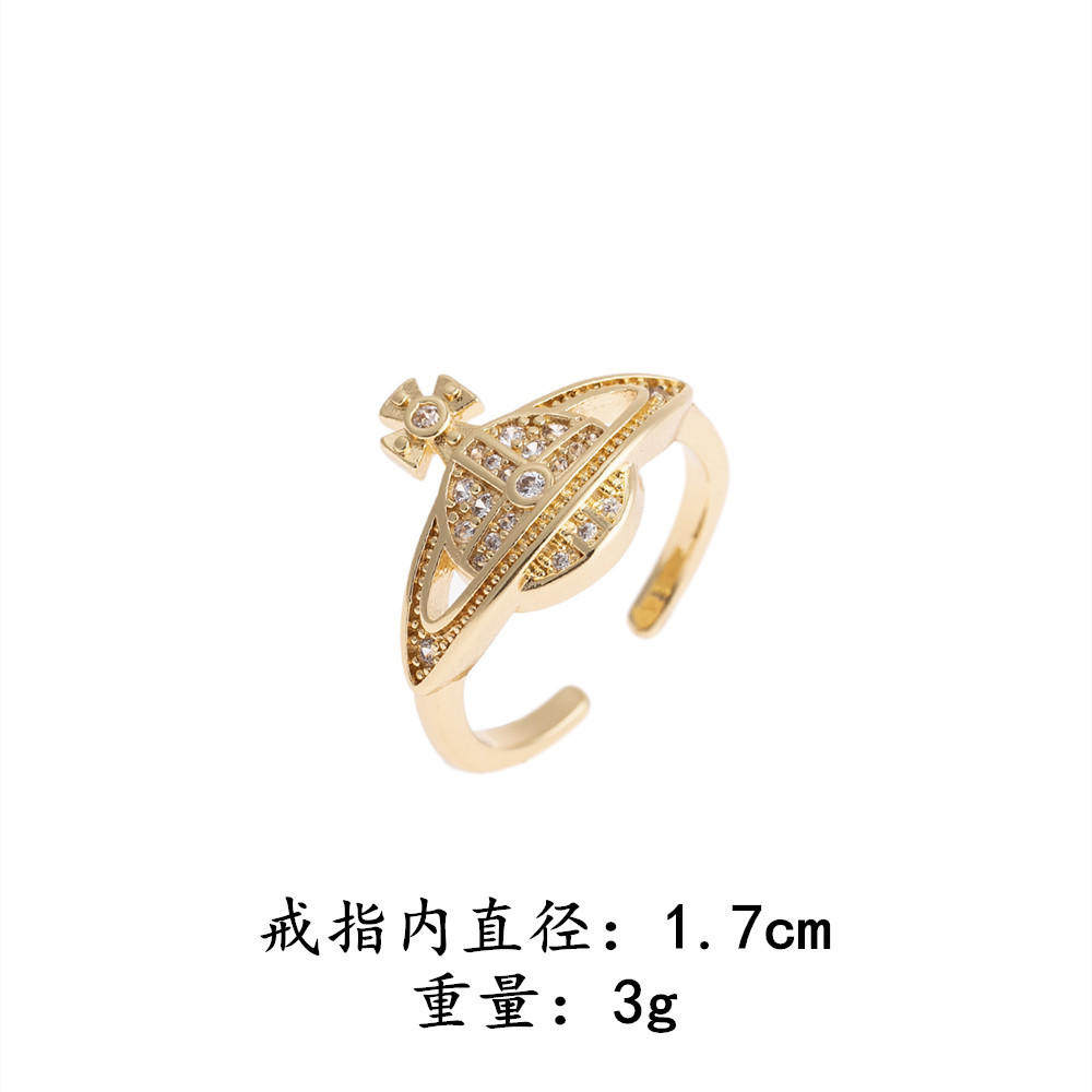 Vivienne Westwood ring, Saturn niche design, micro-paved zircon ring, vintage open ring, new cross-border product from Europe and America.
