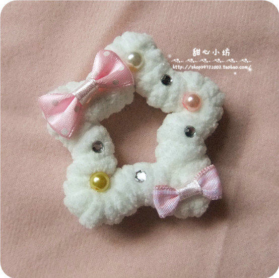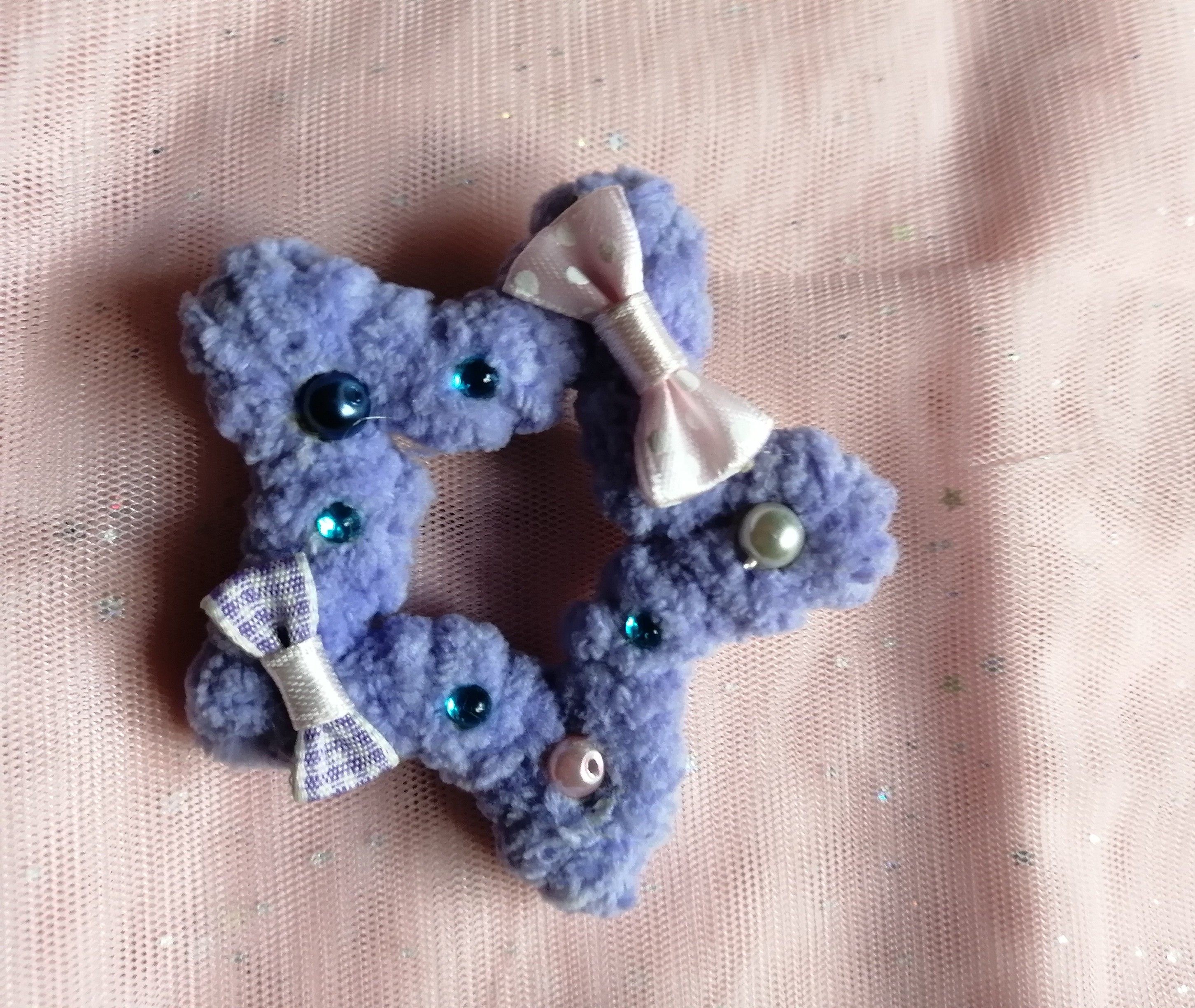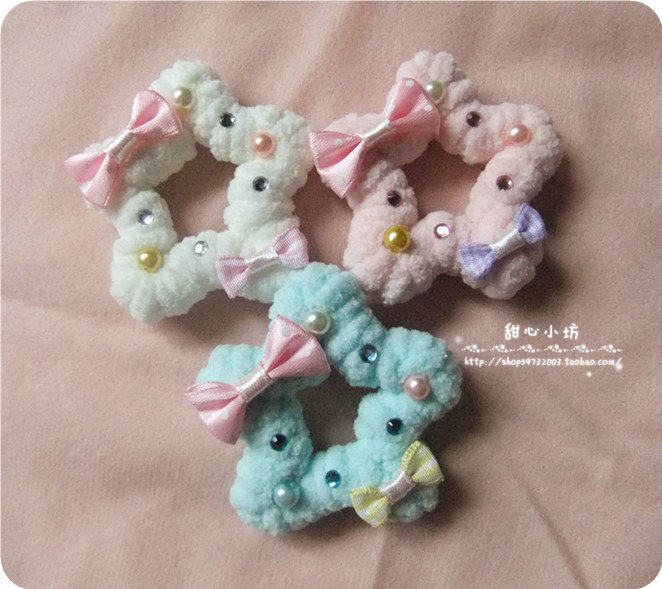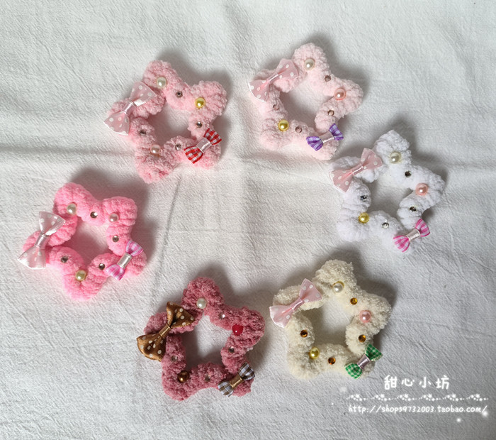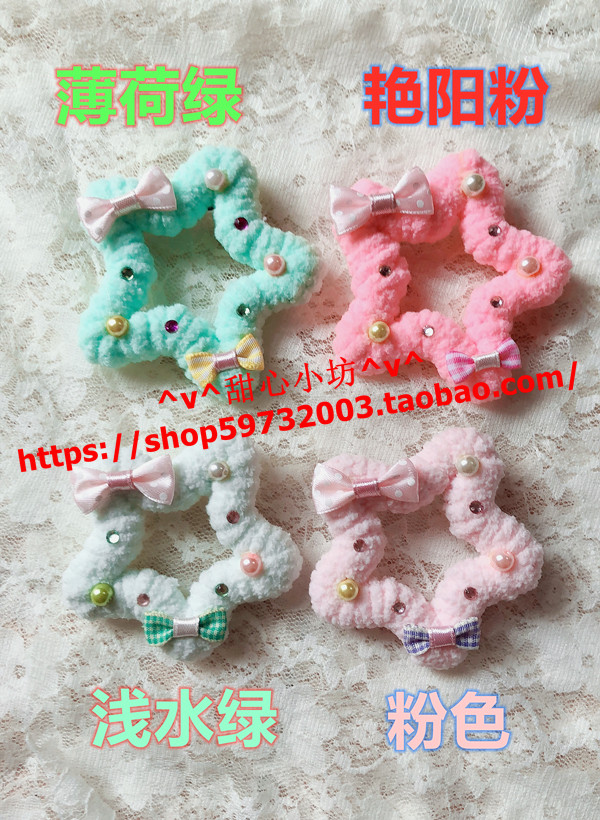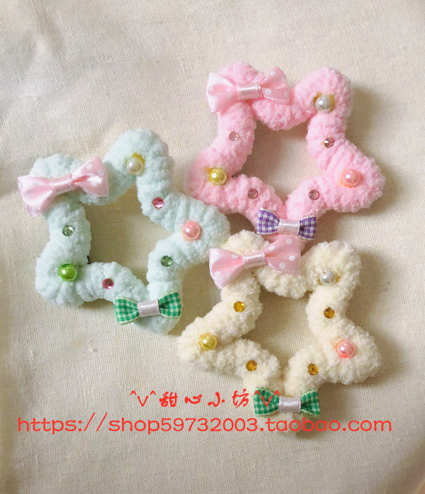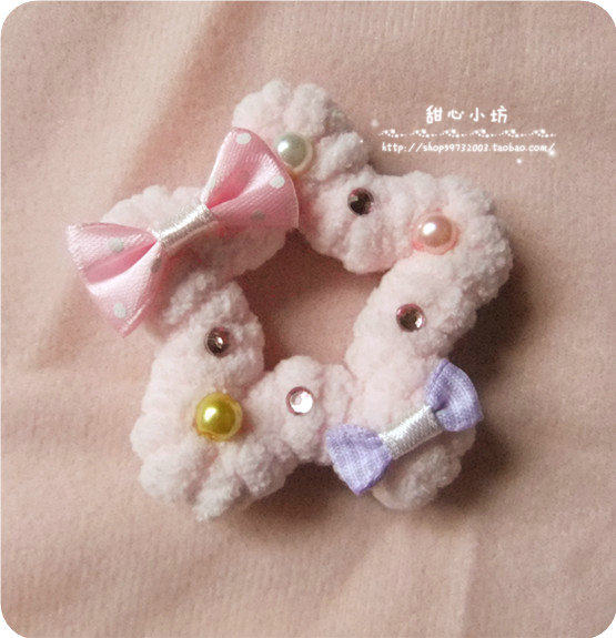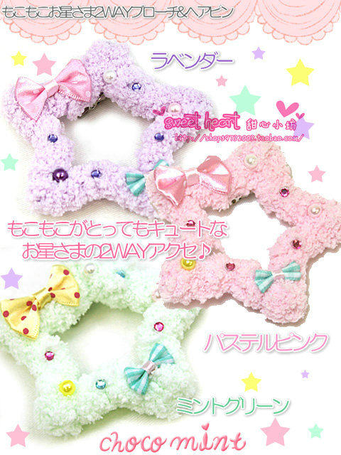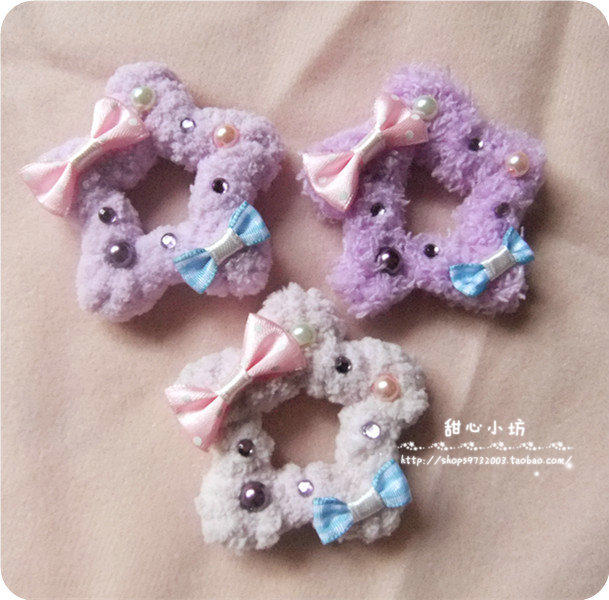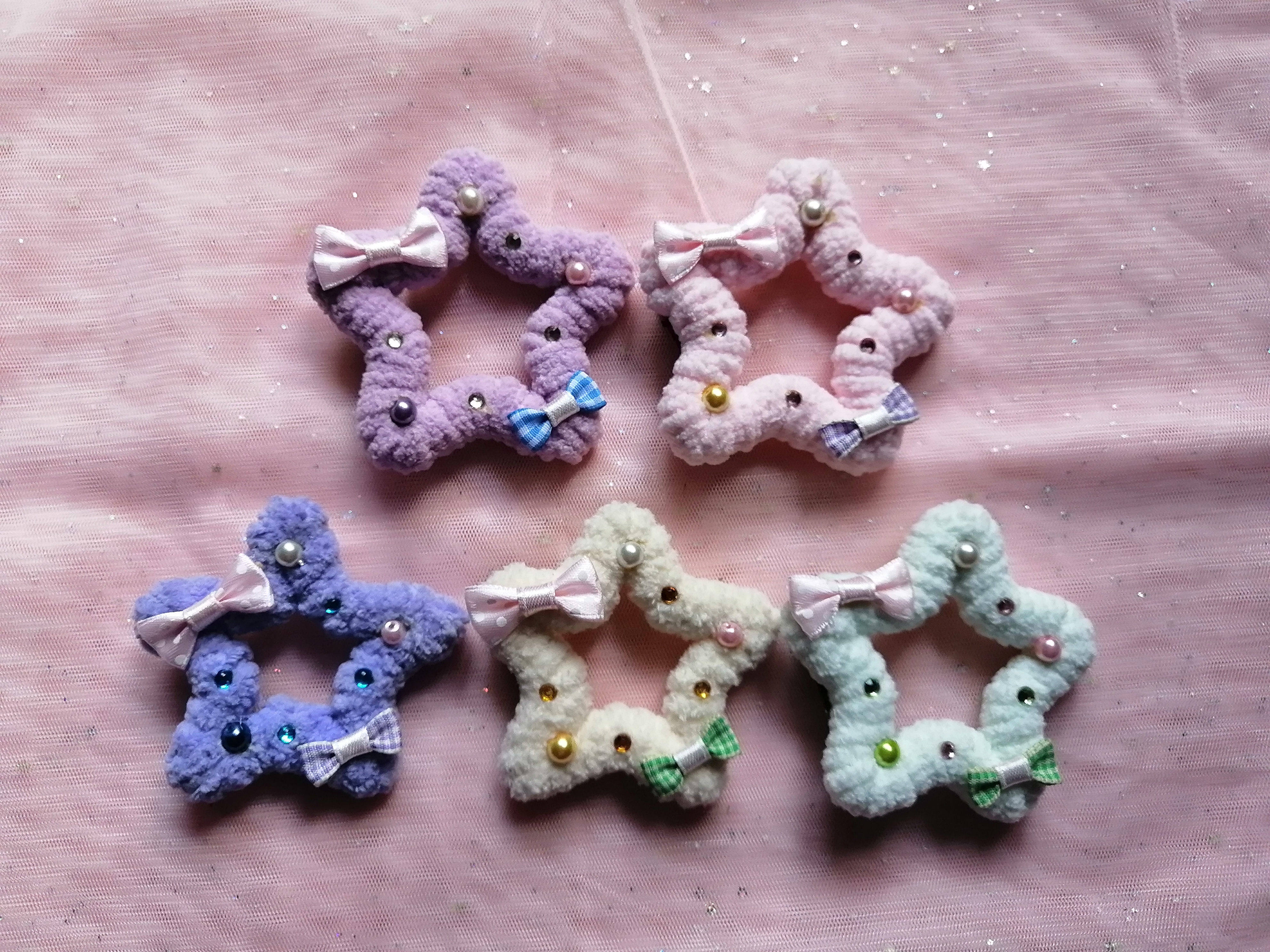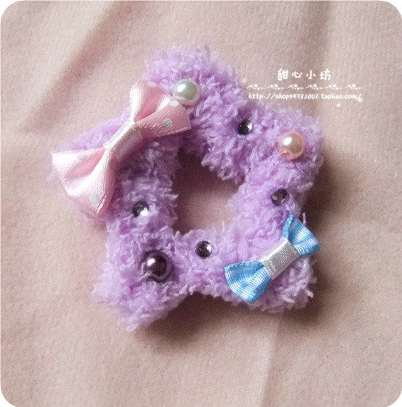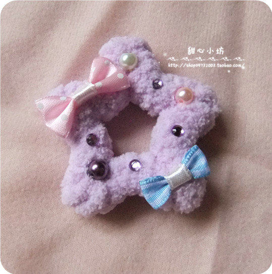 手作小物 萌系可爱Lolita毛绒绒多色星星蝴蝶结珍珠发夹/胸针 [Original Page Link]