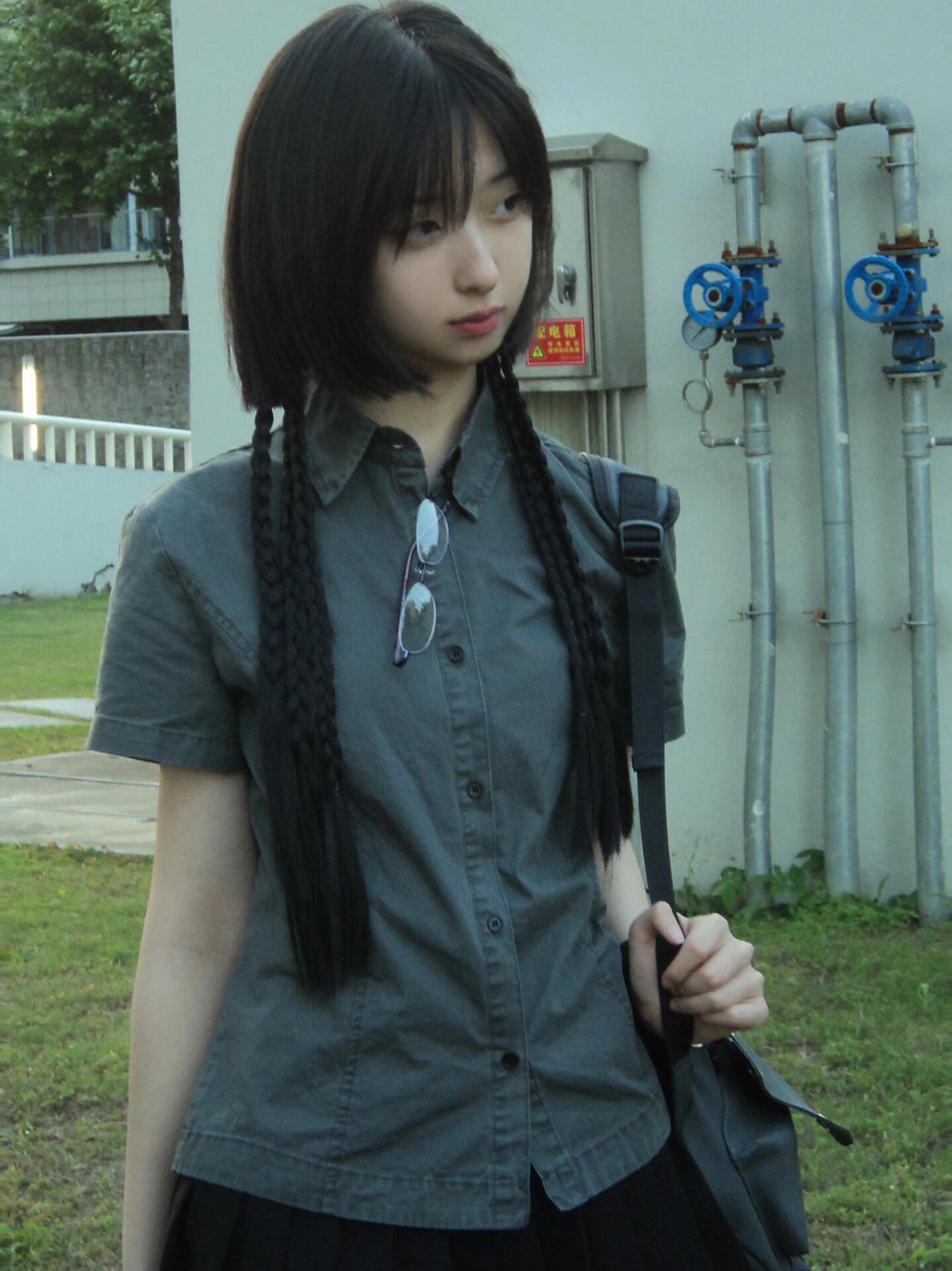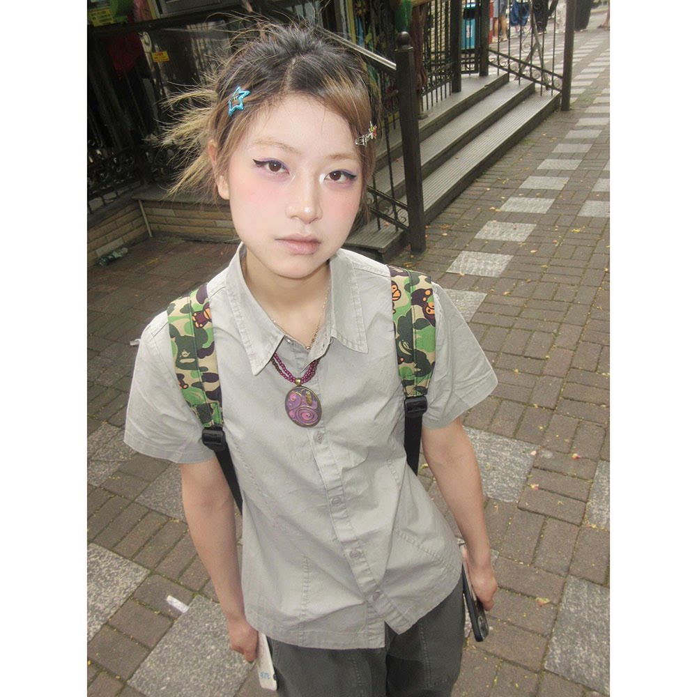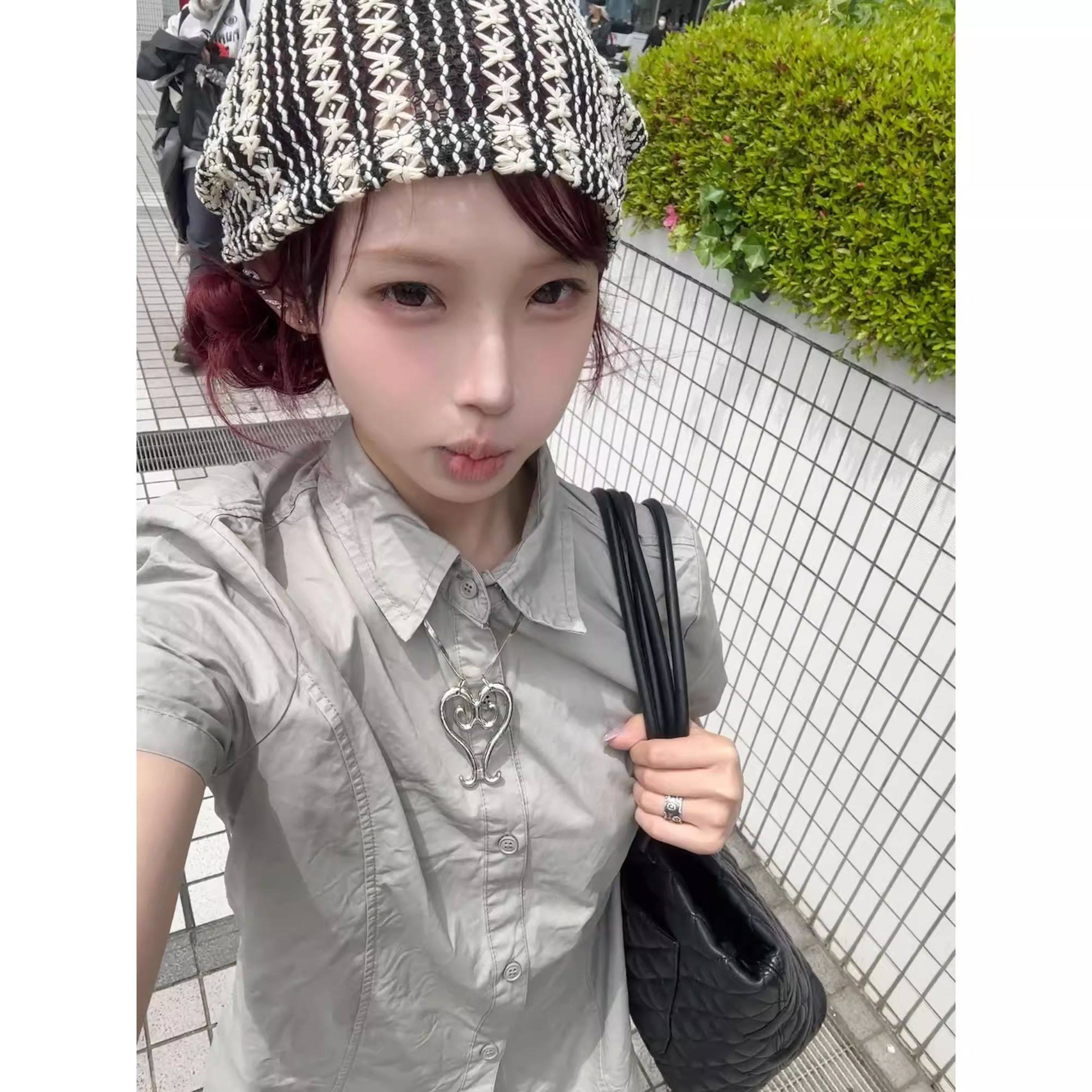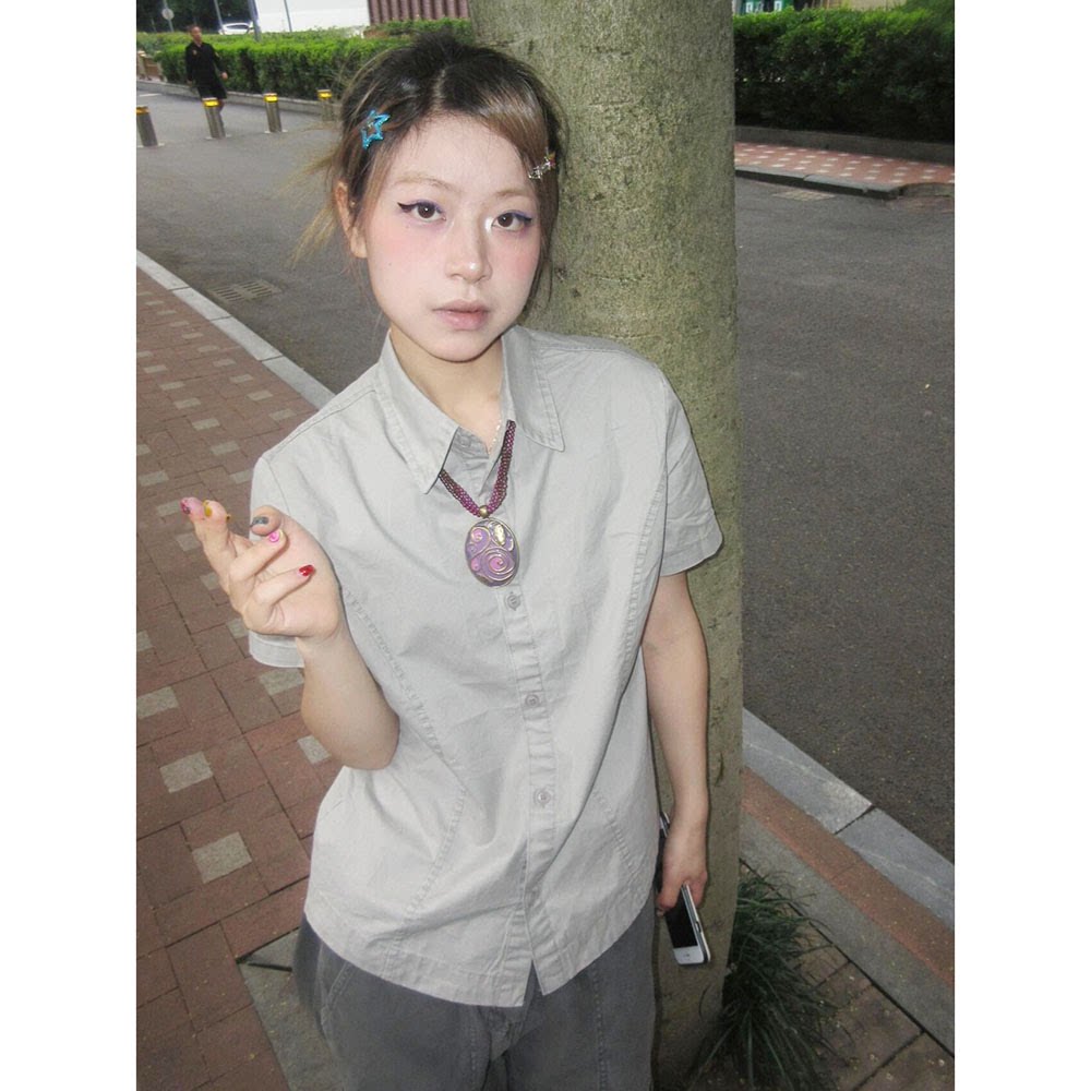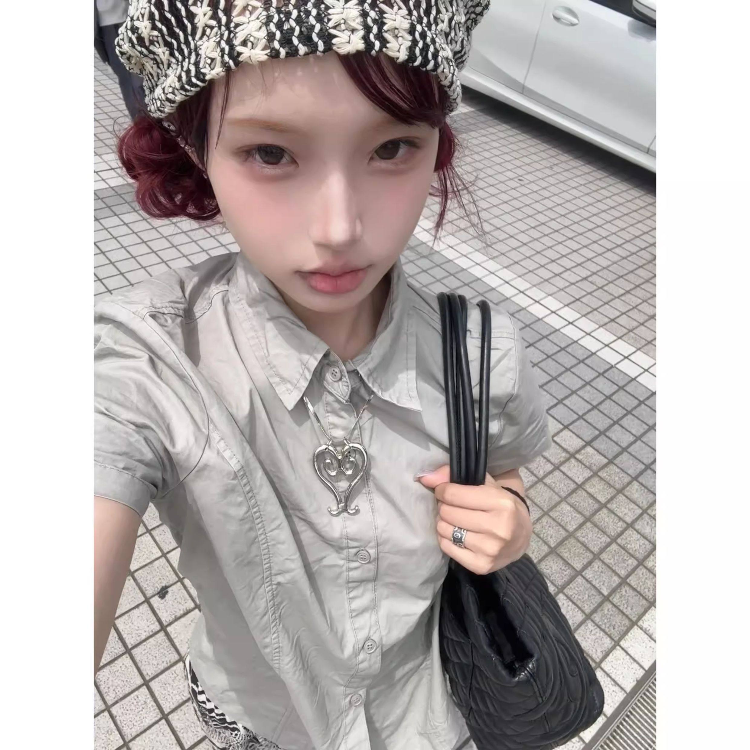 日系覆古日杂风短袖t恤衬衫上衣女夏季小个子修身收腰polo衬衫衣 [Original Page Link]