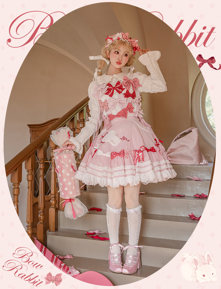 Original Lolita skirt with a round bow and bunny design, flower and pearl box & Misako Aoki collaboration