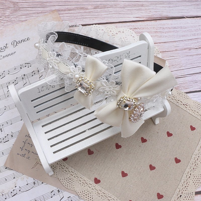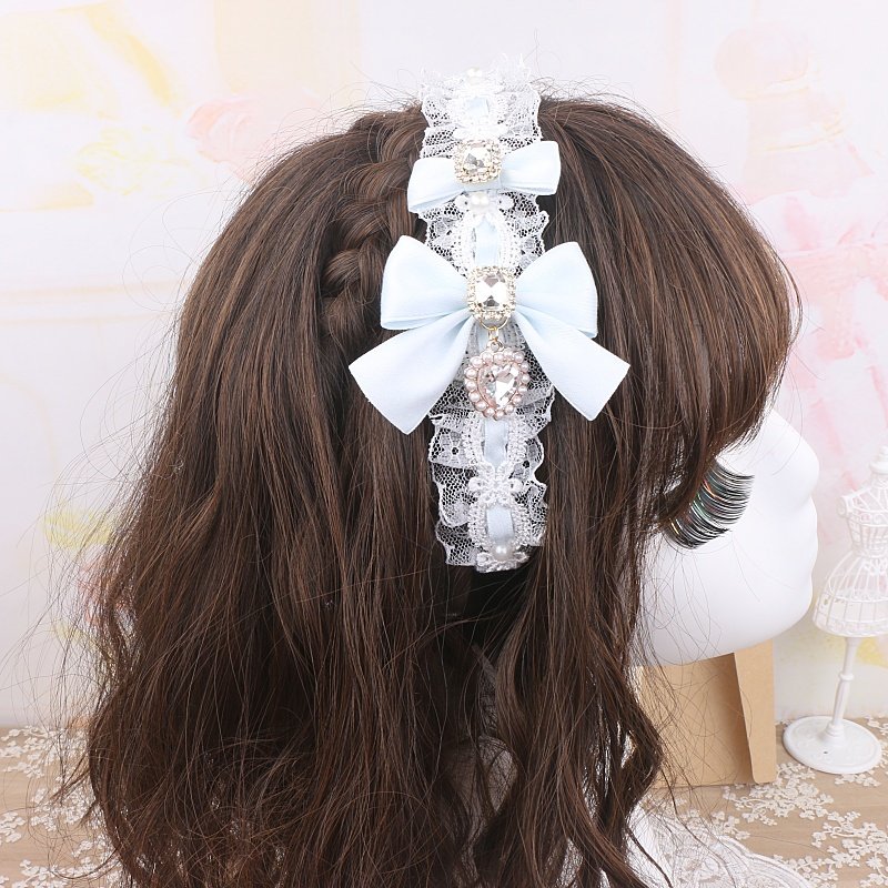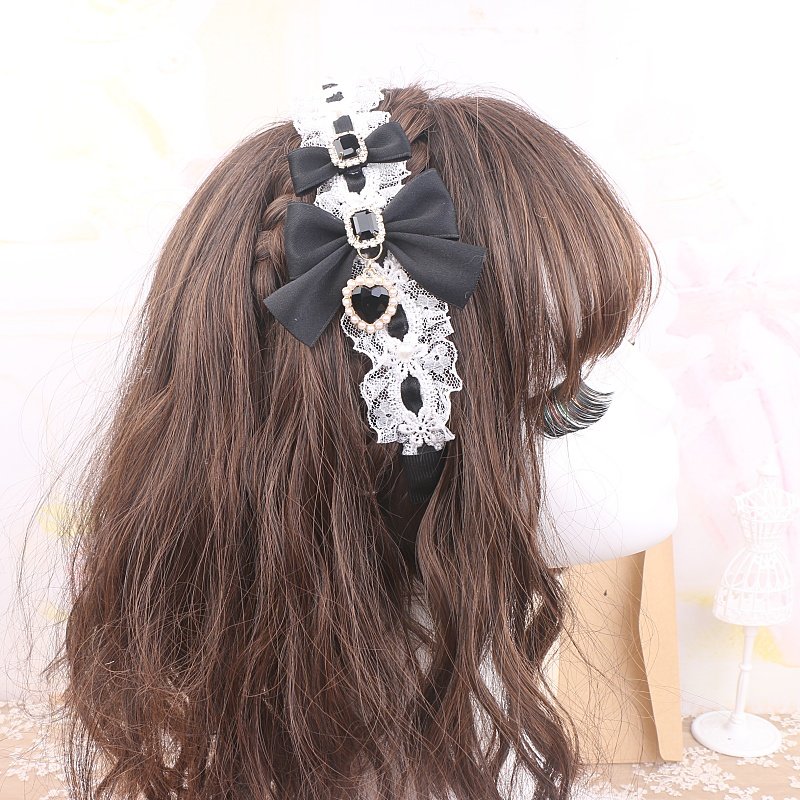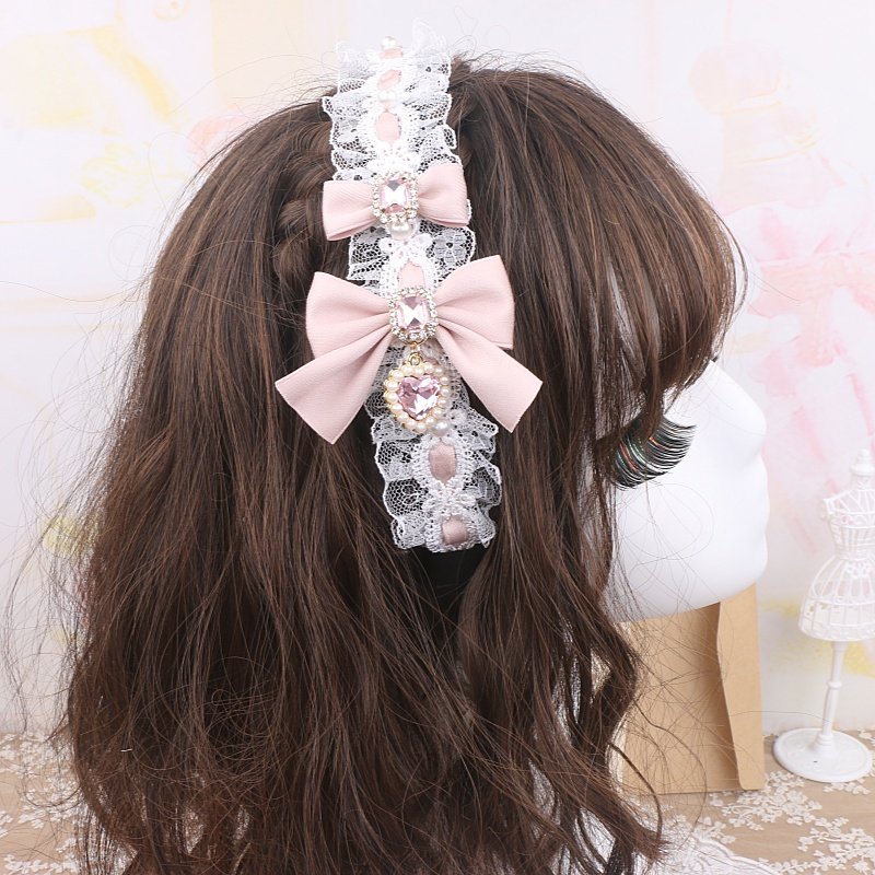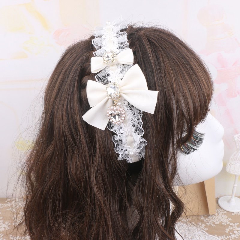 串珠手工原创大量生产的头饰与蕾丝串和弓莱茵石心脏垂坠串珠头带 [Original Page Link]