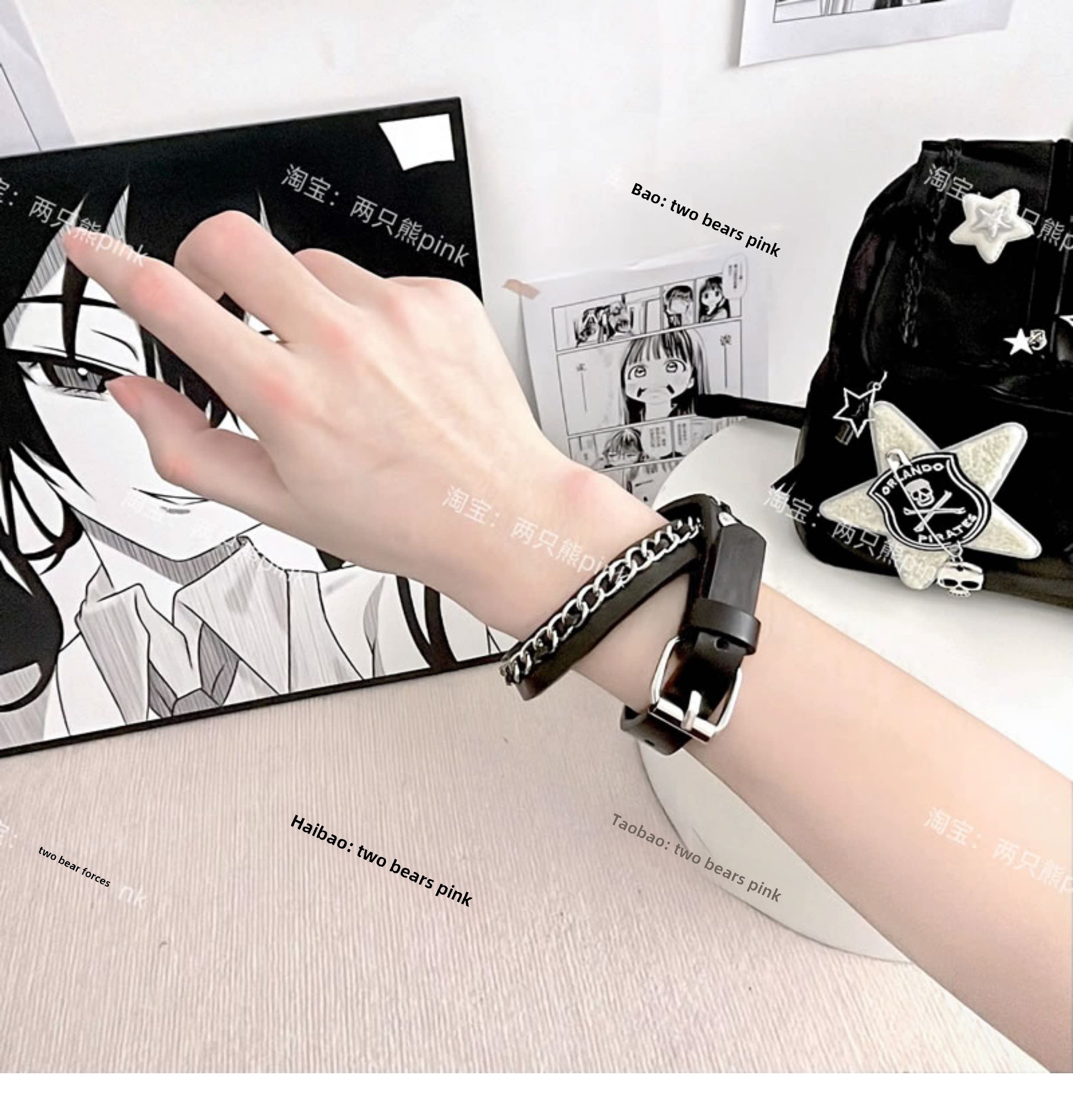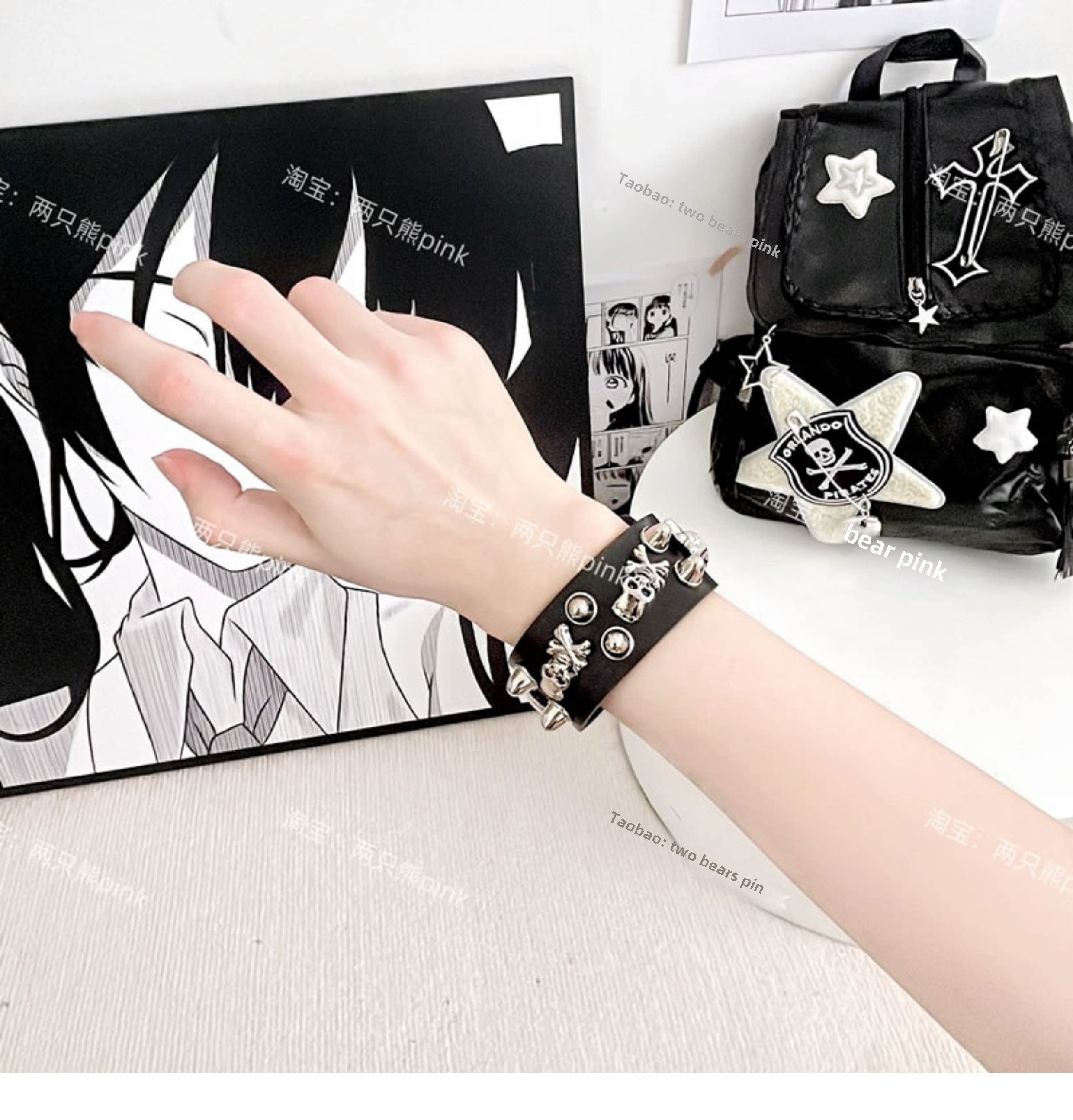皮革黑色和白色手镯覆古夫妇手镯朋克Y2K黑暗摇滚性感哥特配件雅比风格 [Original Page Link]