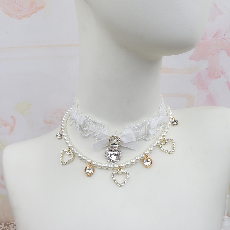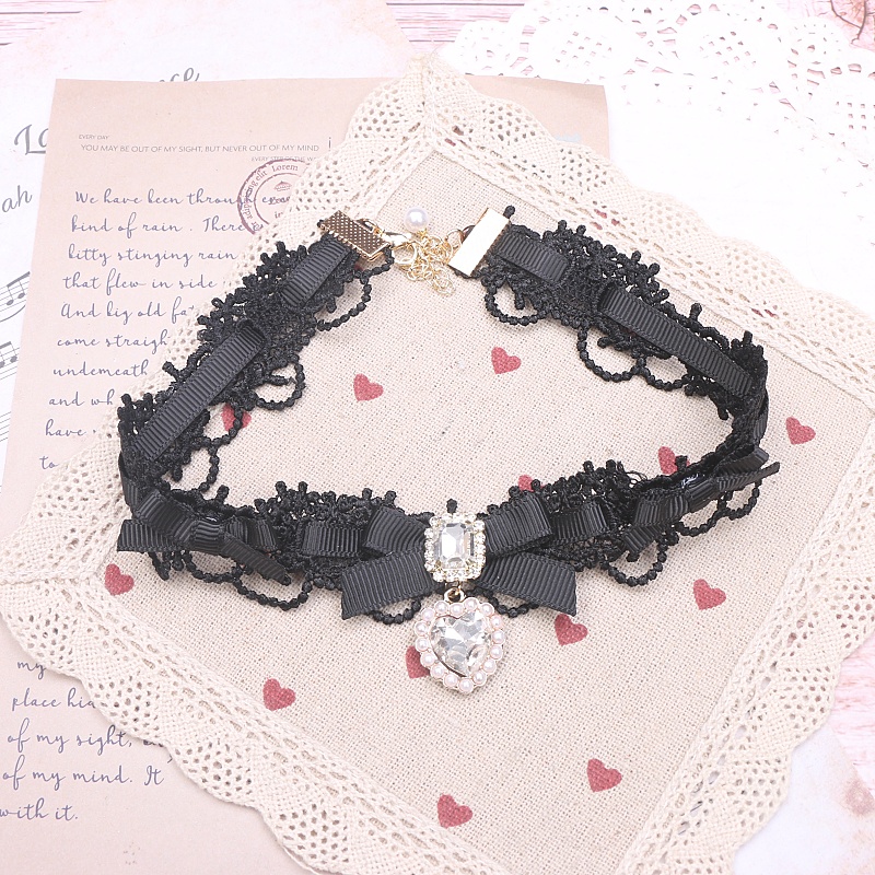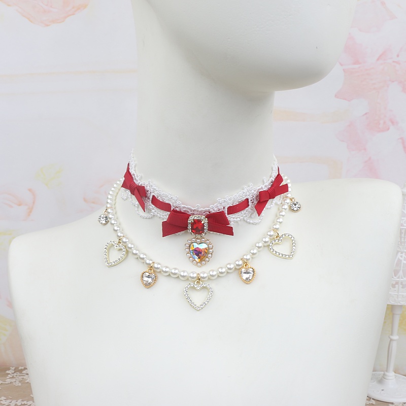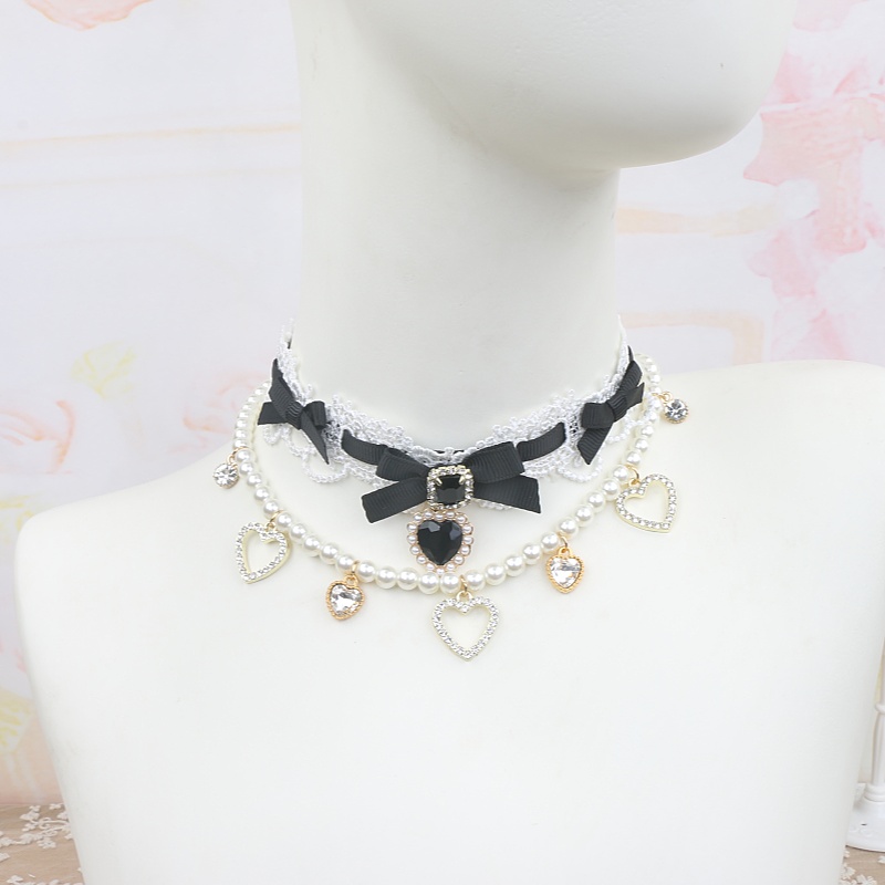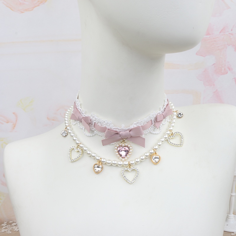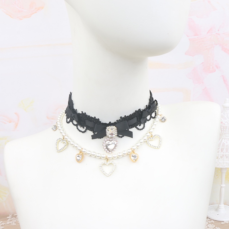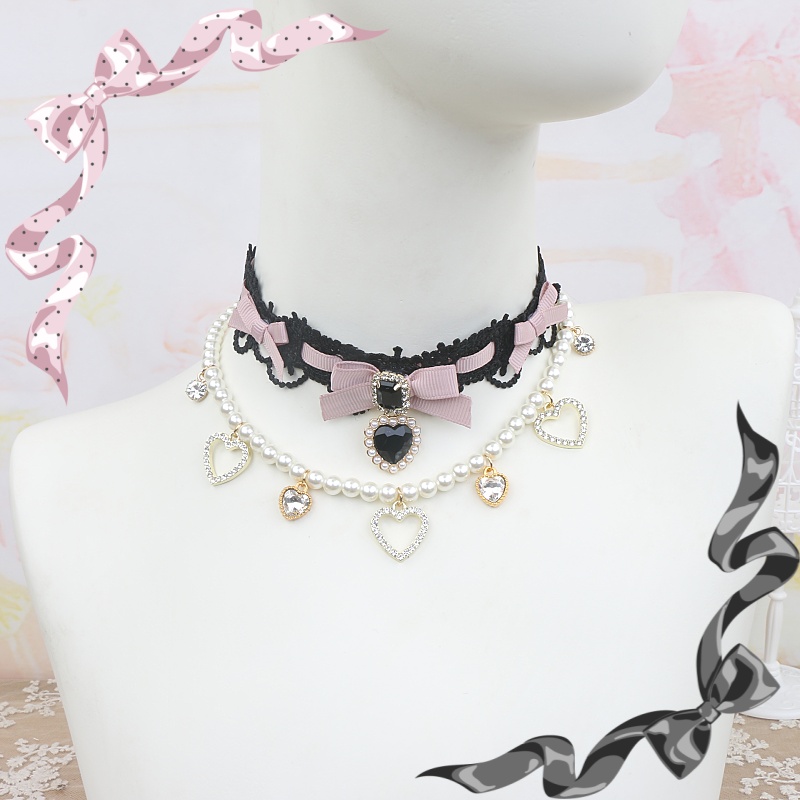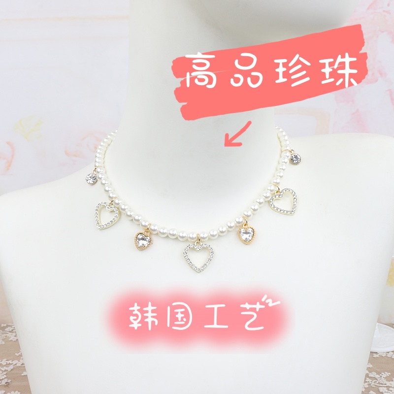珠珠手作甜酷量产型甜美珍珠项炼蝴蝶结爱心吊坠贴颈项圈choker女 [Original Page Link]