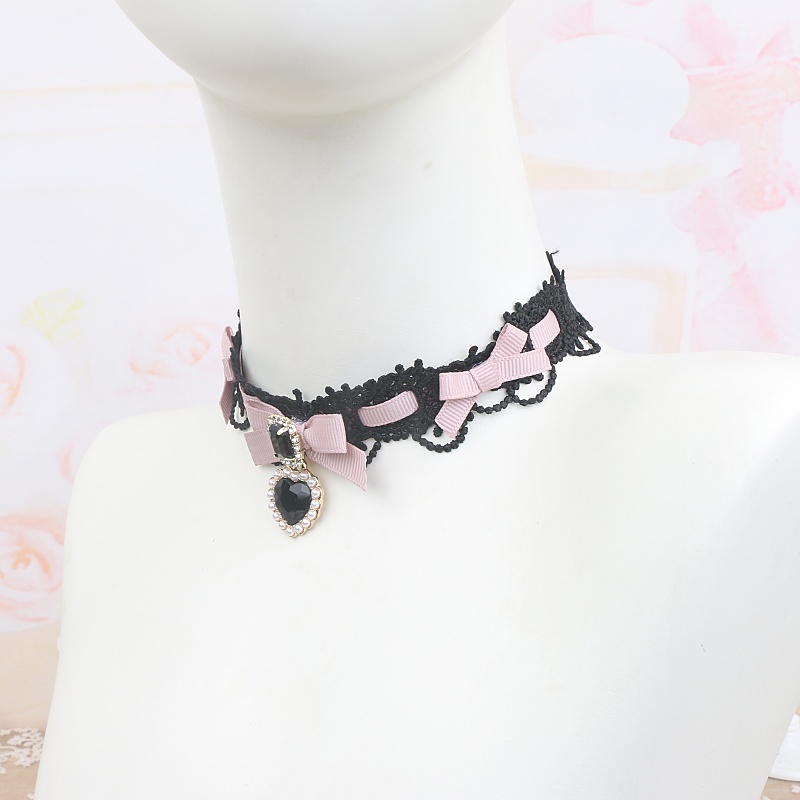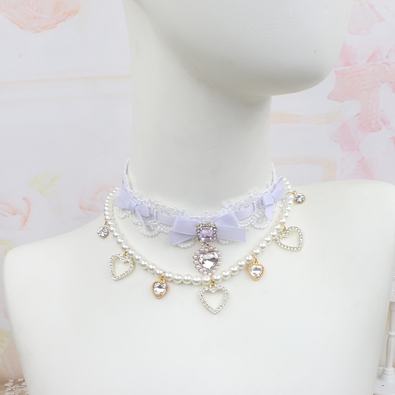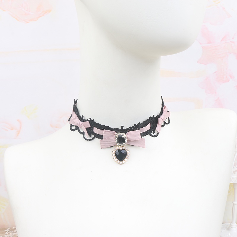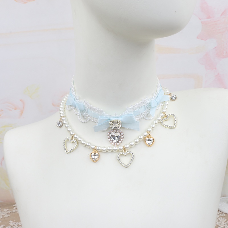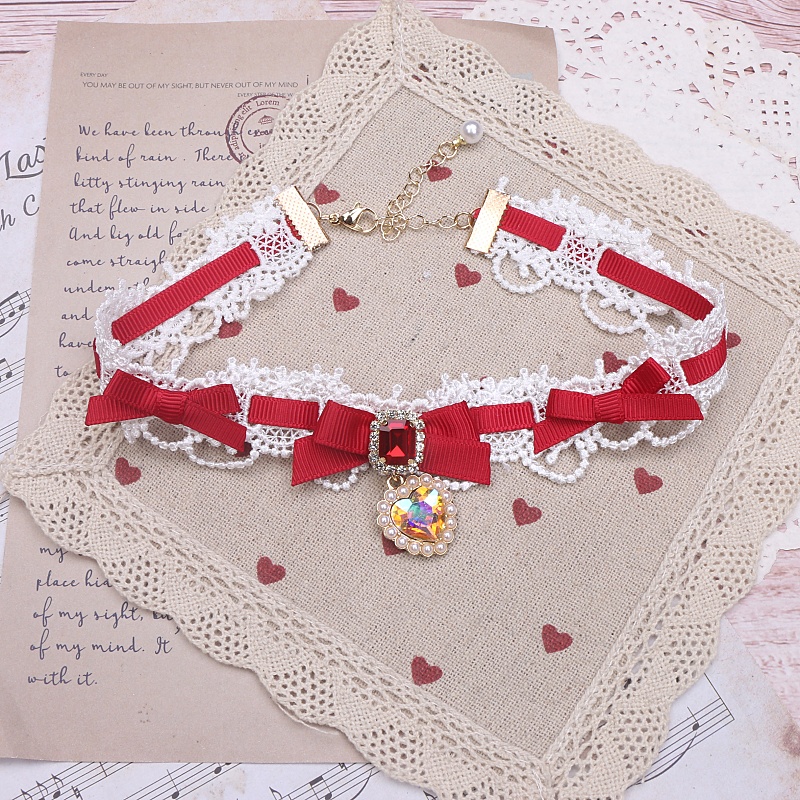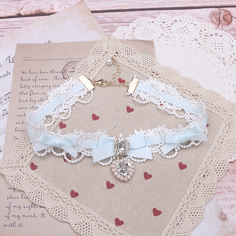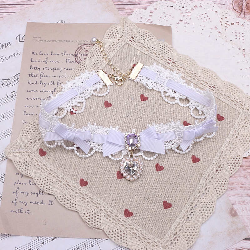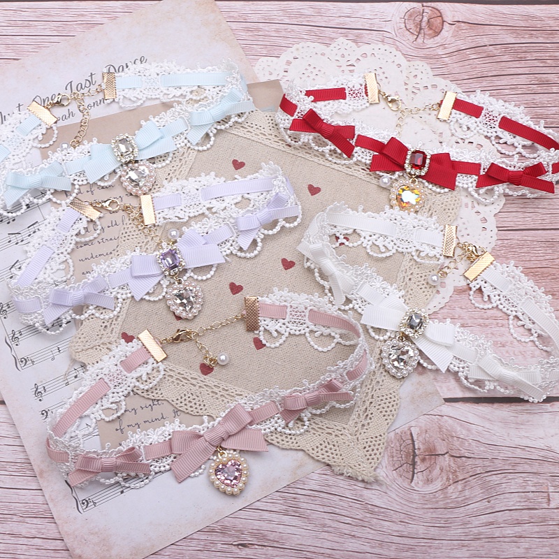 珠珠手作甜酷量产型甜美珍珠项炼蝴蝶结爱心吊坠贴颈项圈choker女 [Original Page Link]