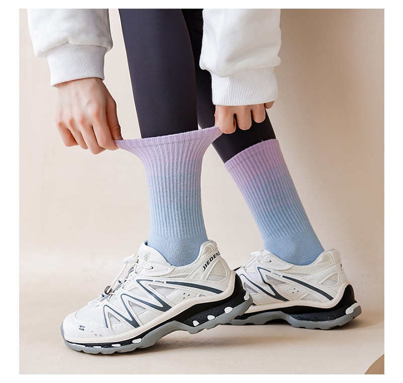 “GBAF"渐变色彩色瑜伽袜子专业防滑普拉提室内健身舞蹈中筒袜女 [Original Page Link]