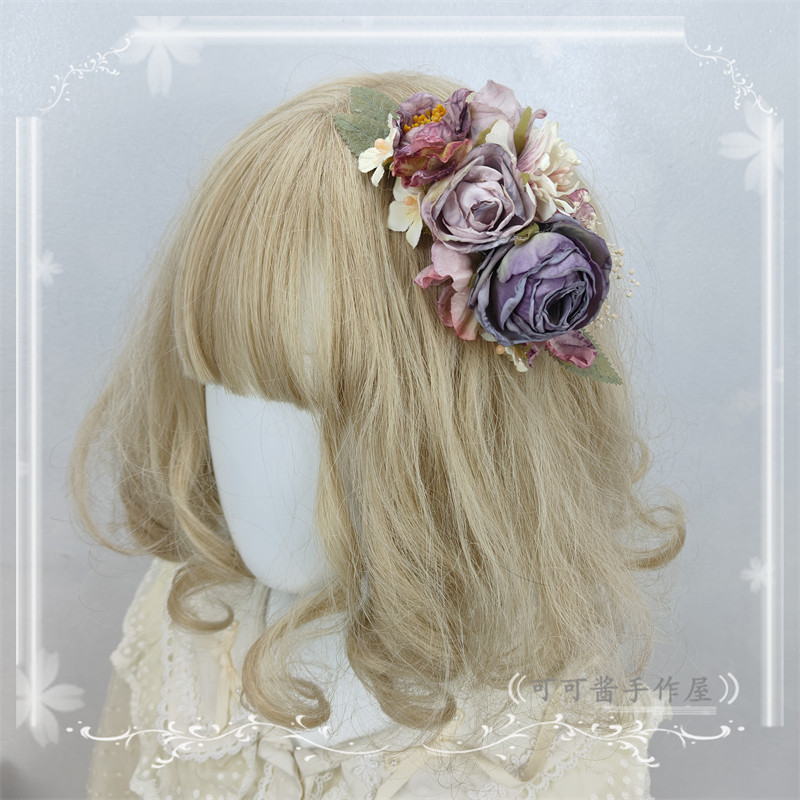 Original handmade elegant carat flower hair clip, retro blue-purple floral wall pastoral style trinkets