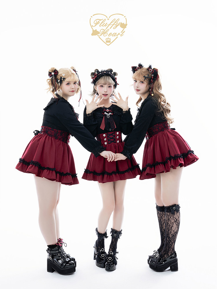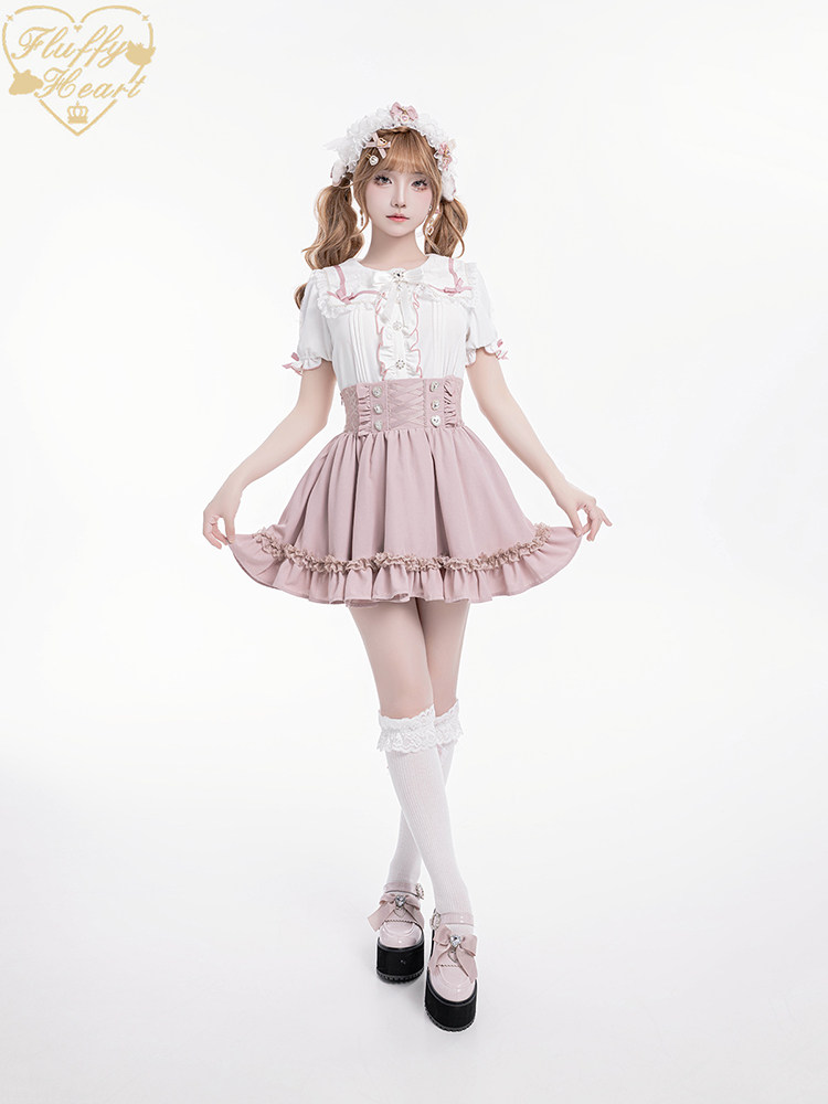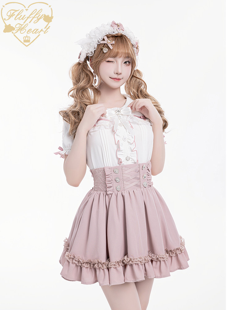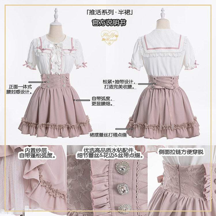 【Fluffy Heart】推活系列 日系少女蕾丝收腰半裙 6色 现货 [Original Page Link]