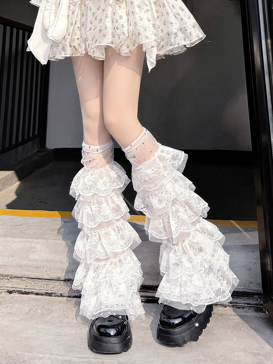 Children's lace leg warmers, summer girls' thin slouch socks, lace wide-leg small socks collection, Lolita style calf socks