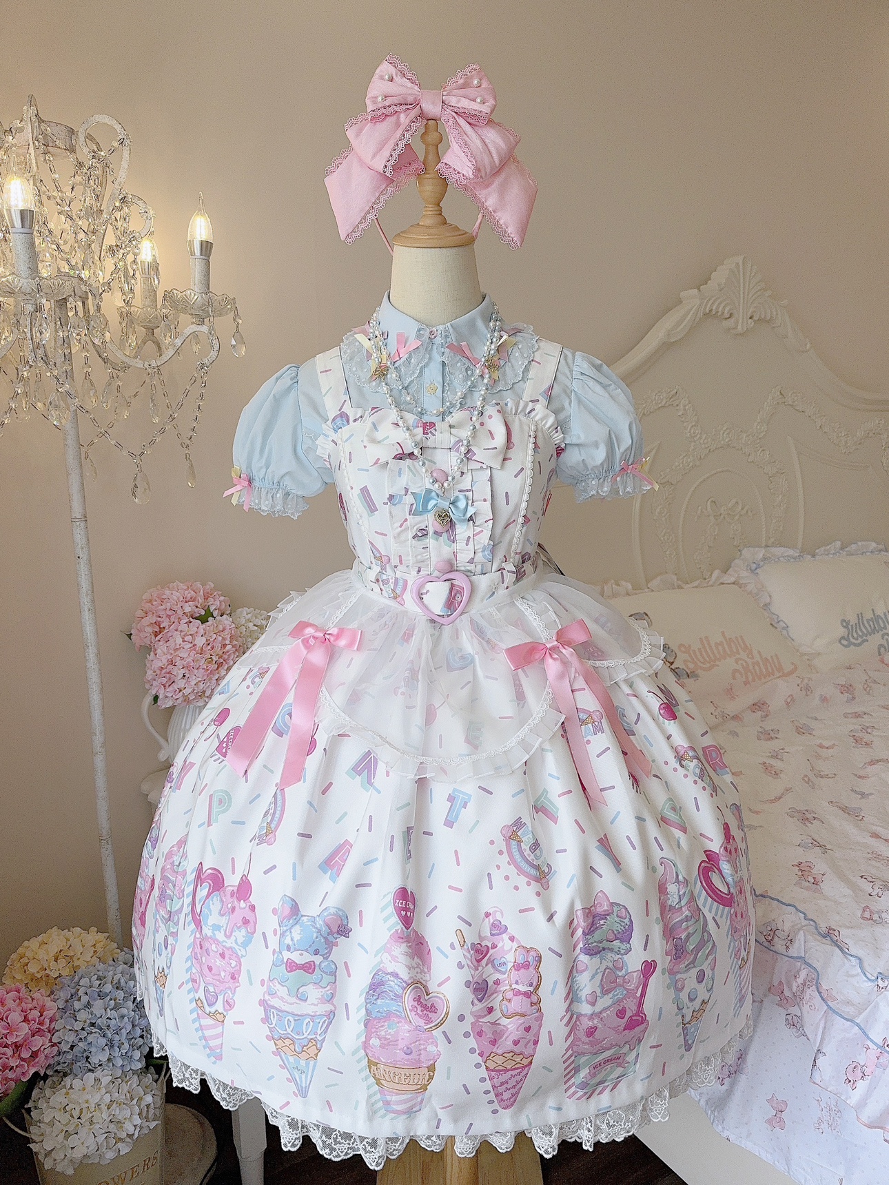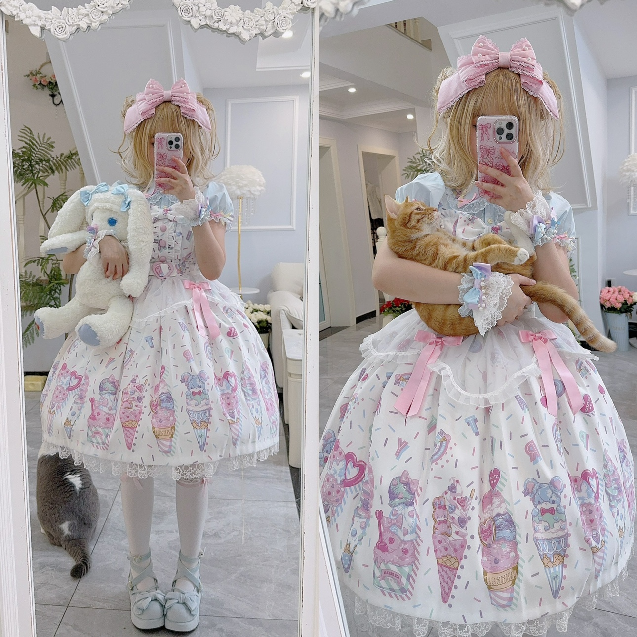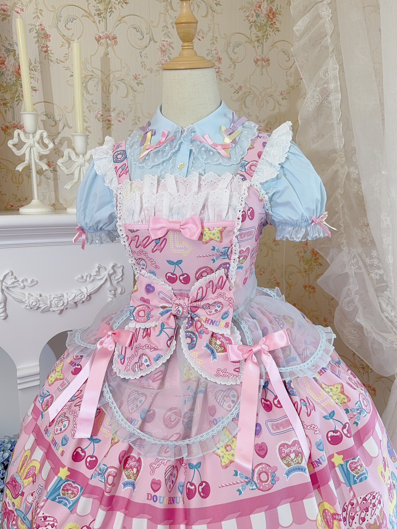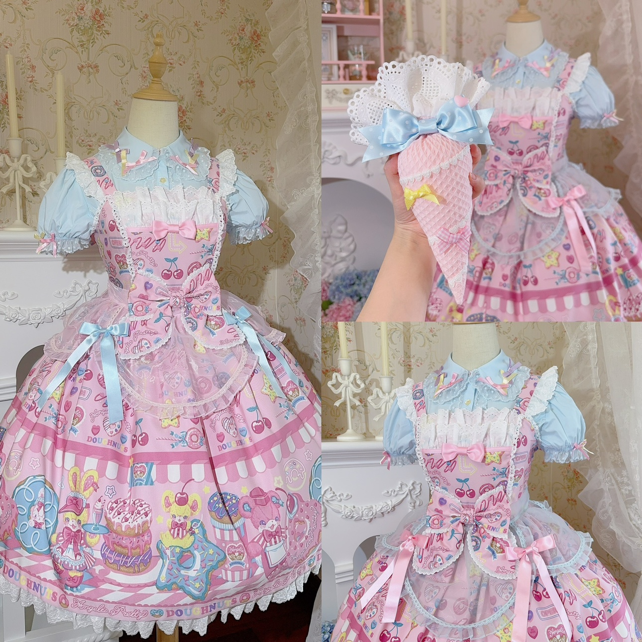 【芝士猫手作】原创欧根纱ap梦马甜甜圈赏花兔lolita小物花瓣围裙 [Original Page Link]