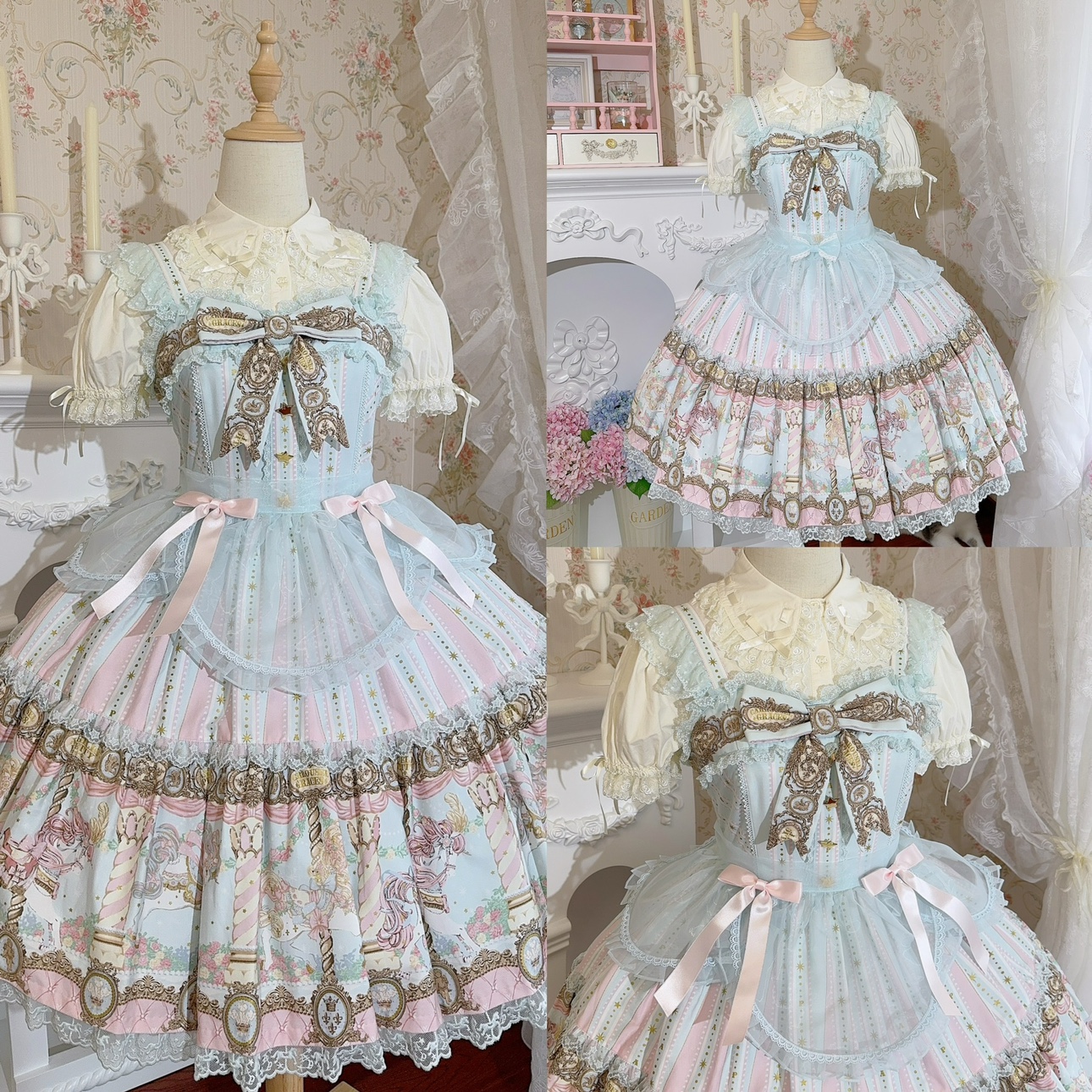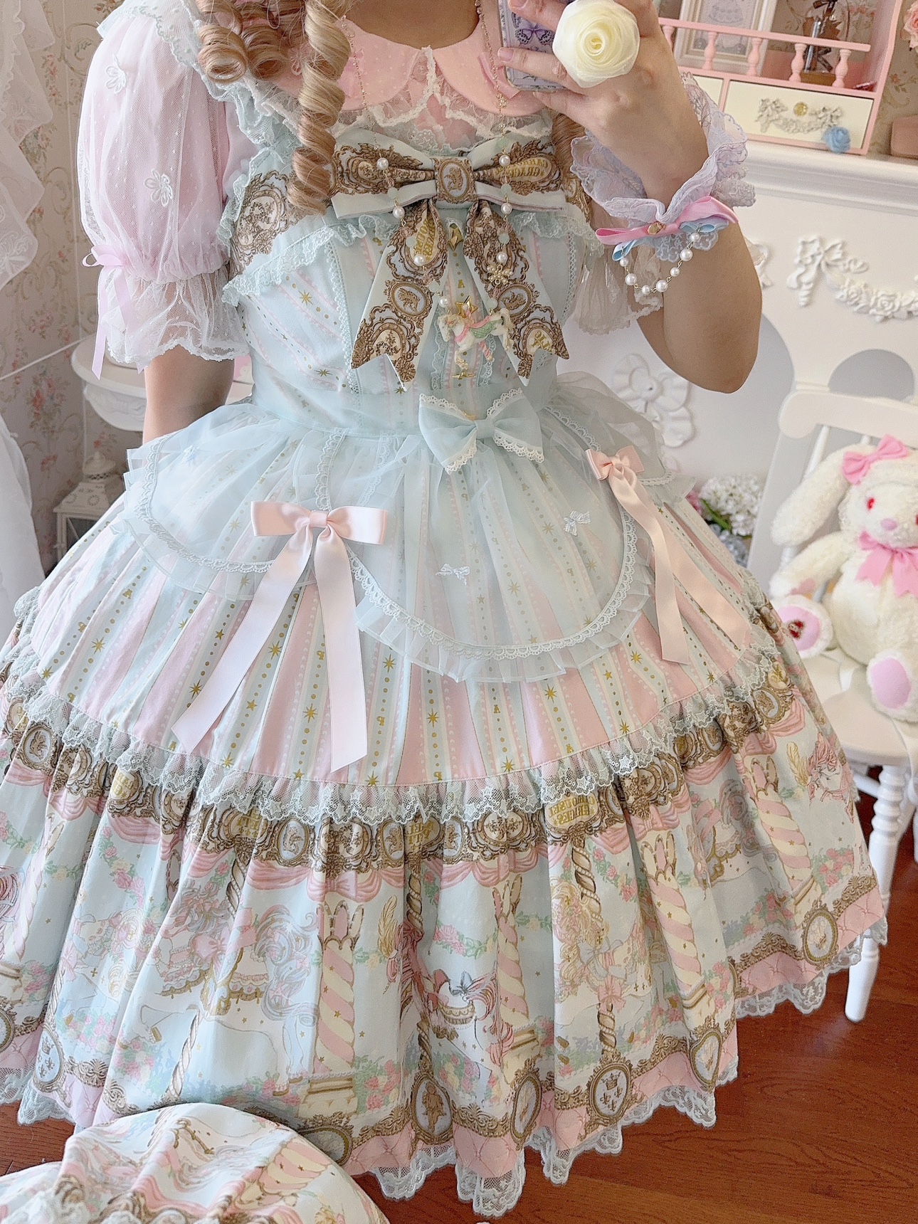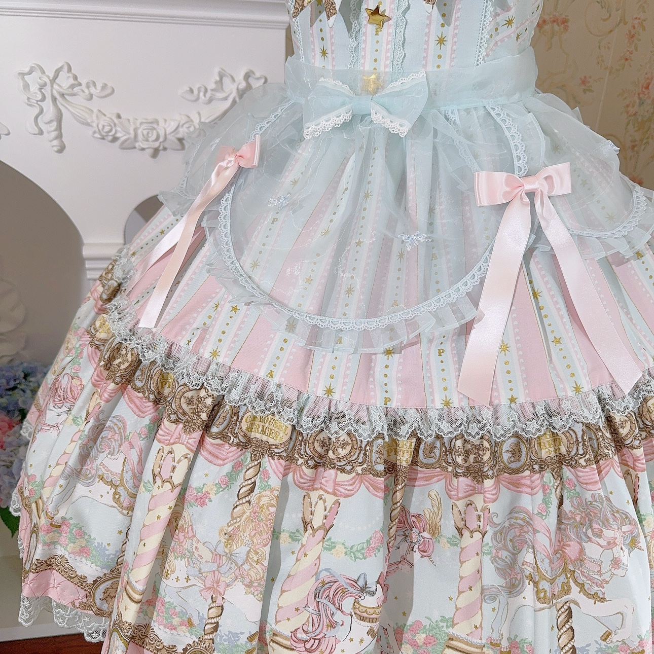 [Cheese Cat Handmade] Original Organza Ap Dream Horse Donut Flower Viewing Rabbit Lolita Petal Apron