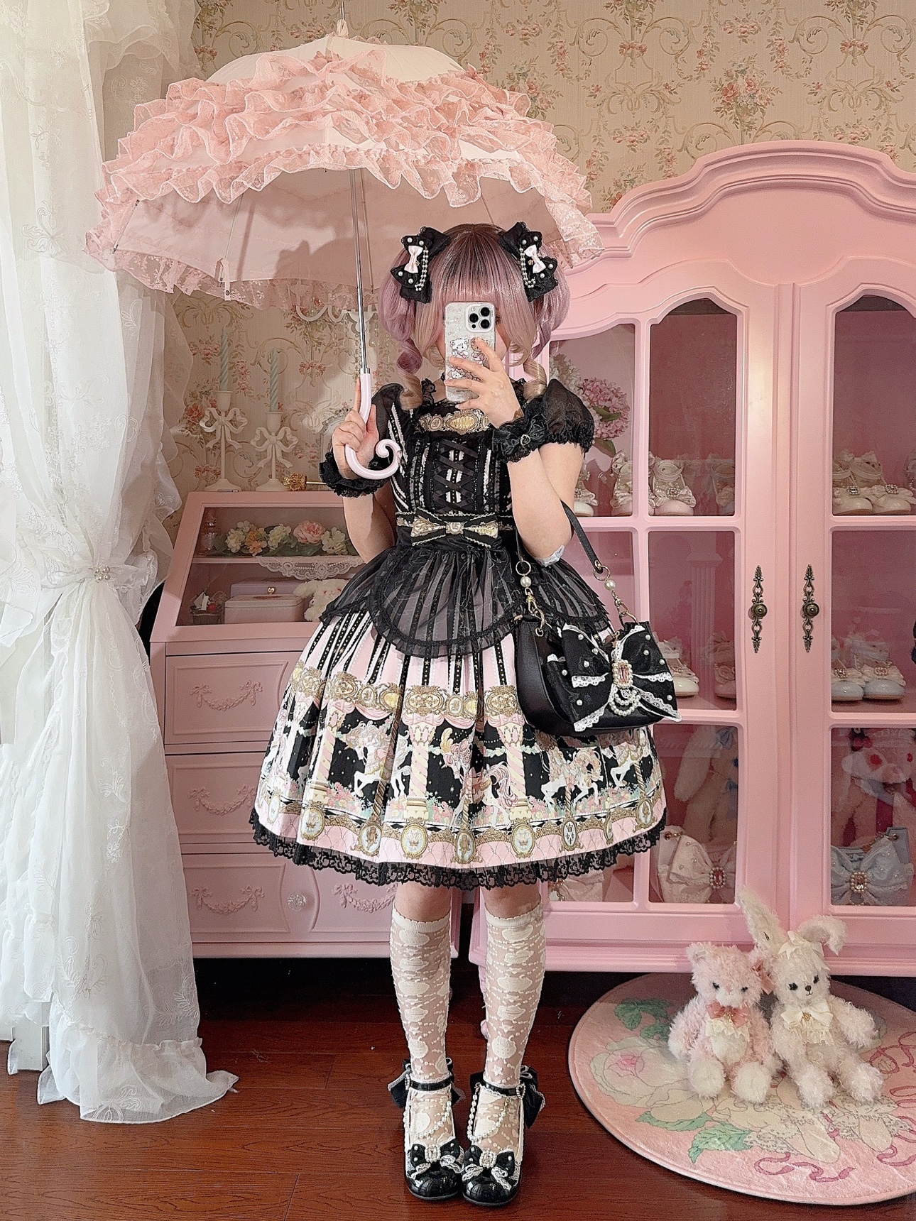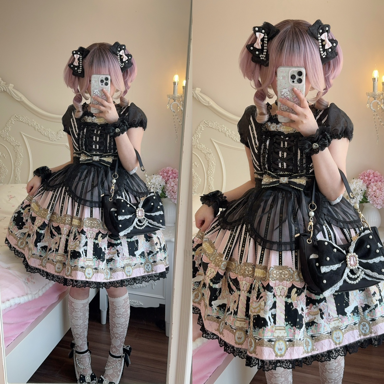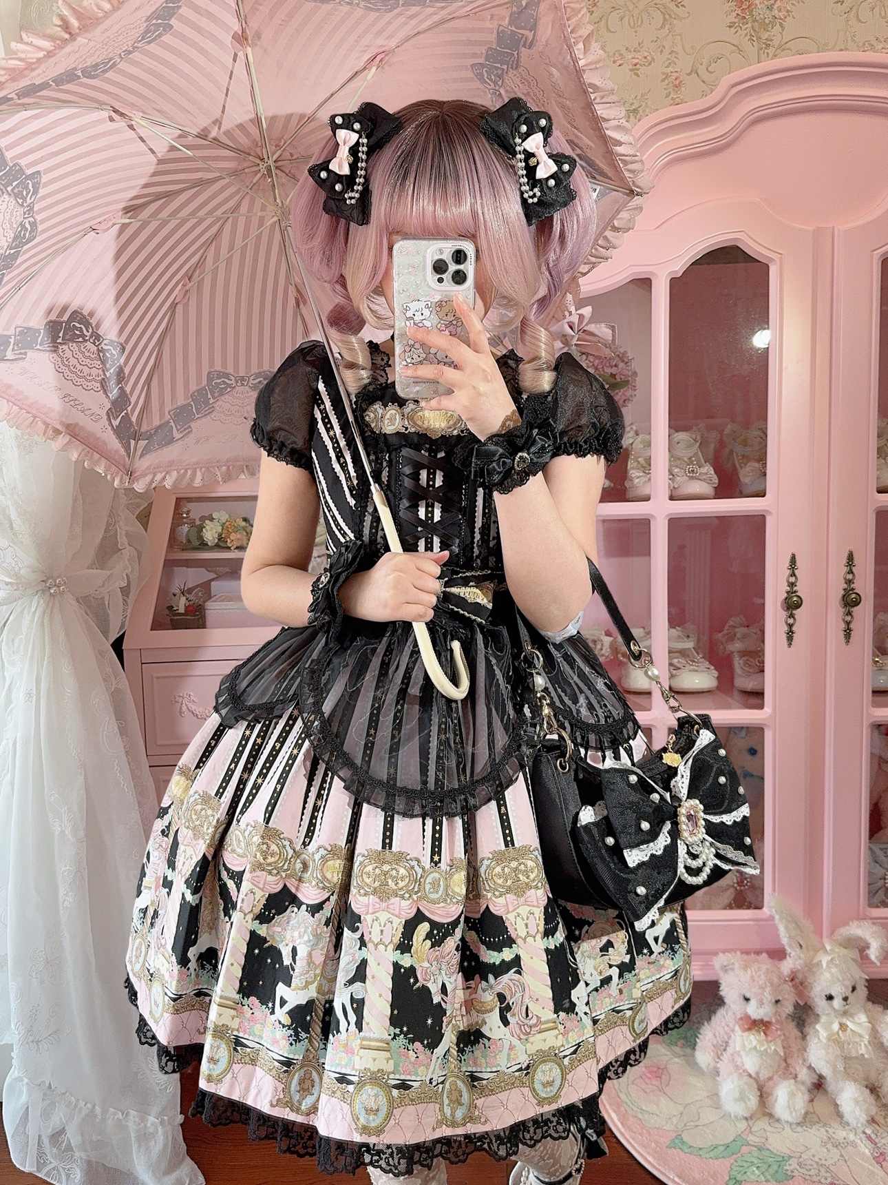 [Cheese Cat Handmade] Original Organza Ap Dream Horse Donut Flower Viewing Rabbit Lolita Petal Apron