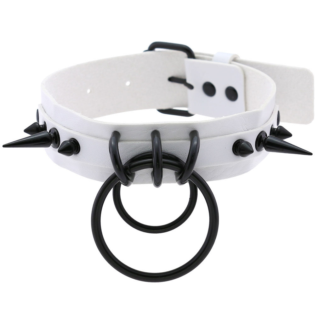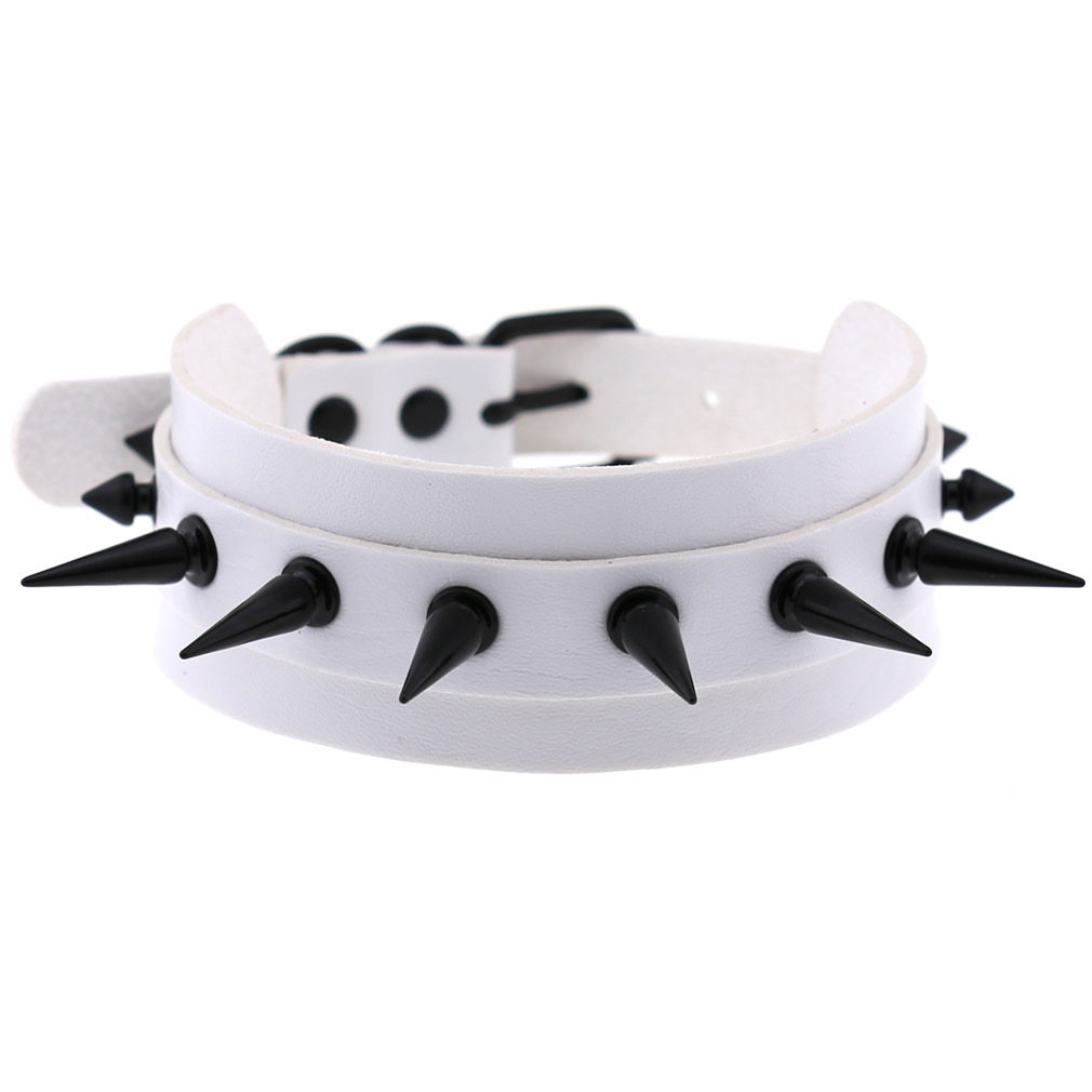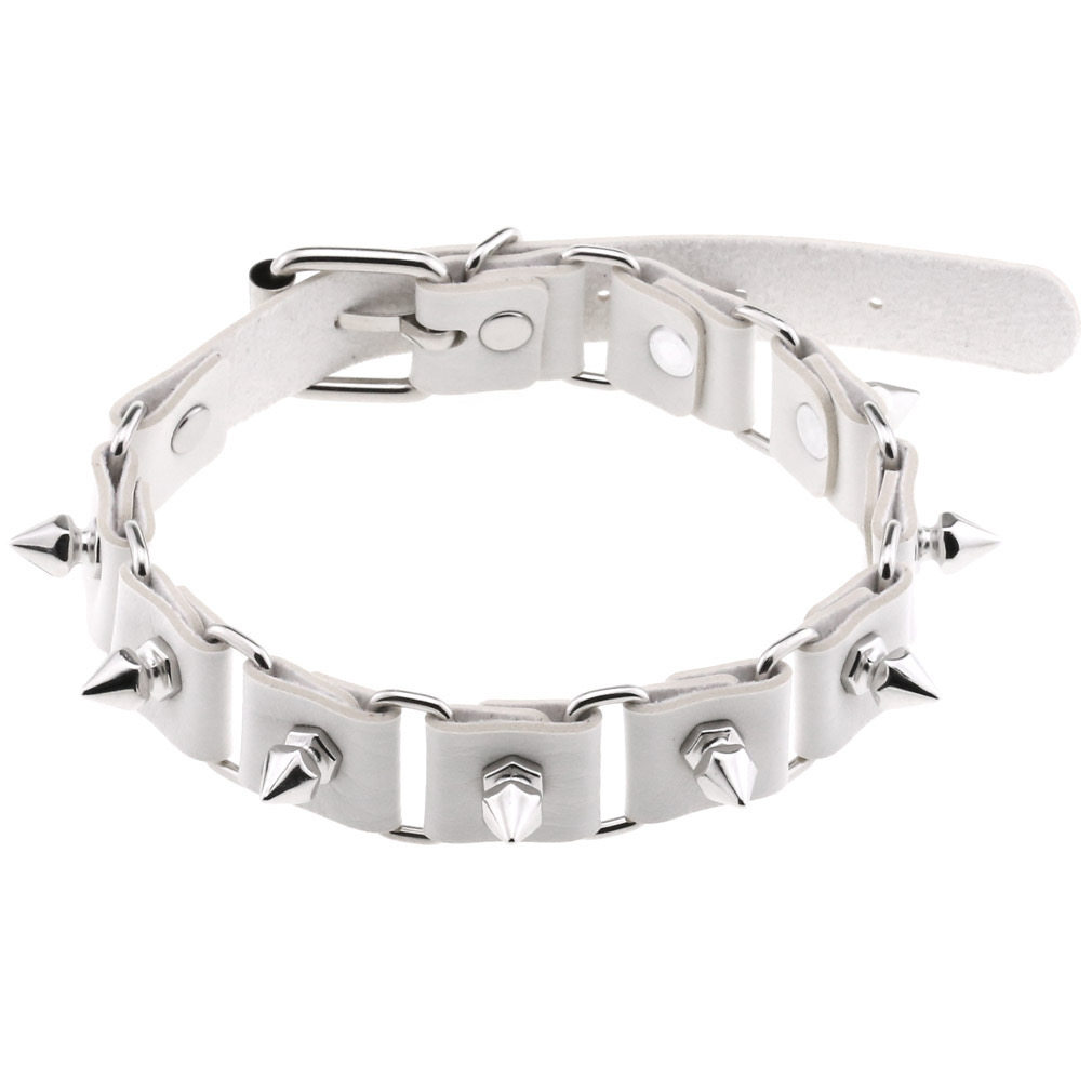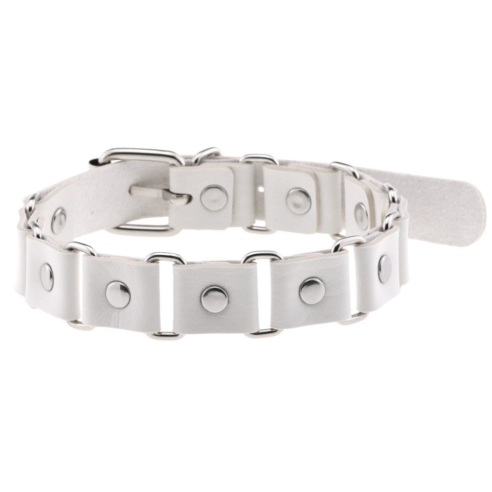 27Studio White Choker Subculture Leather Rock Punk Studded Collar Necklace Unisex Sweet and Cool Necklace