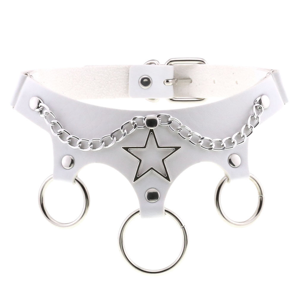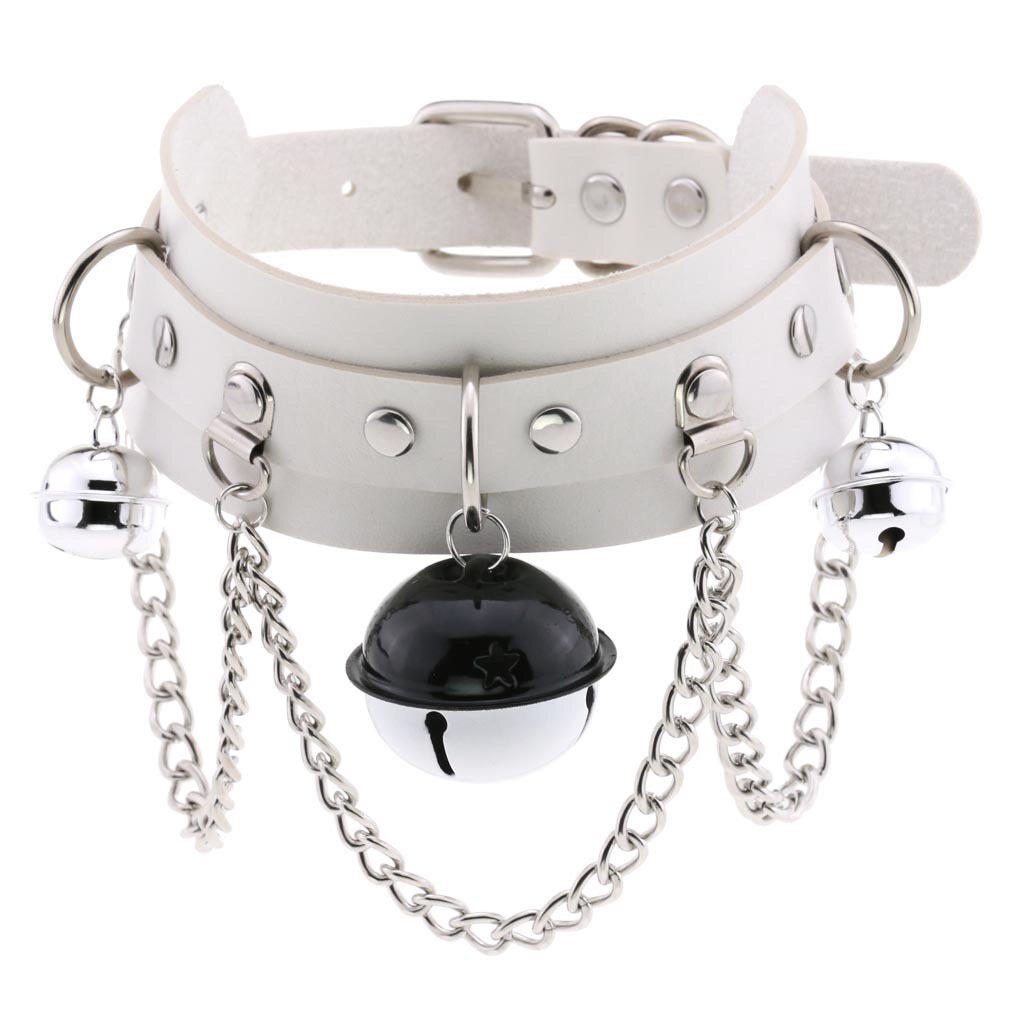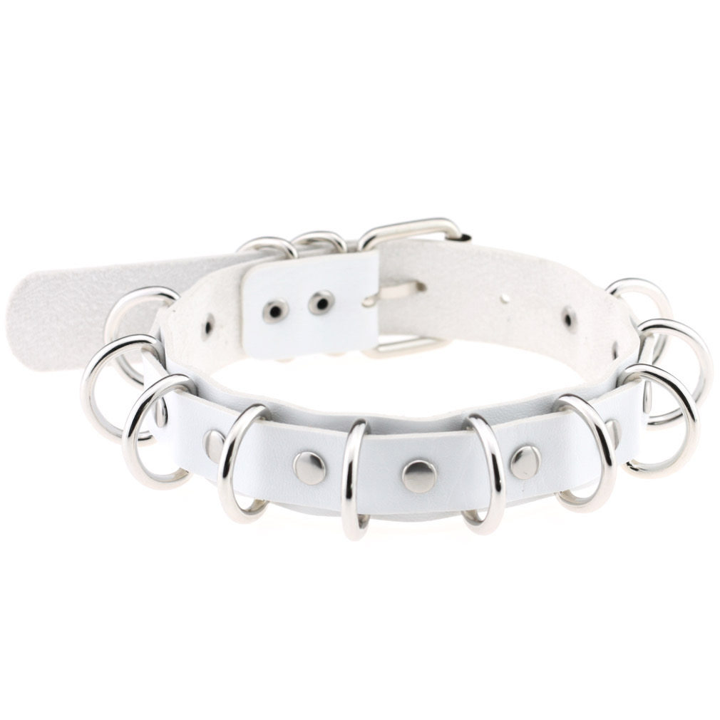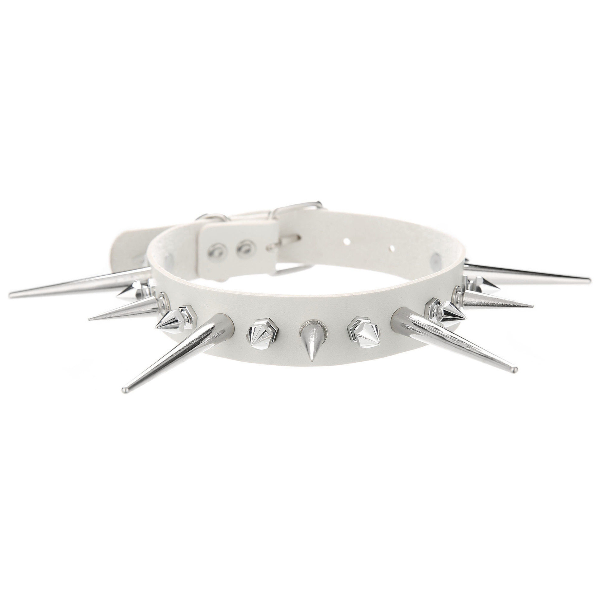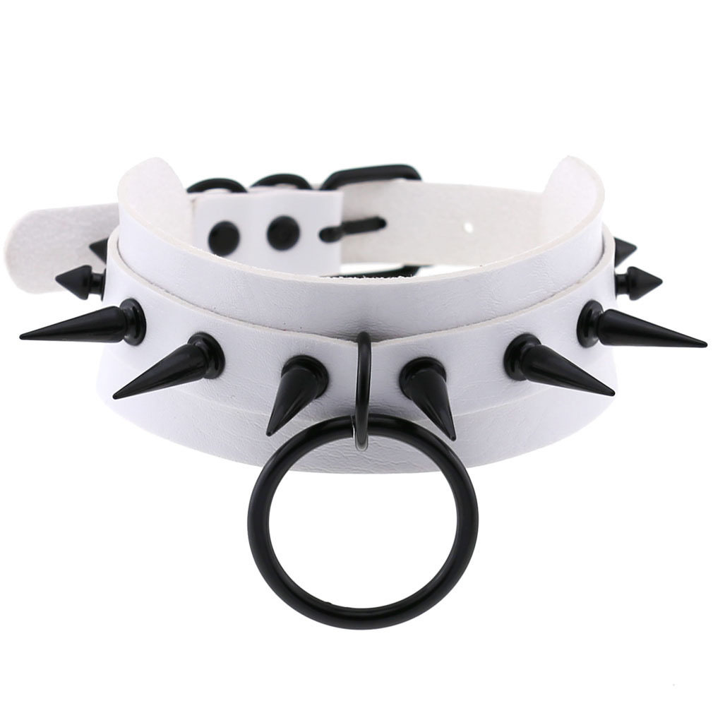 27Studio White Choker Subculture Leather Rock Punk Studded Collar Necklace Unisex Sweet and Cool Necklace