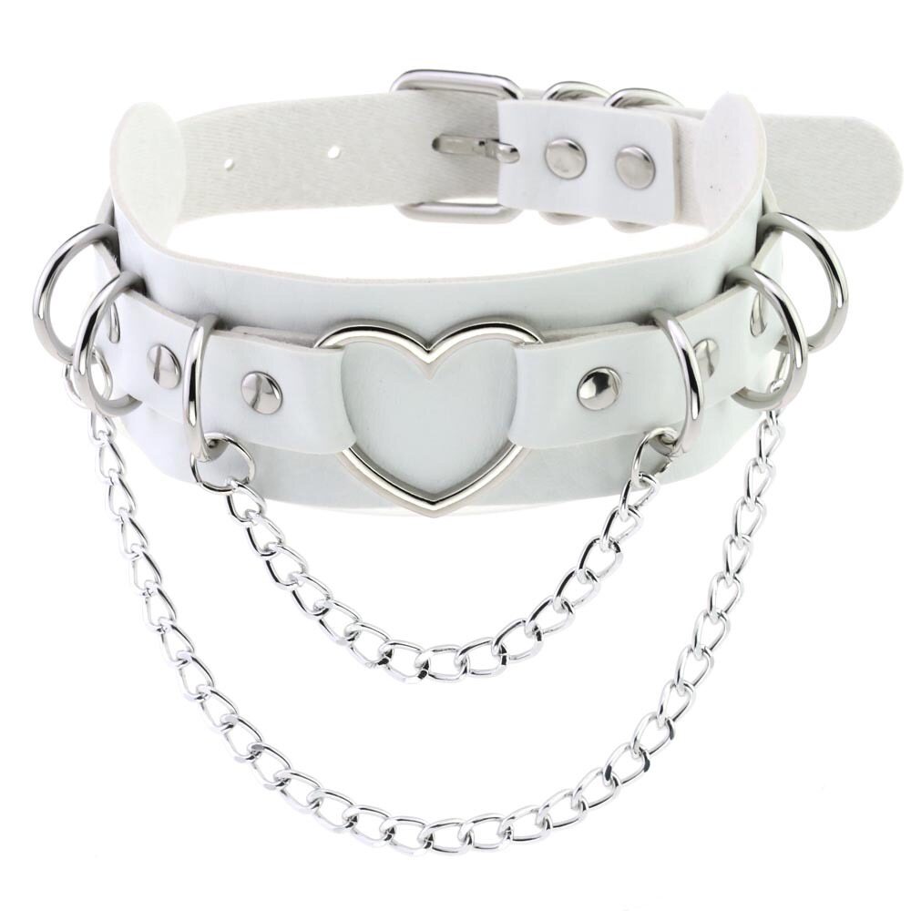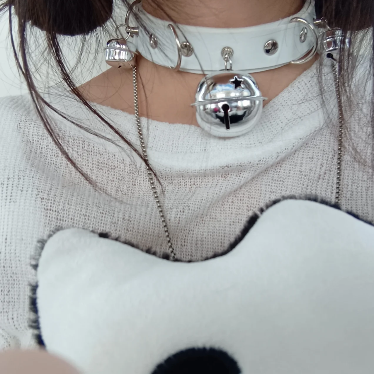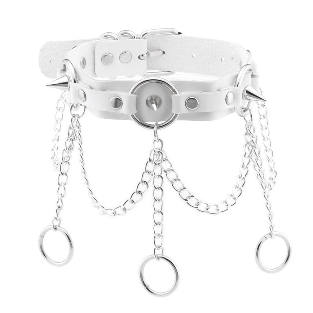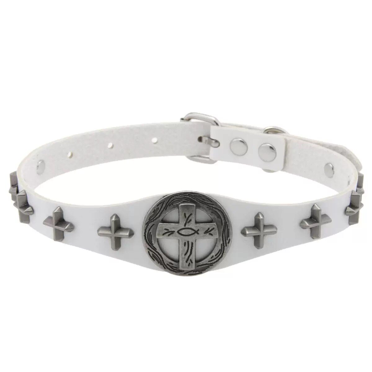 27Studio White Choker Subculture Leather Rock Punk Studded Collar Necklace Unisex Sweet and Cool Necklace