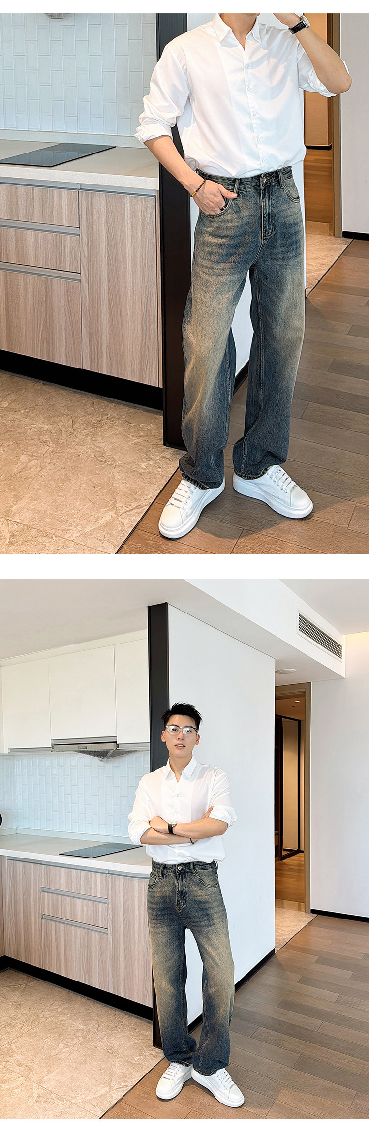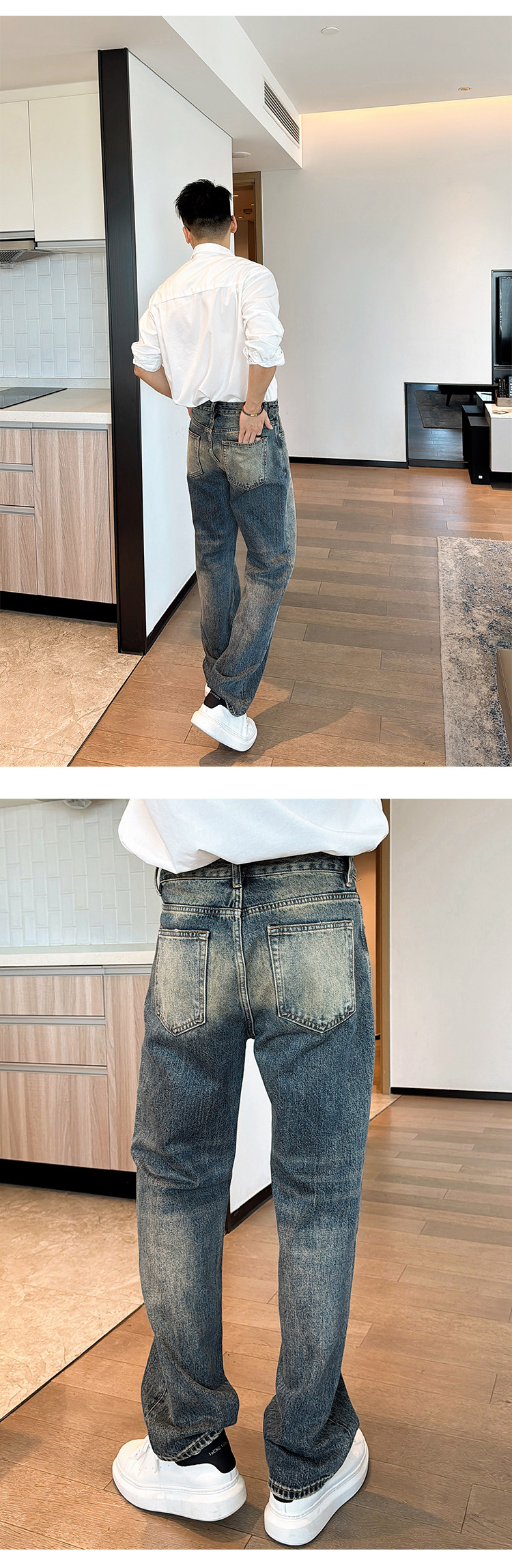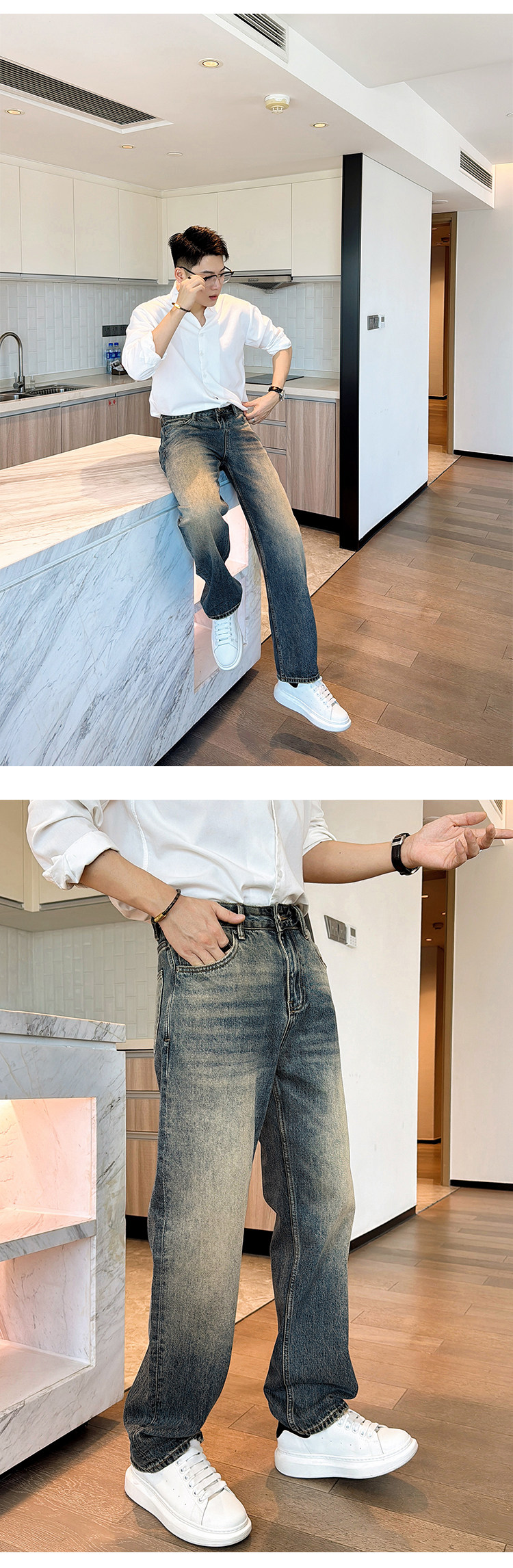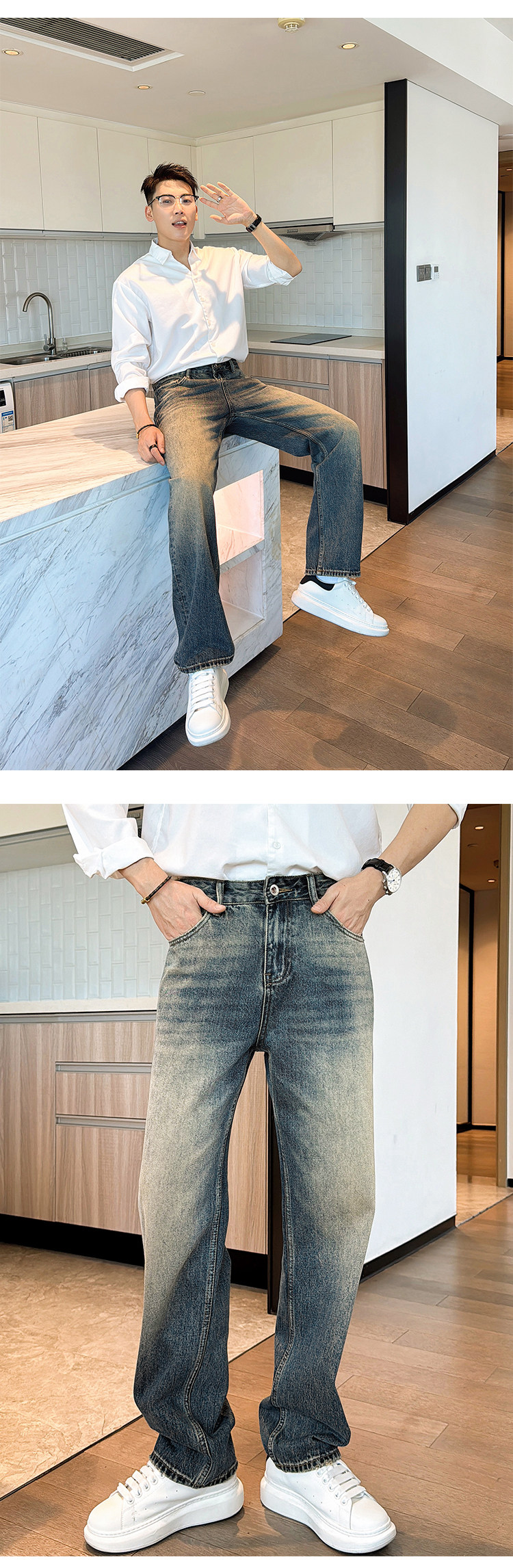 渣渣鹿显高合体直筒窄版牛仔裤男士春秋季做旧美式潮牌百搭长裤子 [Original Page Link]