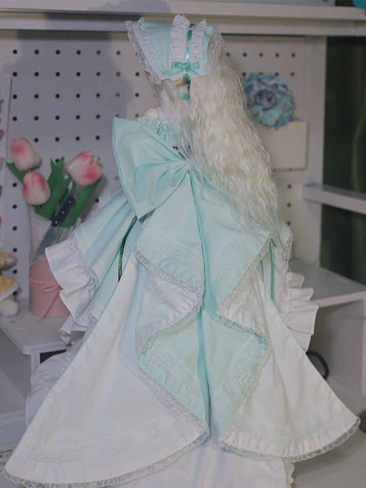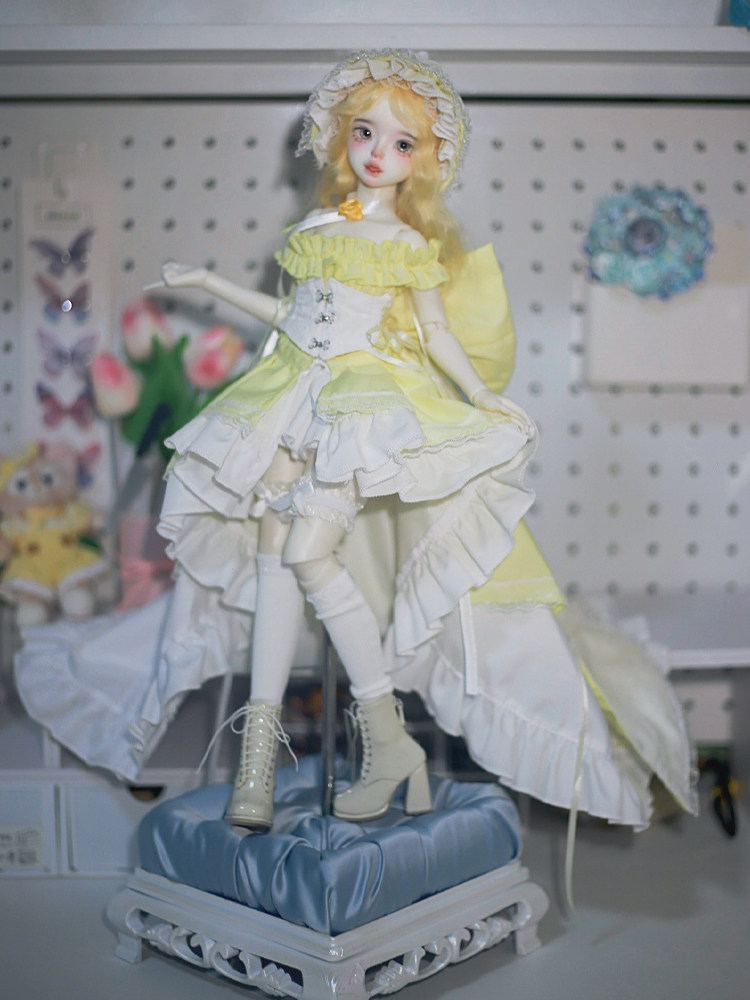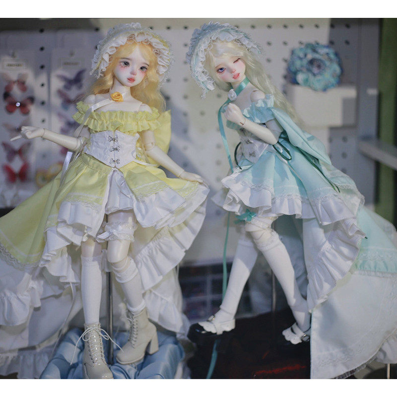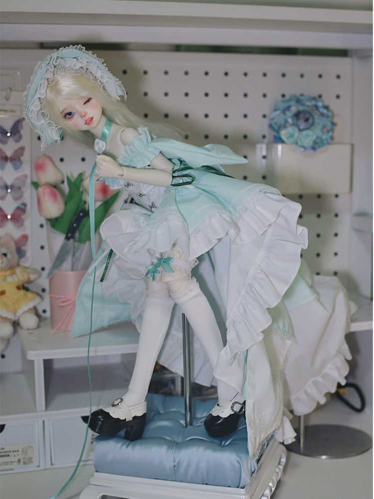 Four-point BJD baby clothes for a chubby four-year-old bear girl with a short front and long back baby clothes falling off.