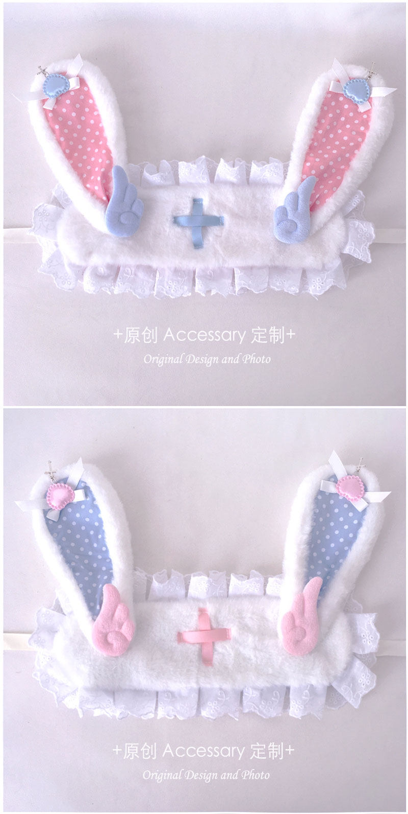 Subculture disease cross angel wings plush rabbit ears headband medical style headdress y2k girly lace pink and blue