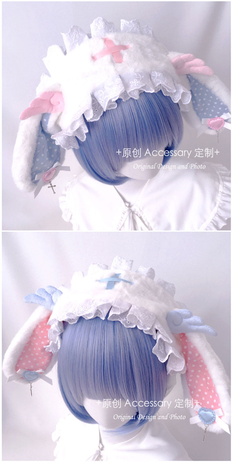 亚文化病十字架天使翅膀毛绒兔耳发带医疗系头饰y2k少女蕾丝粉蓝 [Original Page Link]