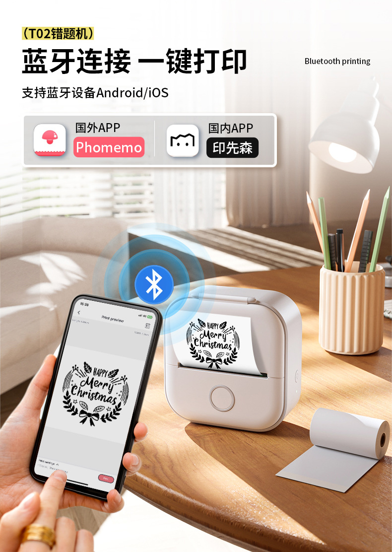 Mini Sticker Printer T02 Portable Thermal Printer Inkless