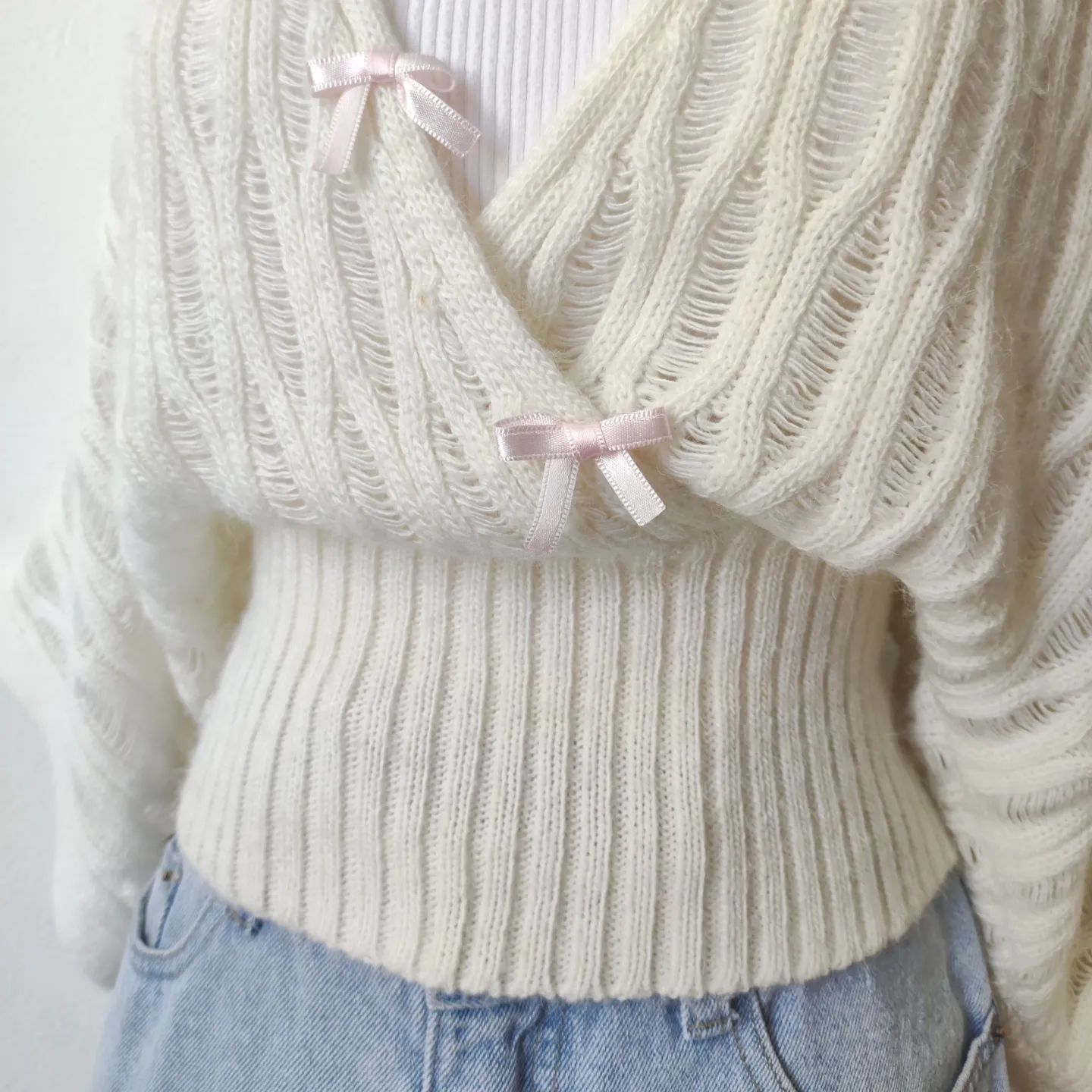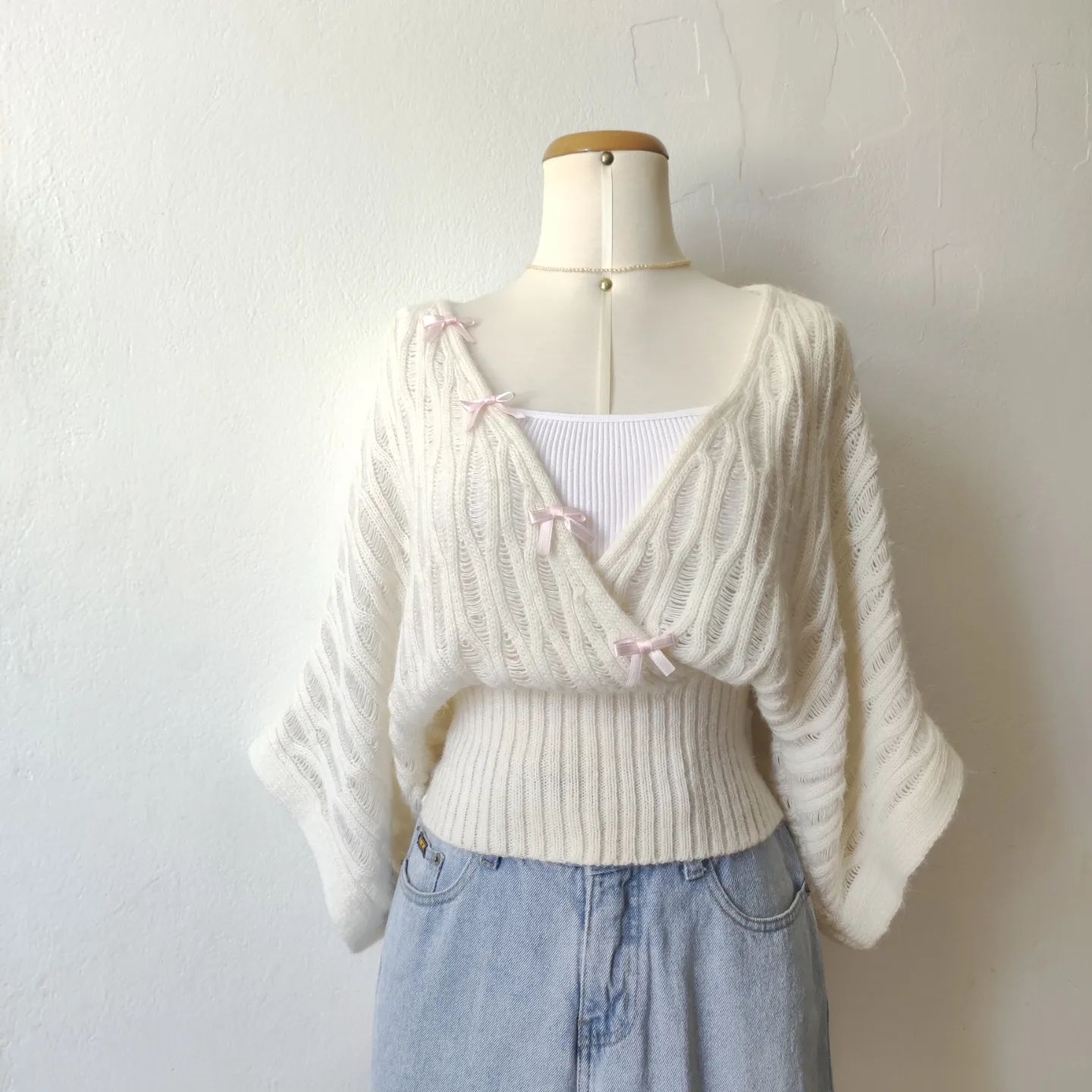 白梨蔓 原创设计法式覆古蝙蝠袖v领针织毛衣设计感小众上衣早秋 [Original Page Link]