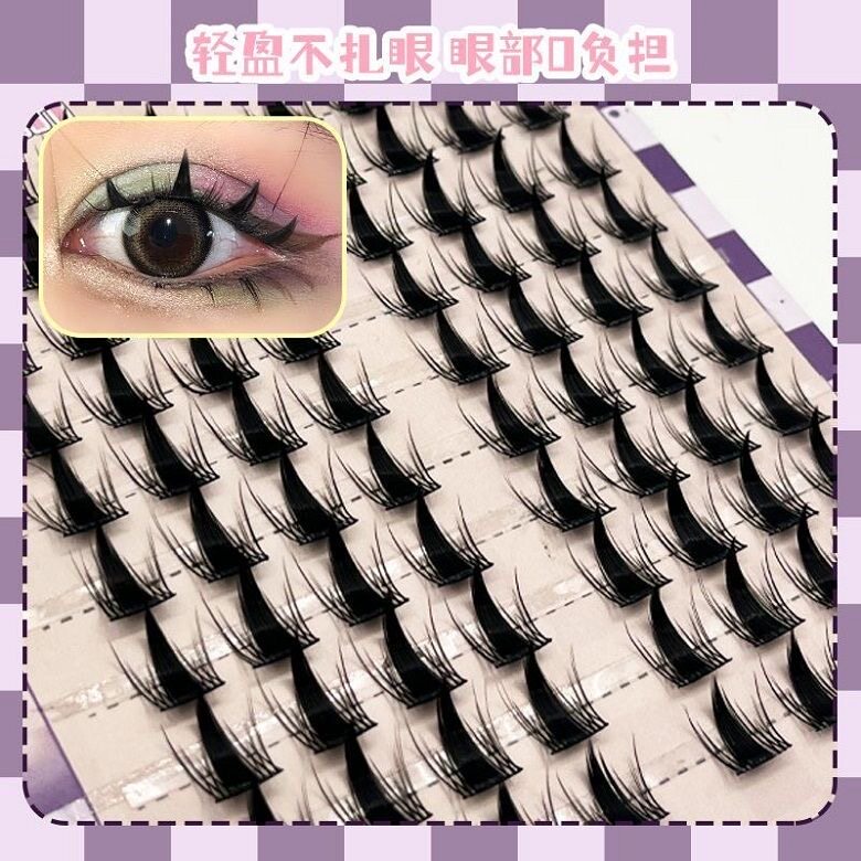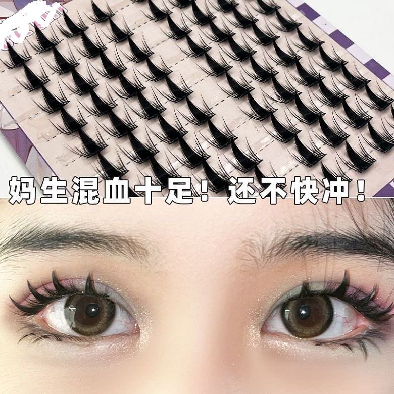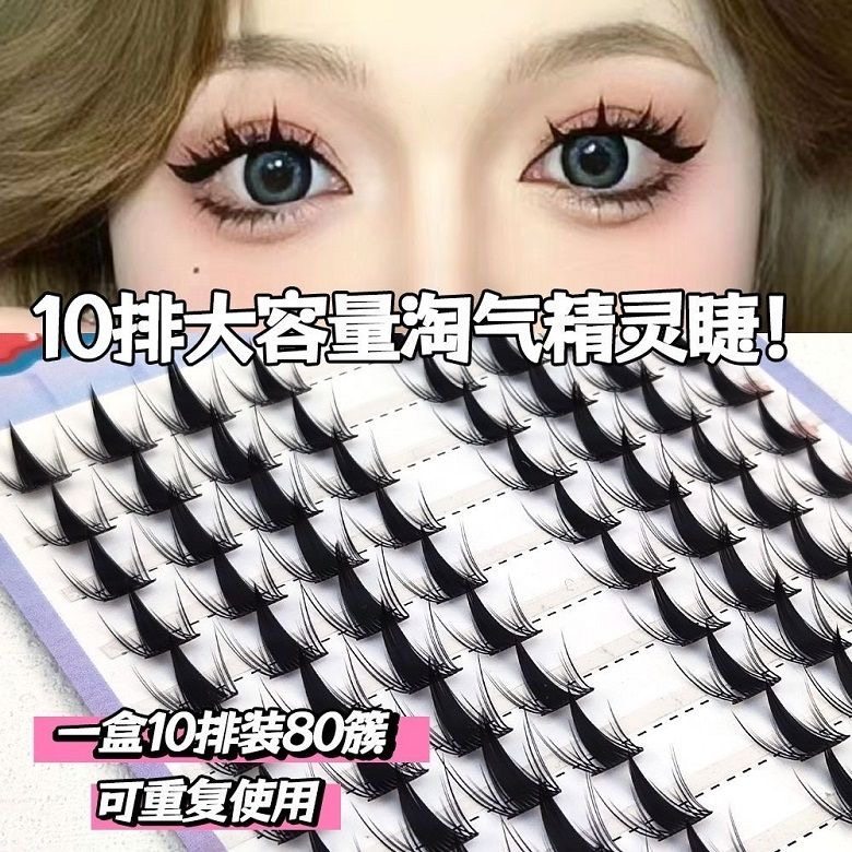 Large capacity Naughty Elf false eyelashes, thick and segmented, suitable for beginners, made of cotton thread, black stem, natural big eyes, Barbie comic book style.