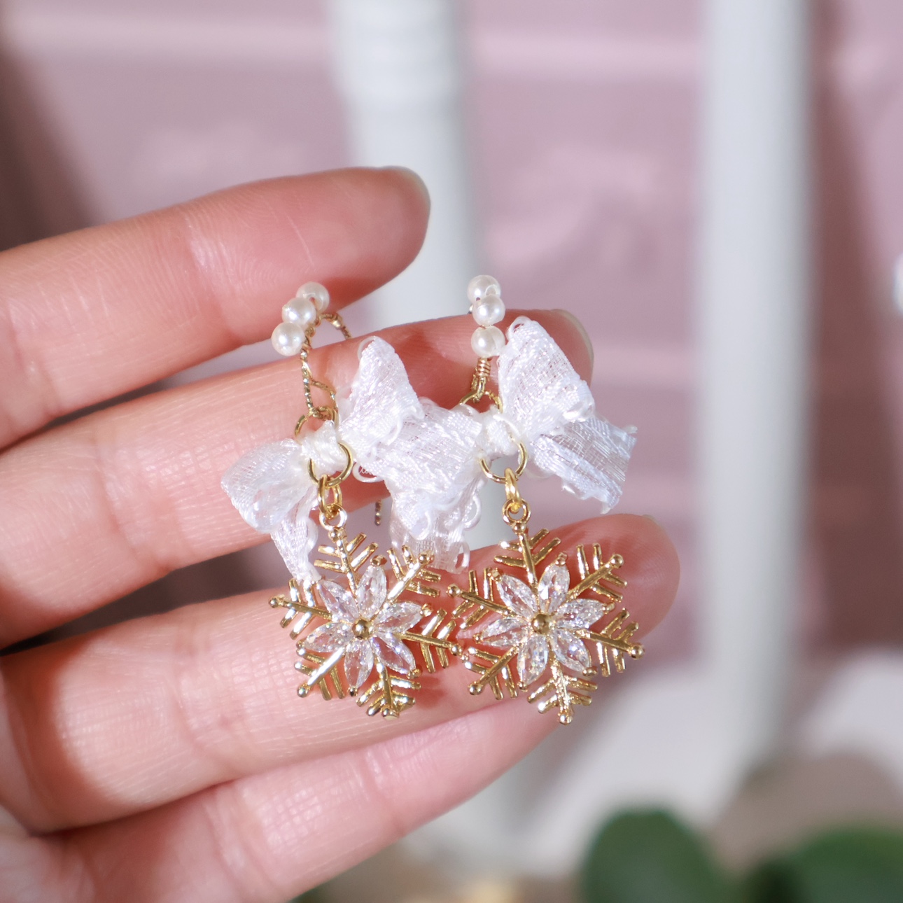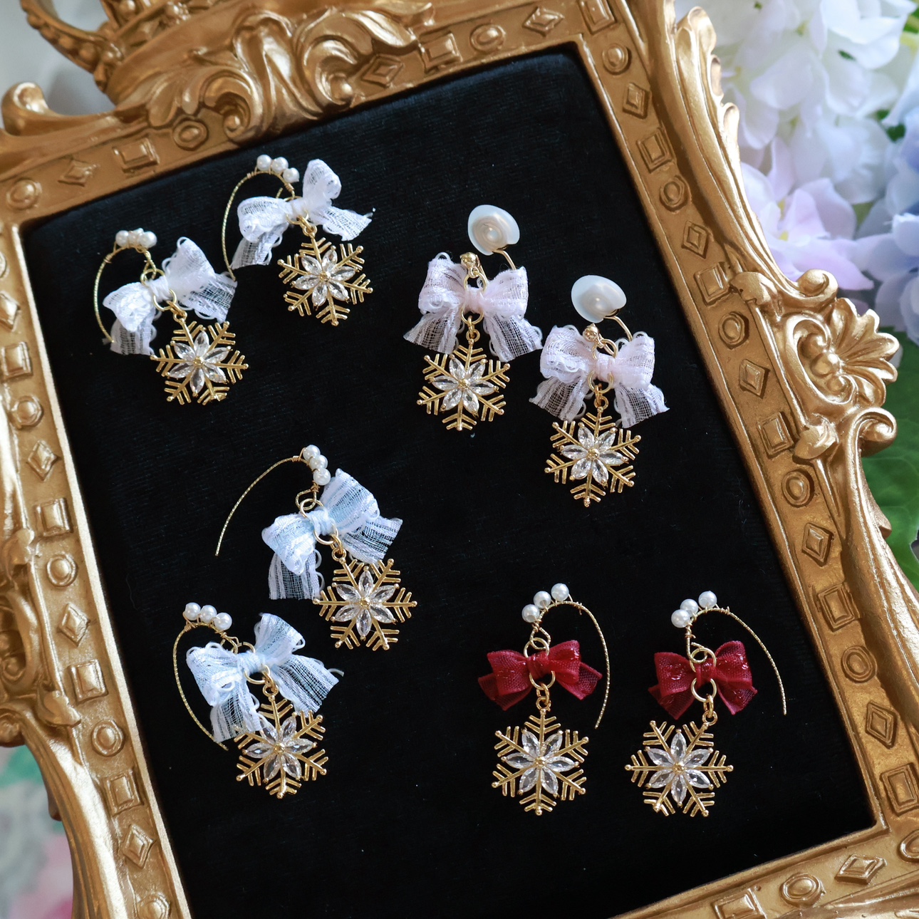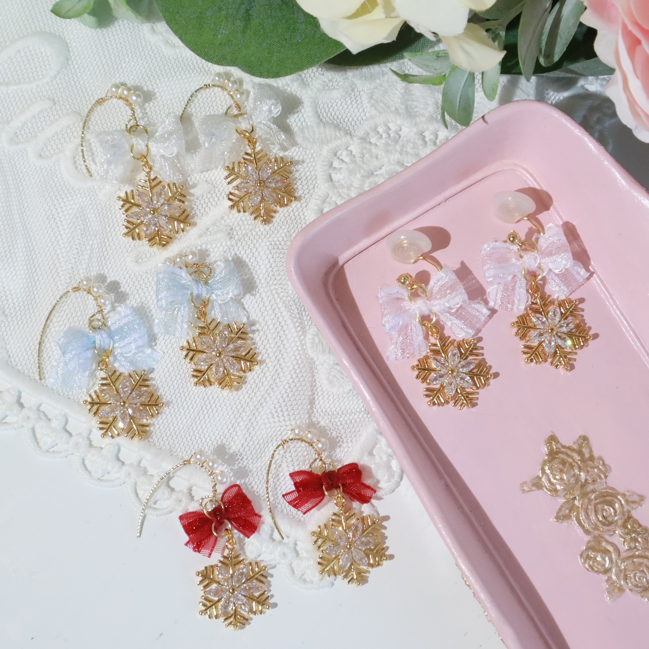 【芝士猫手作】圣诞g雪花蝴蝶结水钻轻奢lolita小物耳饰耳钩耳夹 [Original Page Link]