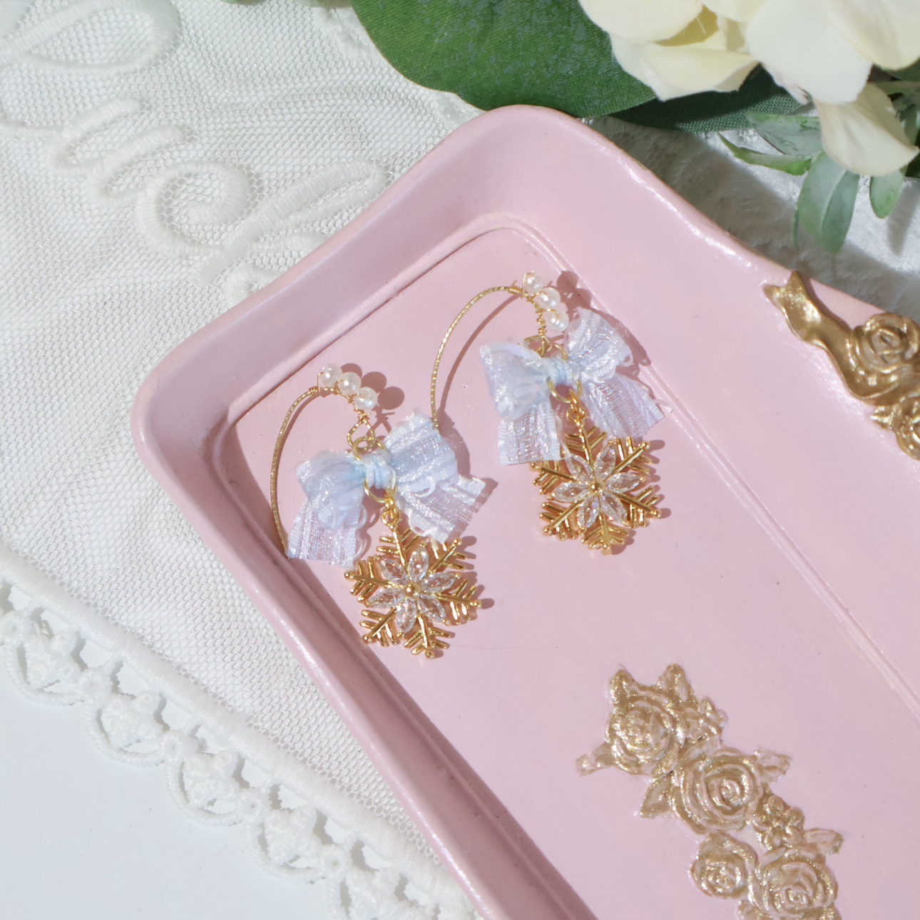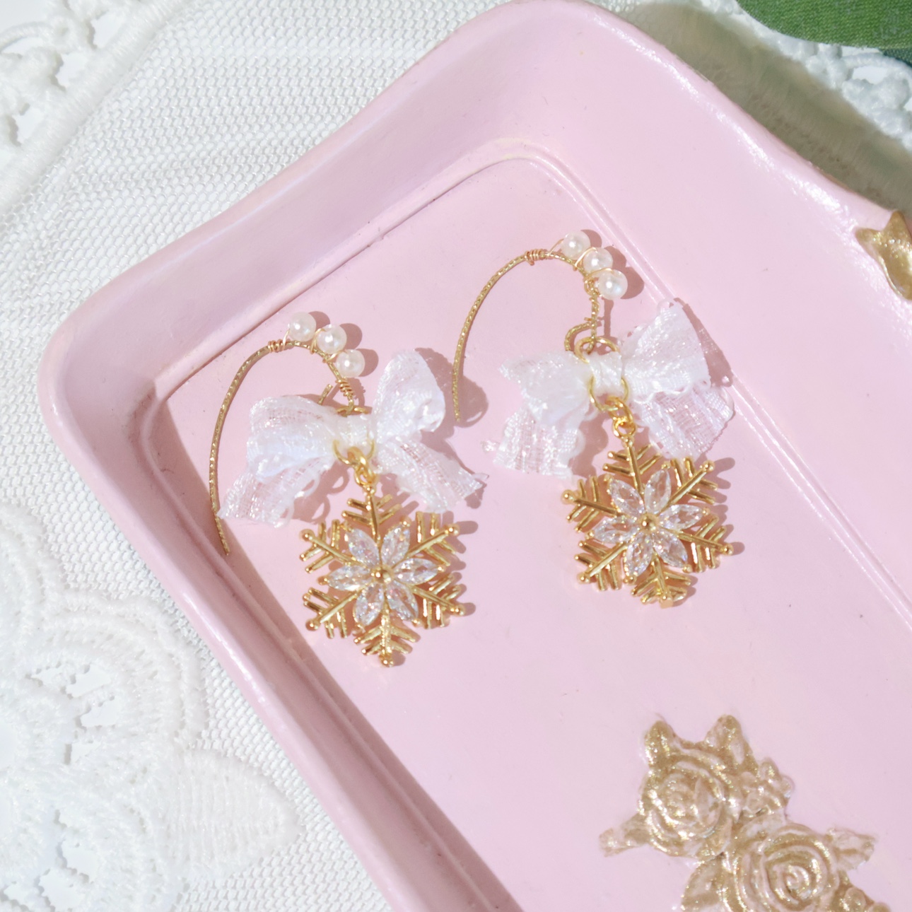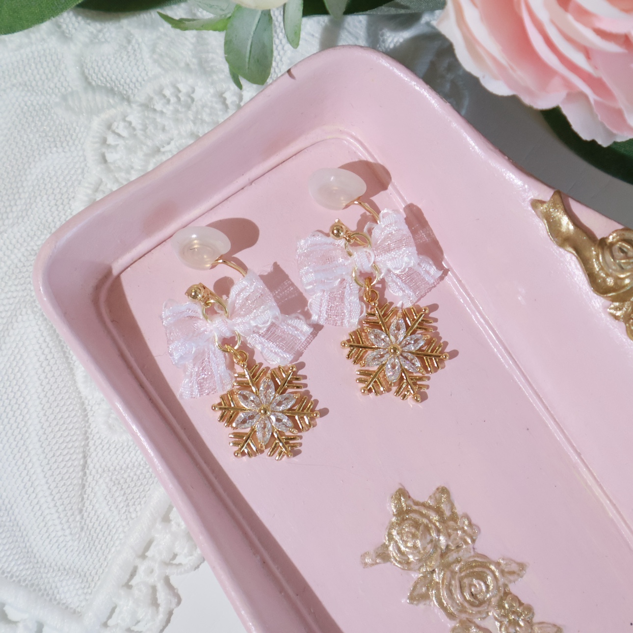 【芝士猫手作】圣诞g雪花蝴蝶结水钻轻奢lolita小物耳饰耳钩耳夹 [Original Page Link]