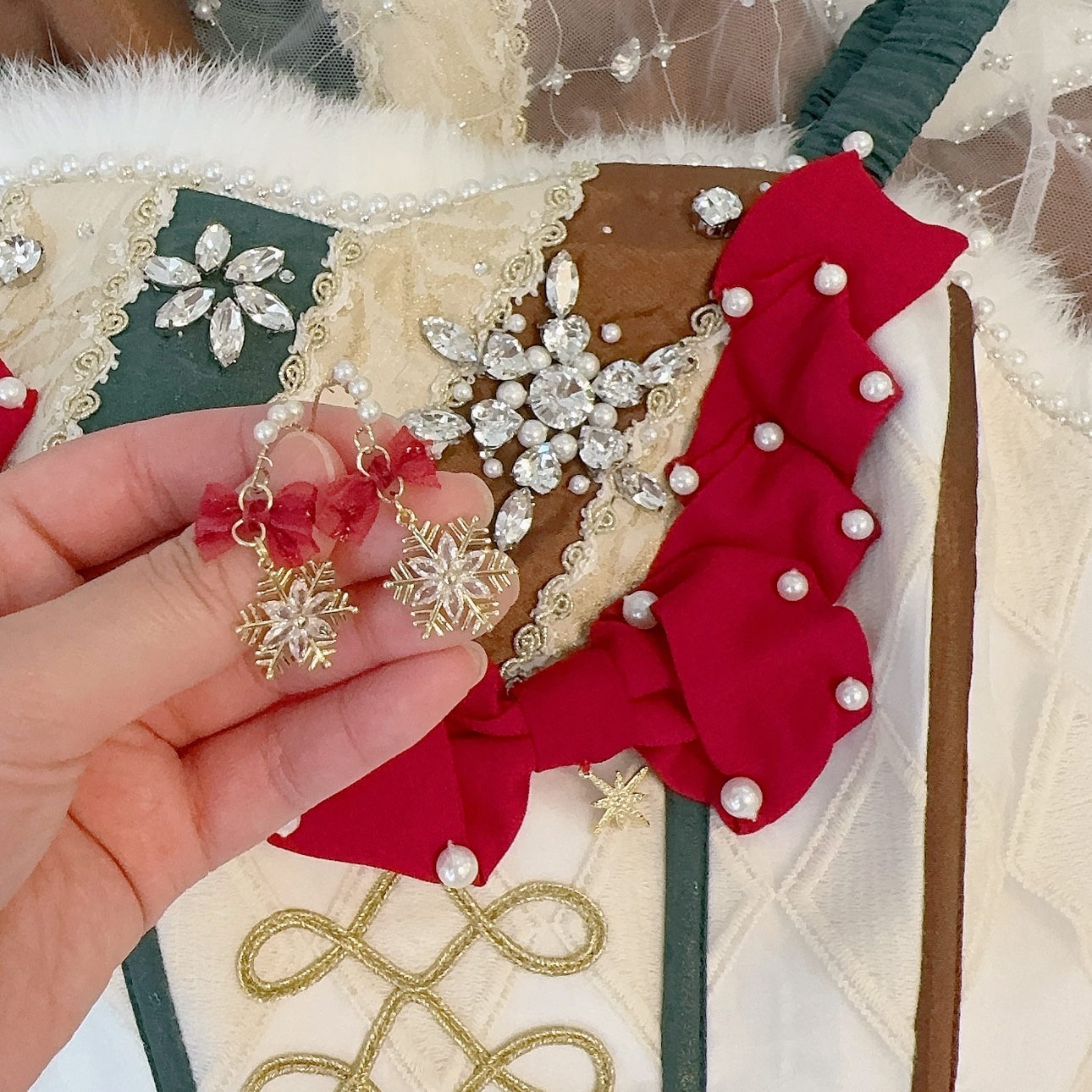 [Cheese Cat Handmade] Christmas G Snowflake Bow Rhinestone Light Luxury Lolita Small Earrings Ear Hooks Ear Clips