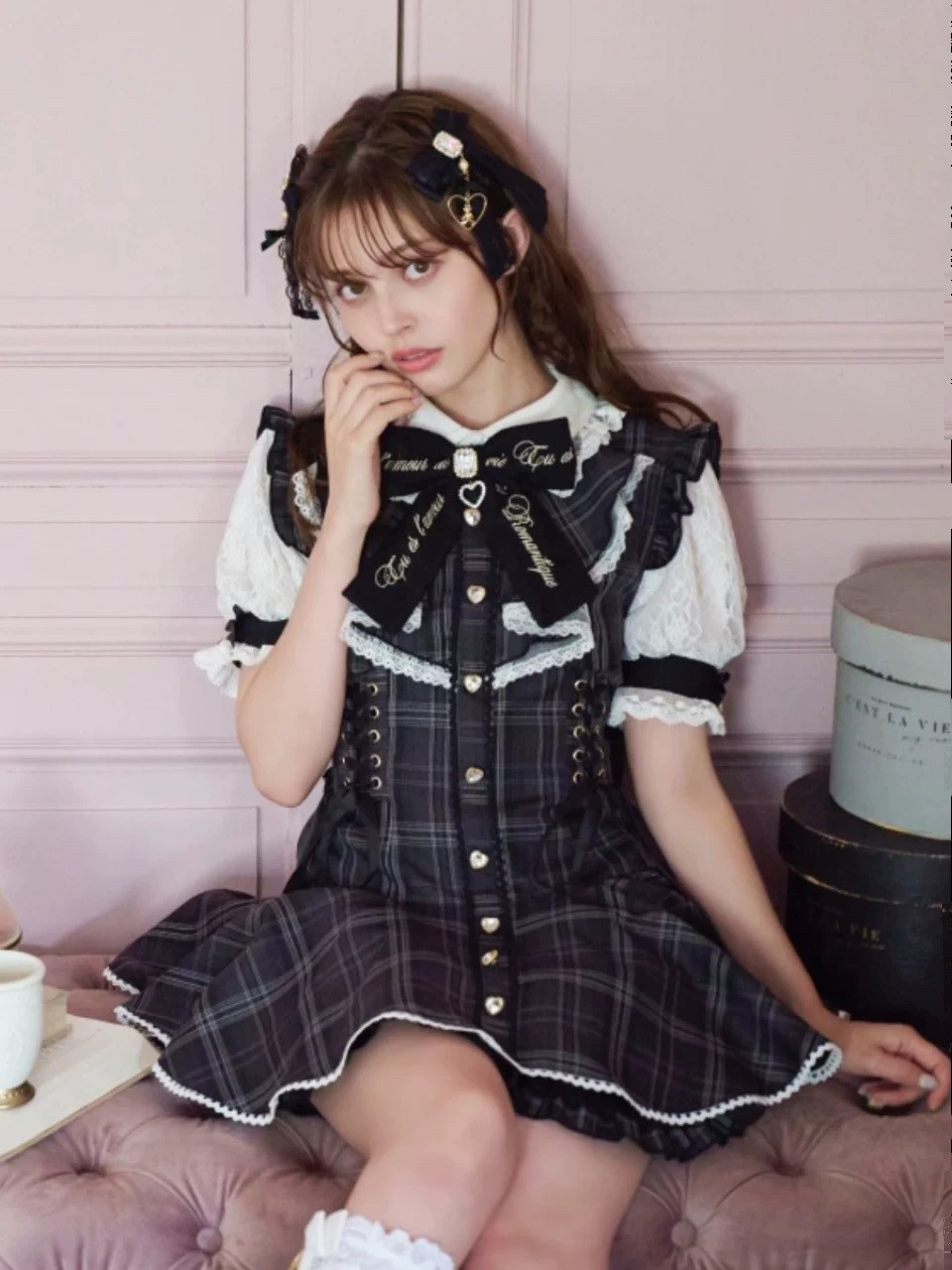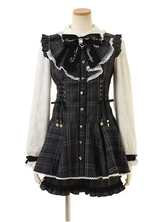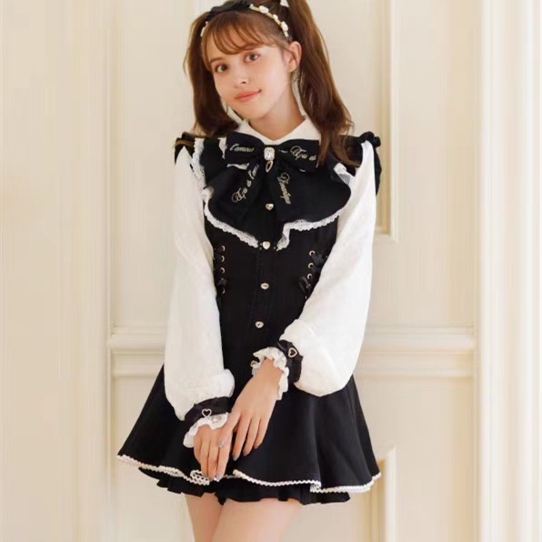 装新款钻扣爱心蝴蝶结蕾丝袖量产型日单64短袖套装 [Original Page Link]