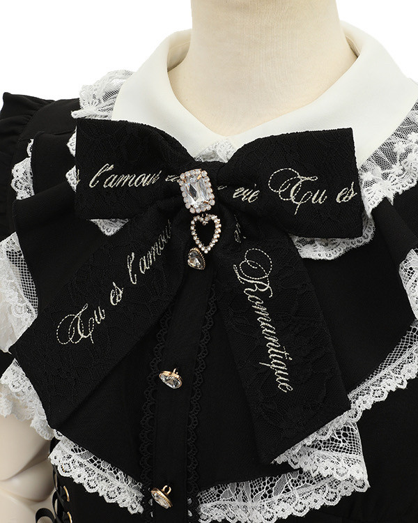 New diamond button heart bow lace sleeves mass production Japanese single 64 short sleeve suit