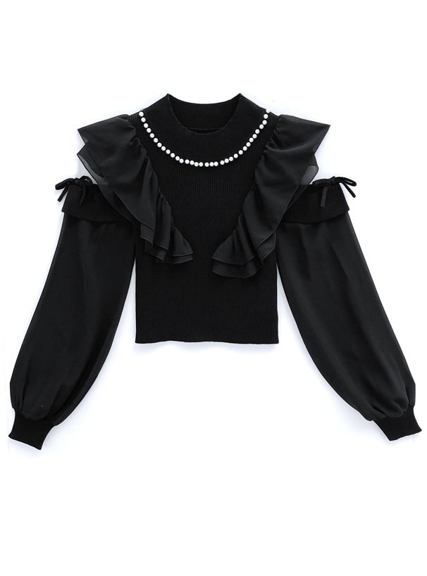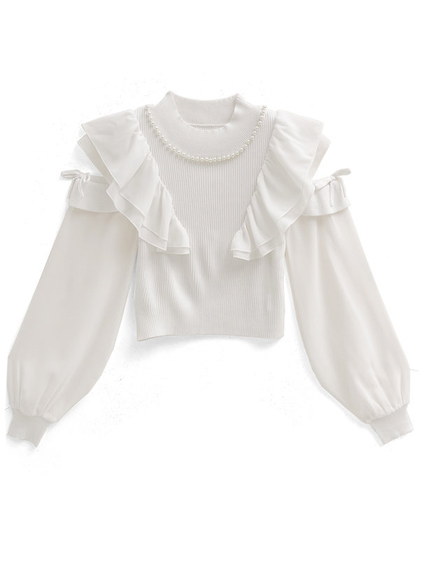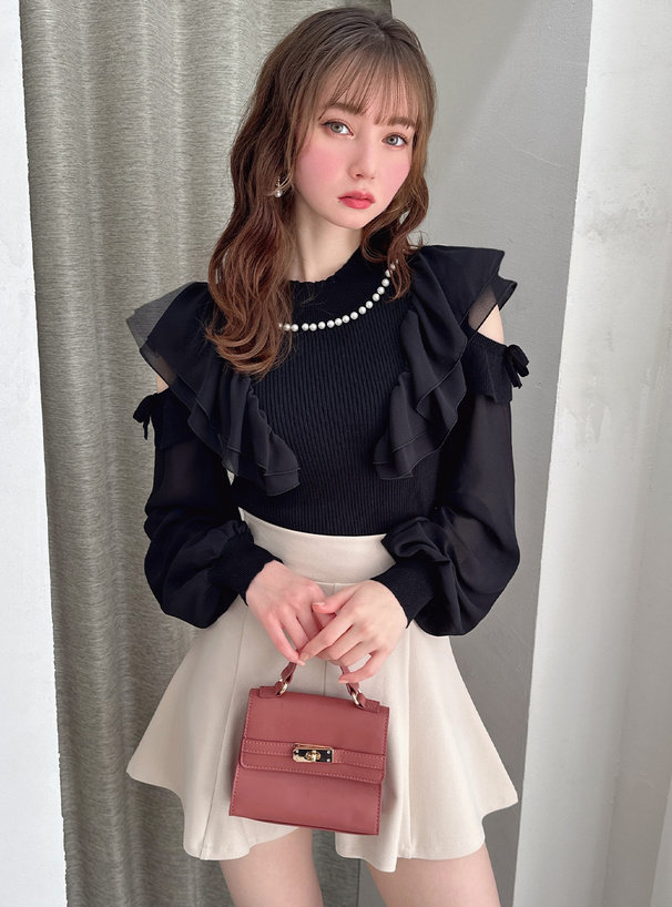 Authentic Japanese import GRL Japanese style women's summer new cute pearl bow ruffle off-shoulder top