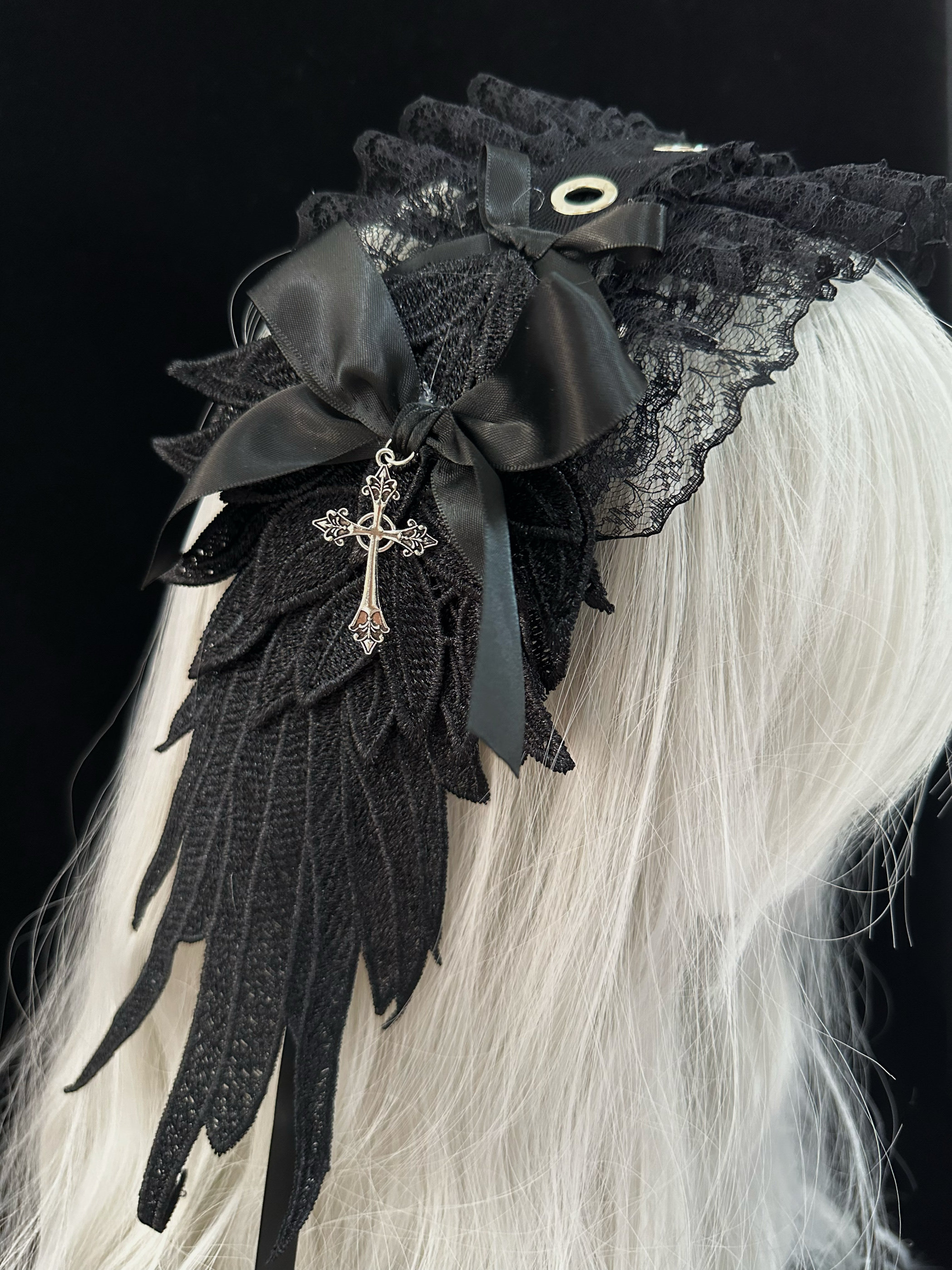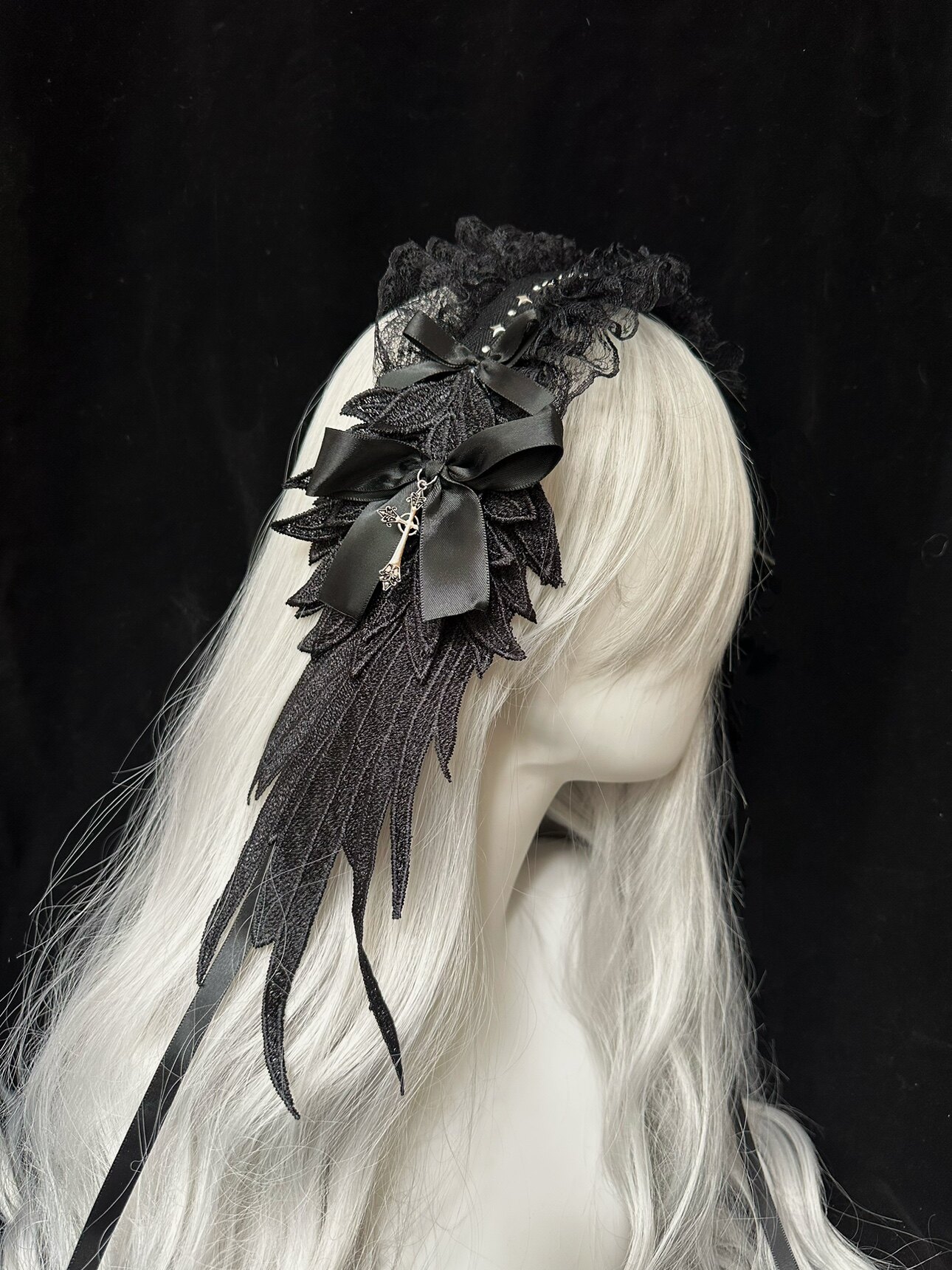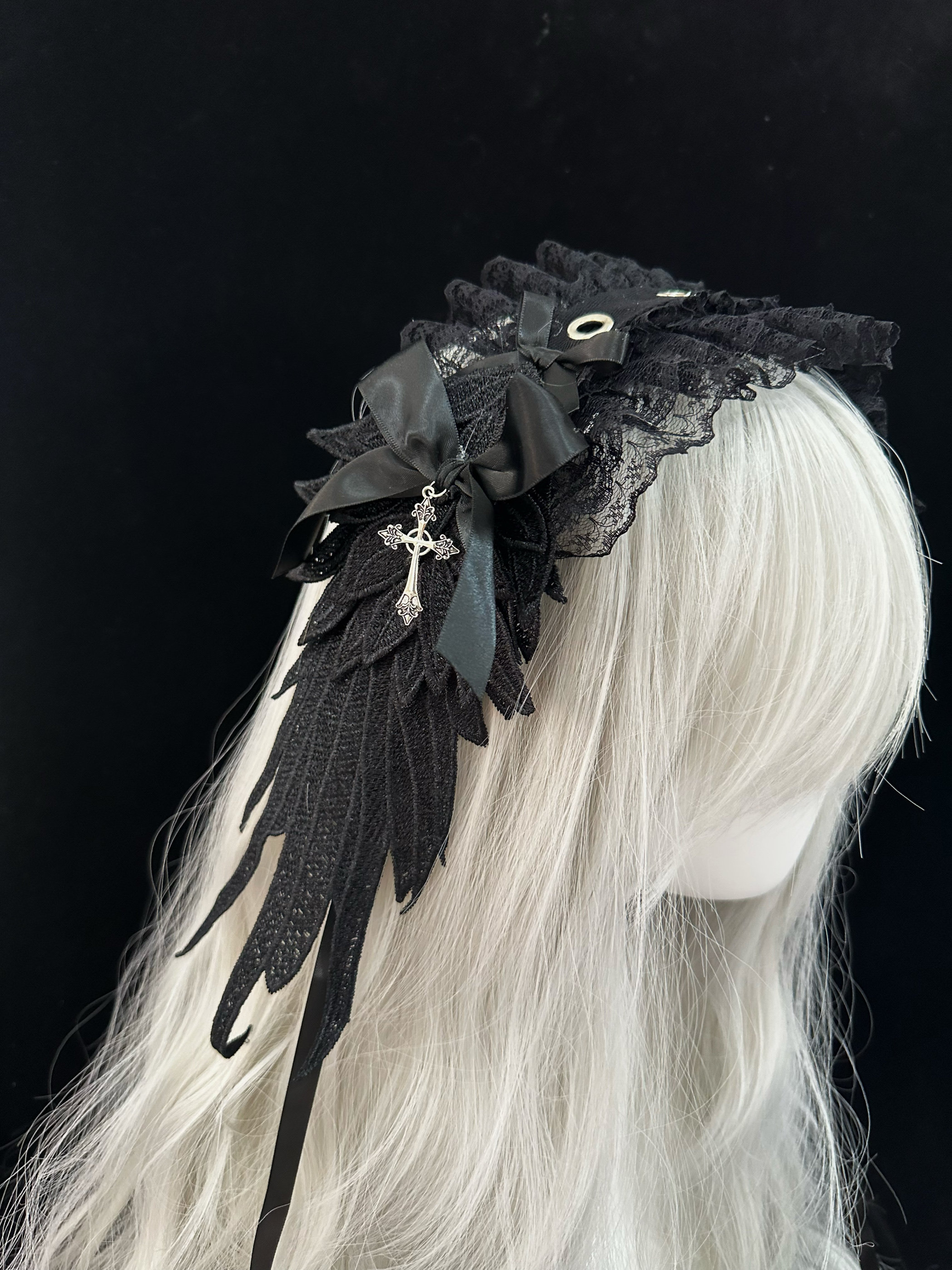 自制手作Lolita翅膀发带哥特暗黑天使头饰发饰羽毛十字架cosplay [Original Page Link]