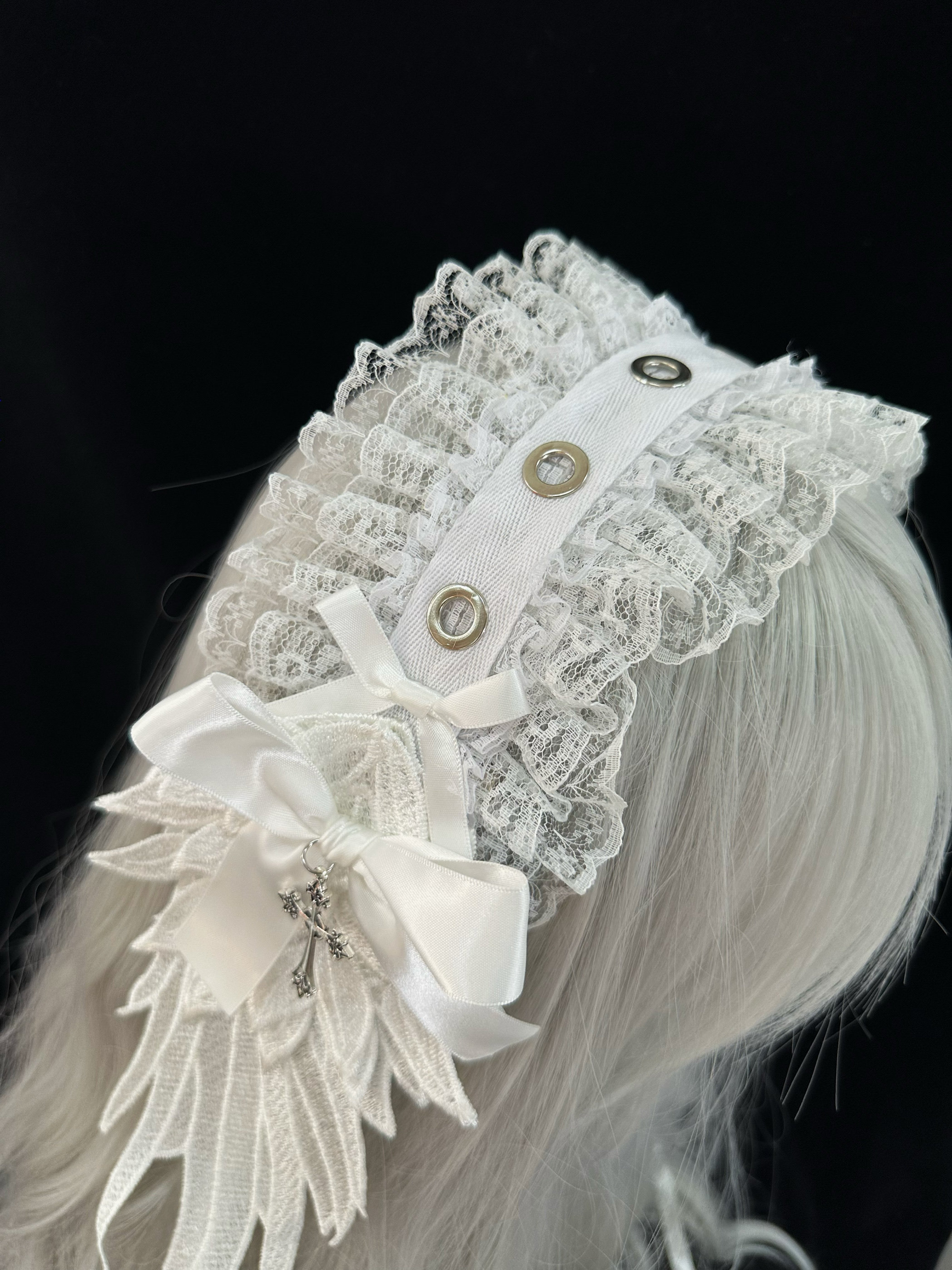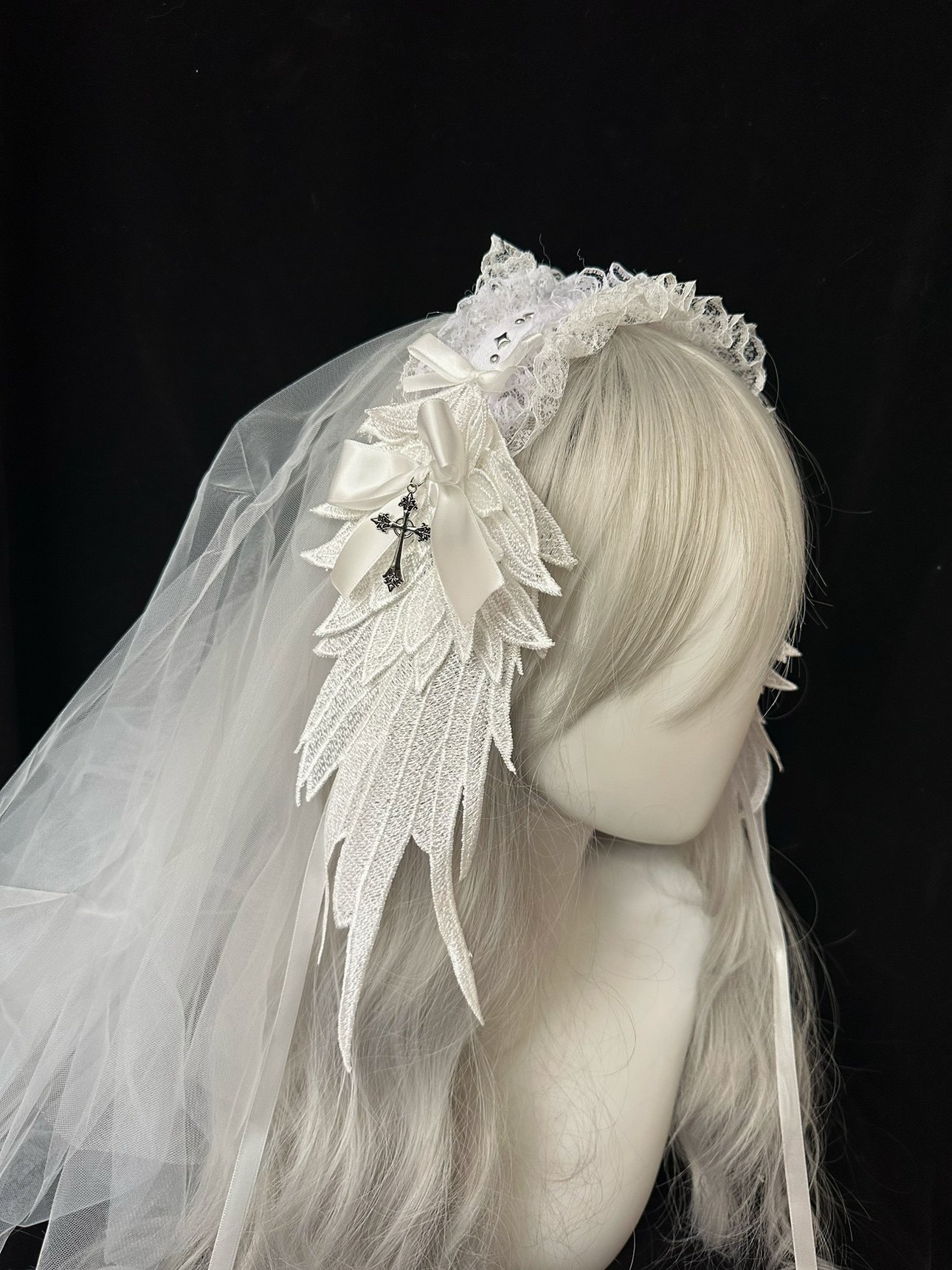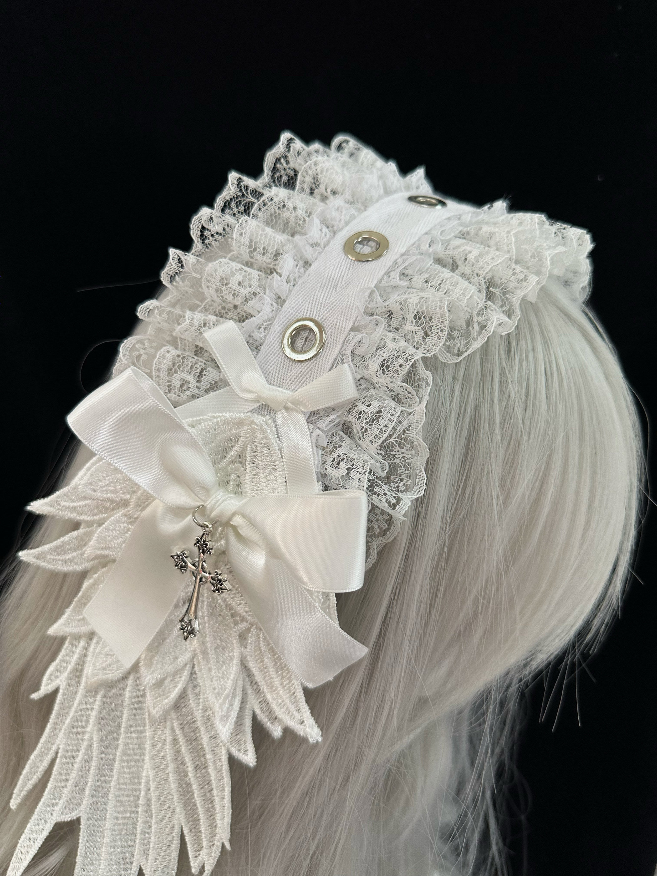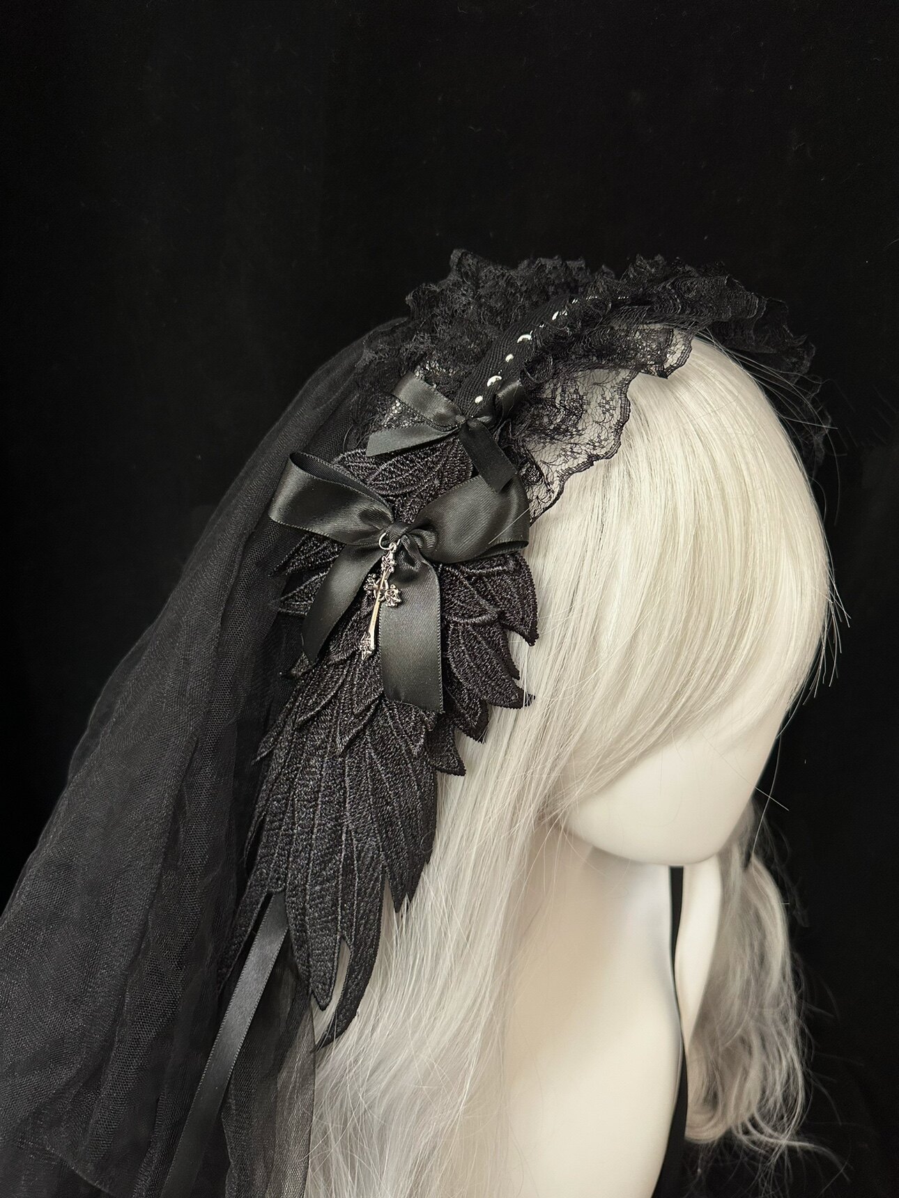 自制手作Lolita翅膀发带哥特暗黑天使头饰发饰羽毛十字架cosplay [Original Page Link]