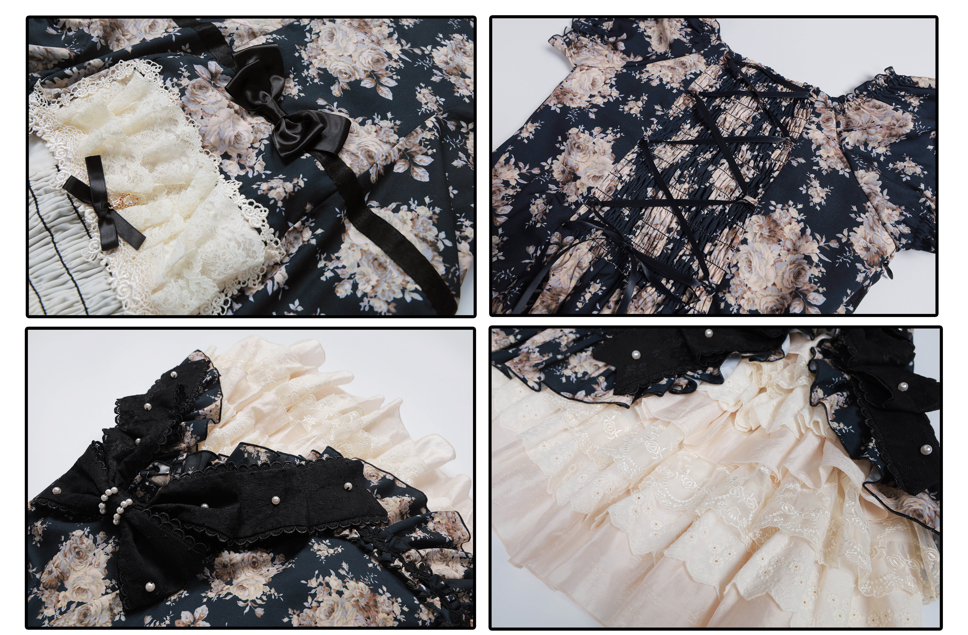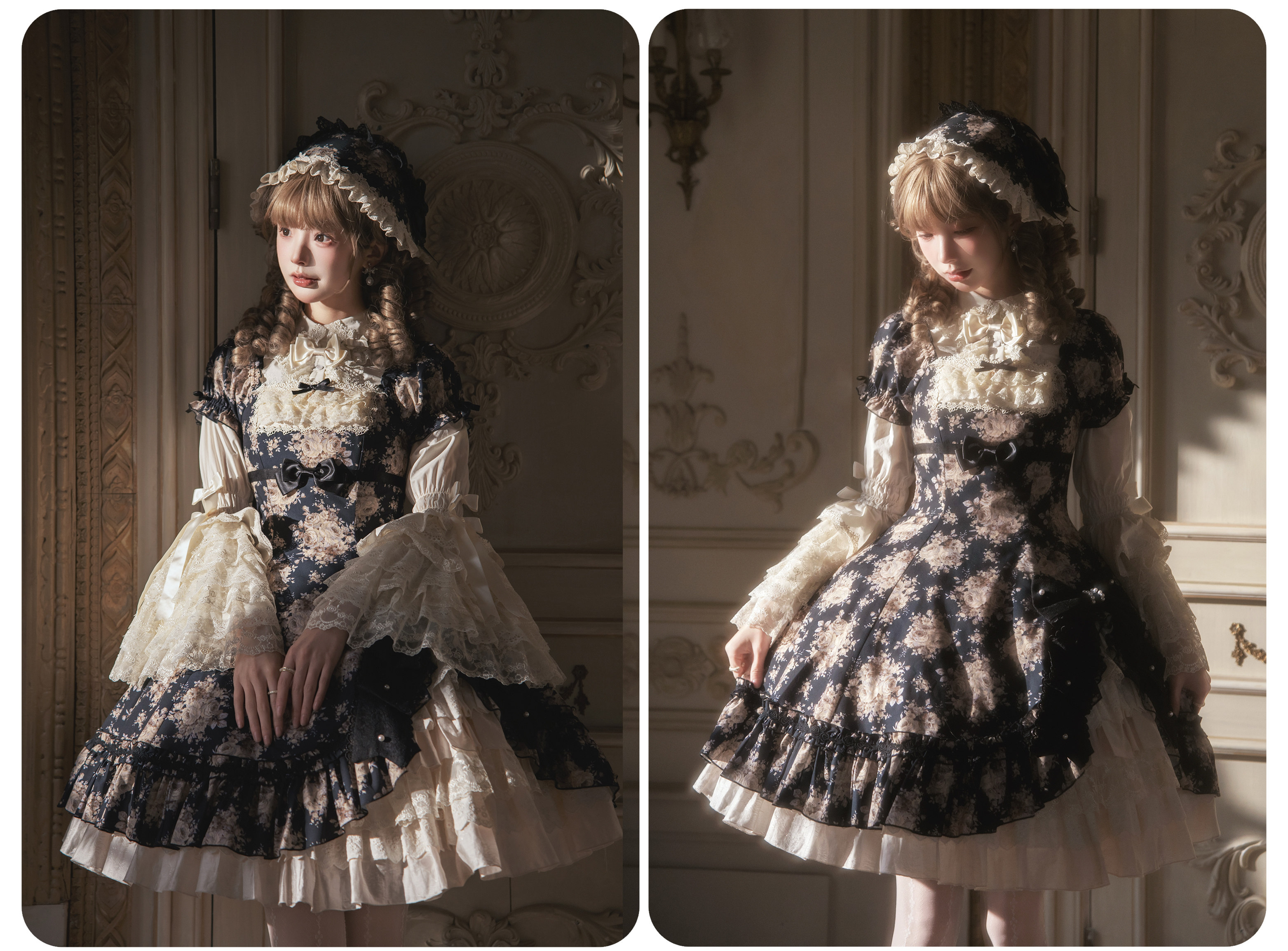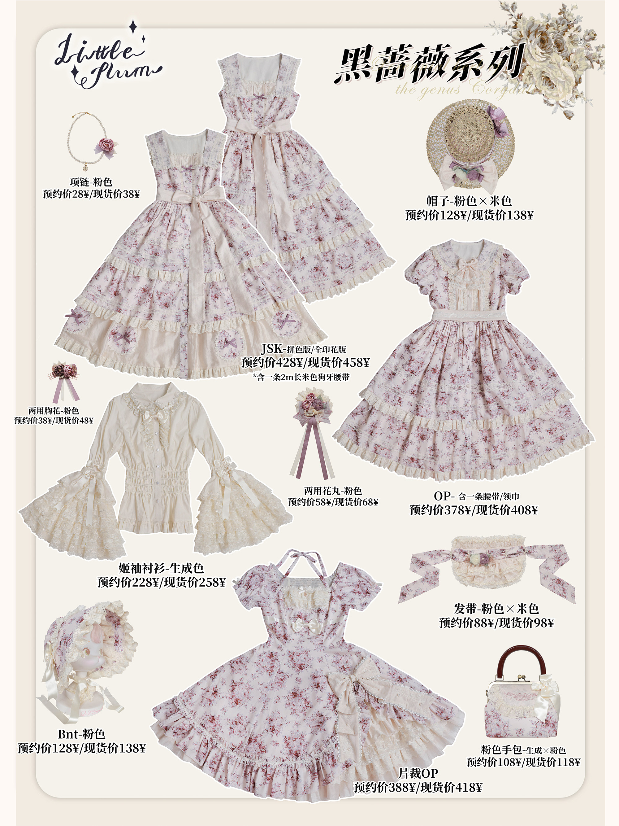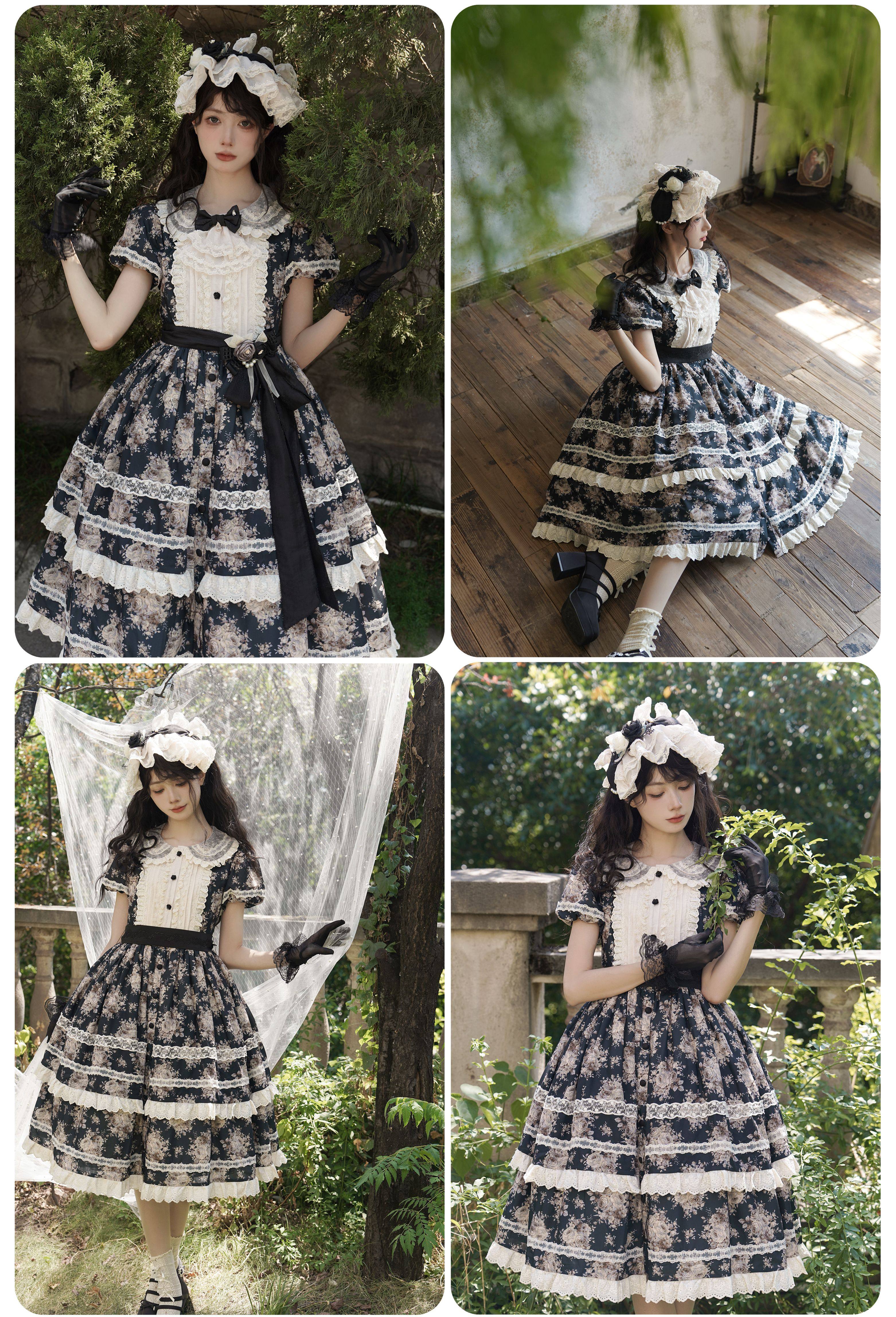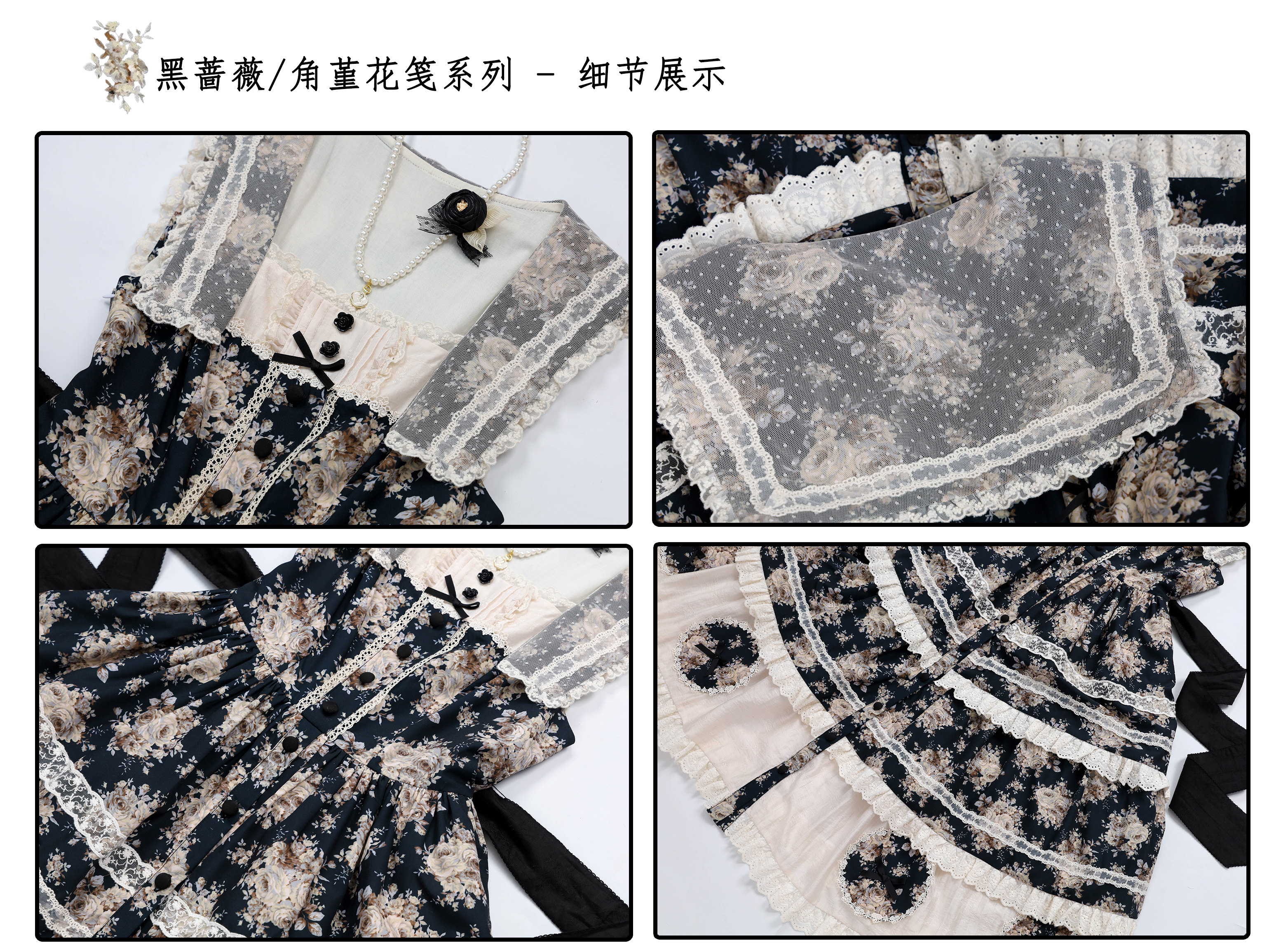 【定金】*黑蔷薇二批慢团*原创春秋碎花花蔷复古优雅洛丽塔连衣裙 [Original Page Link]