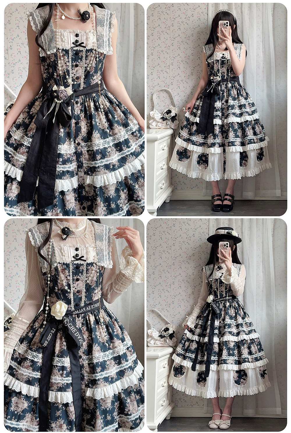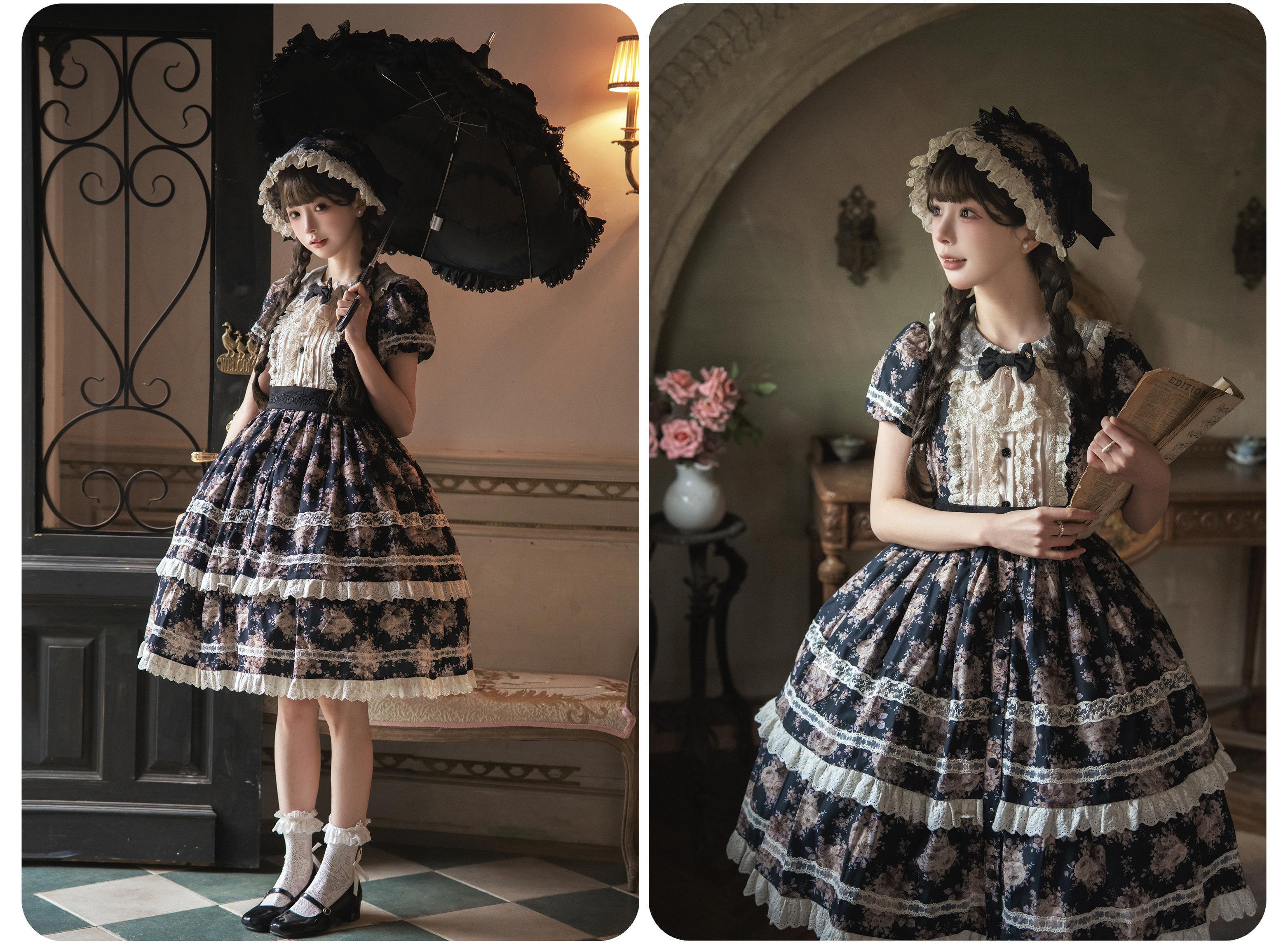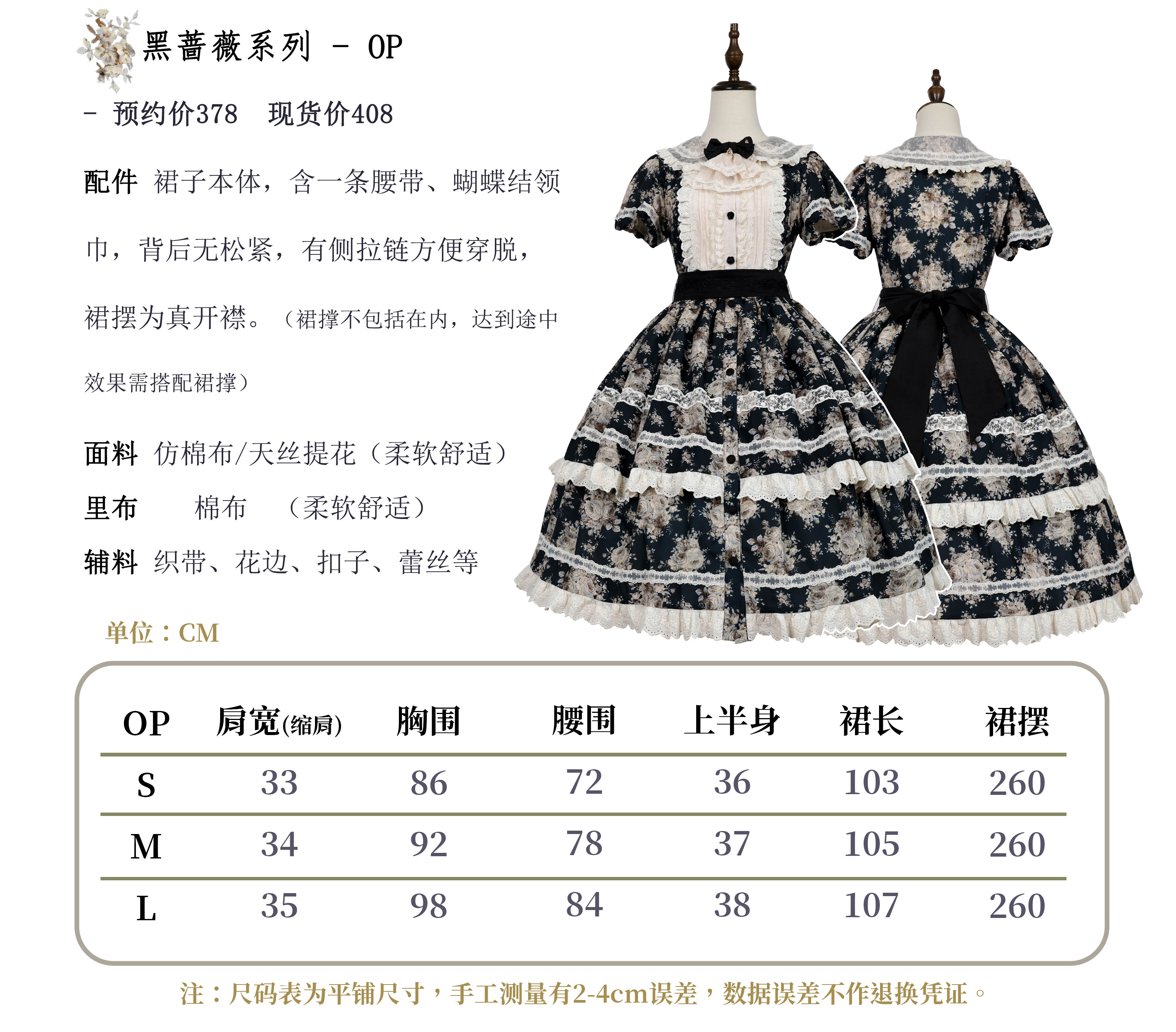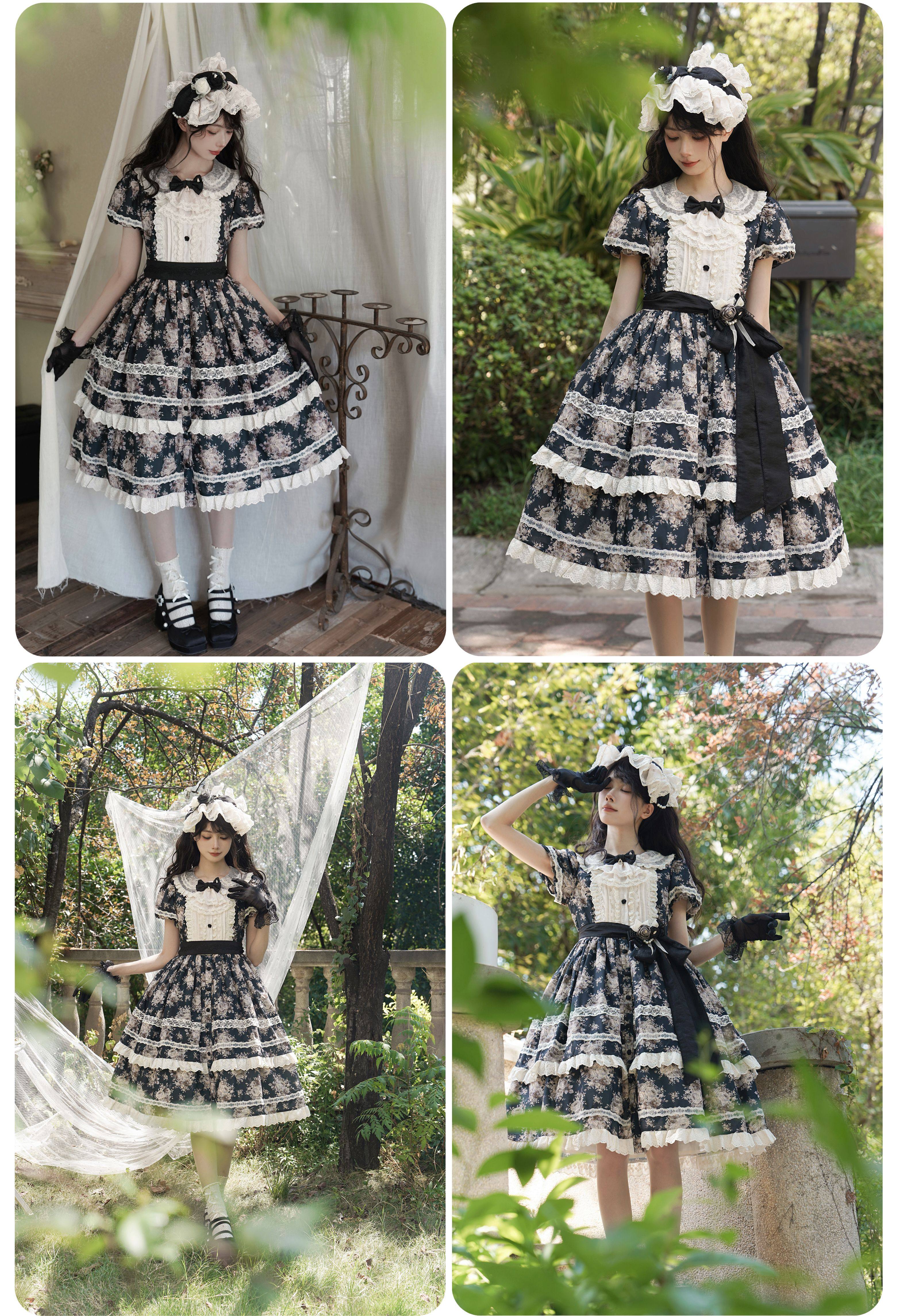 【定金】*黑蔷薇二批慢团*原创春秋碎花花蔷复古优雅洛丽塔连衣裙 [Original Page Link]