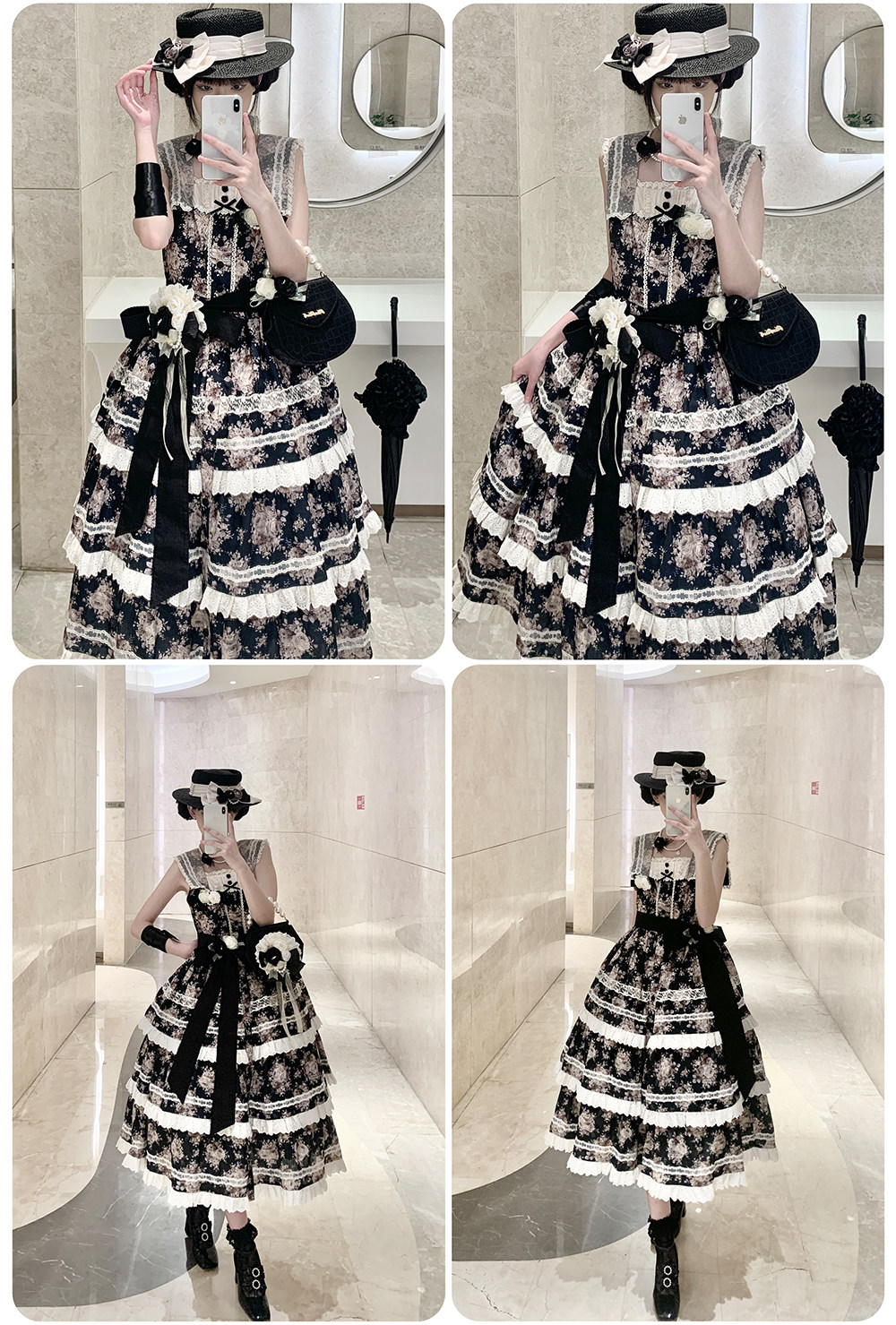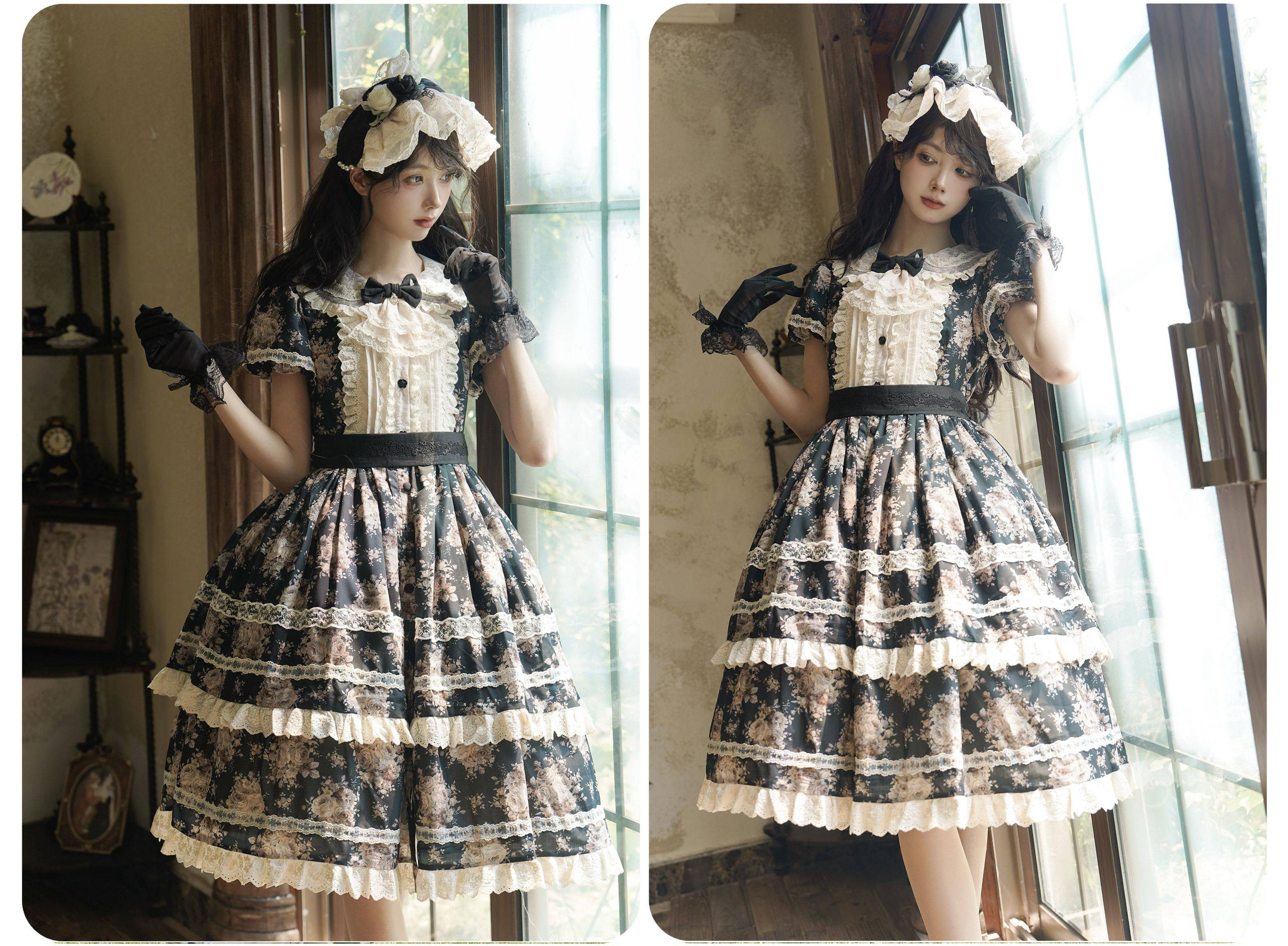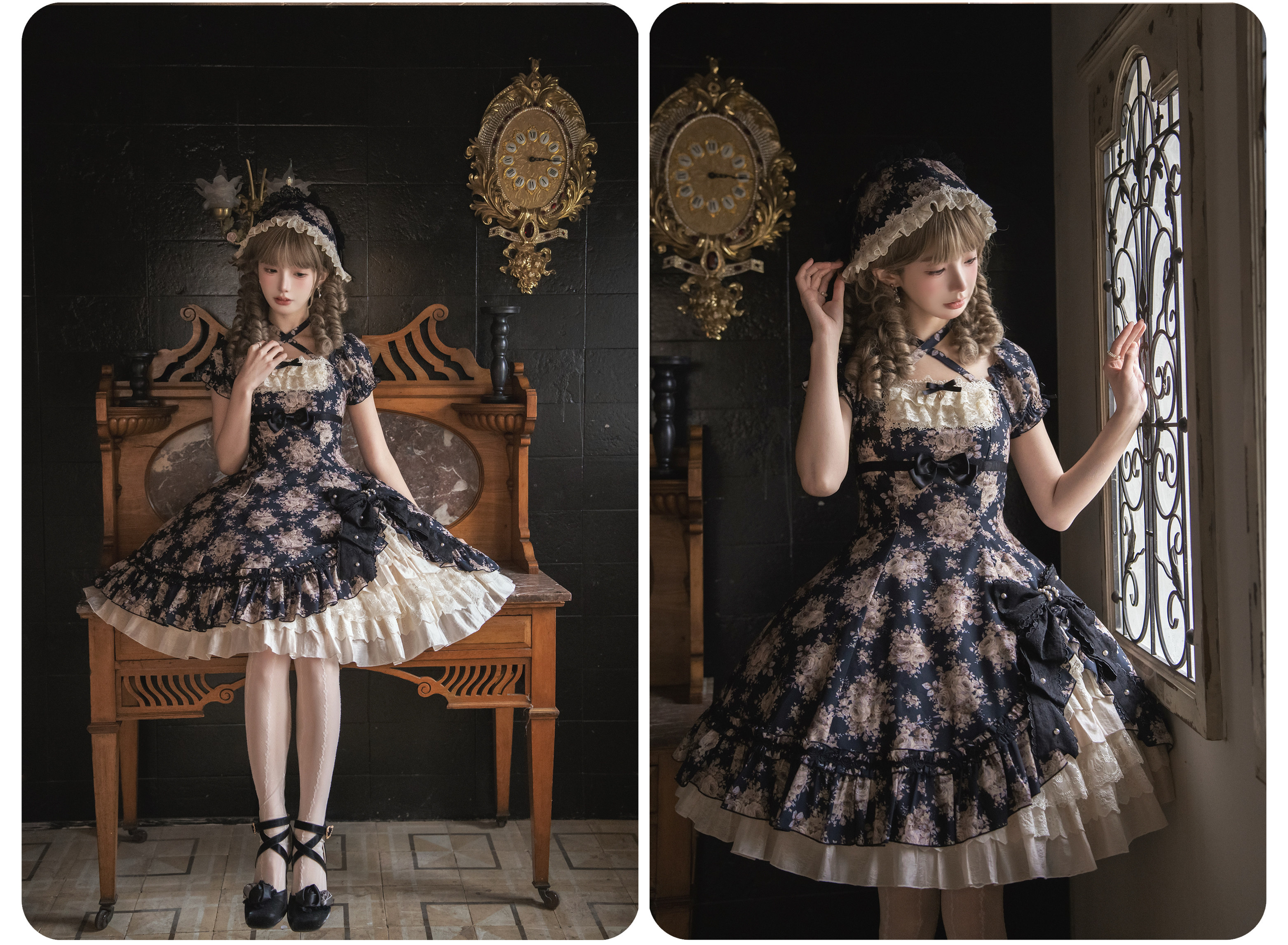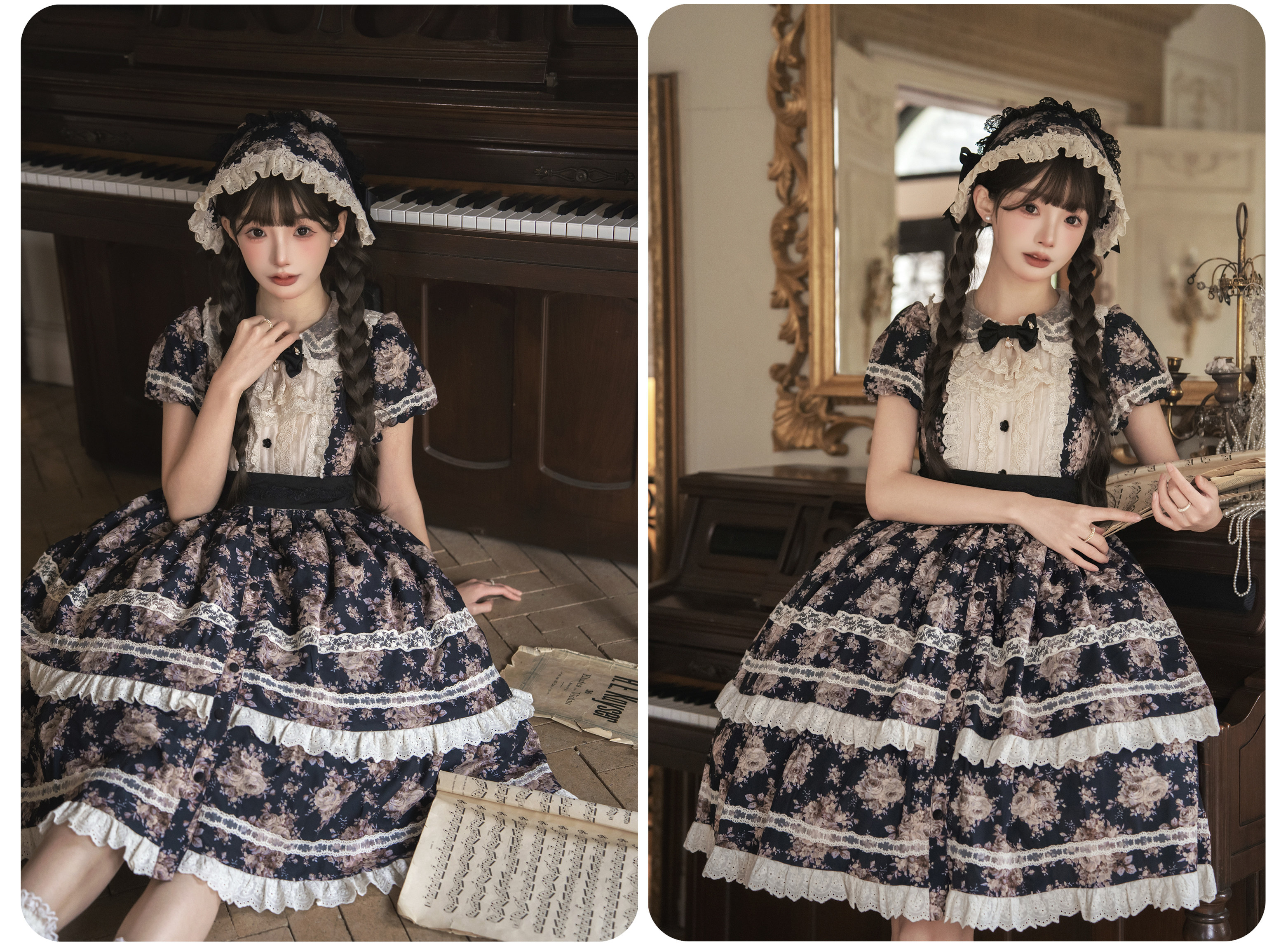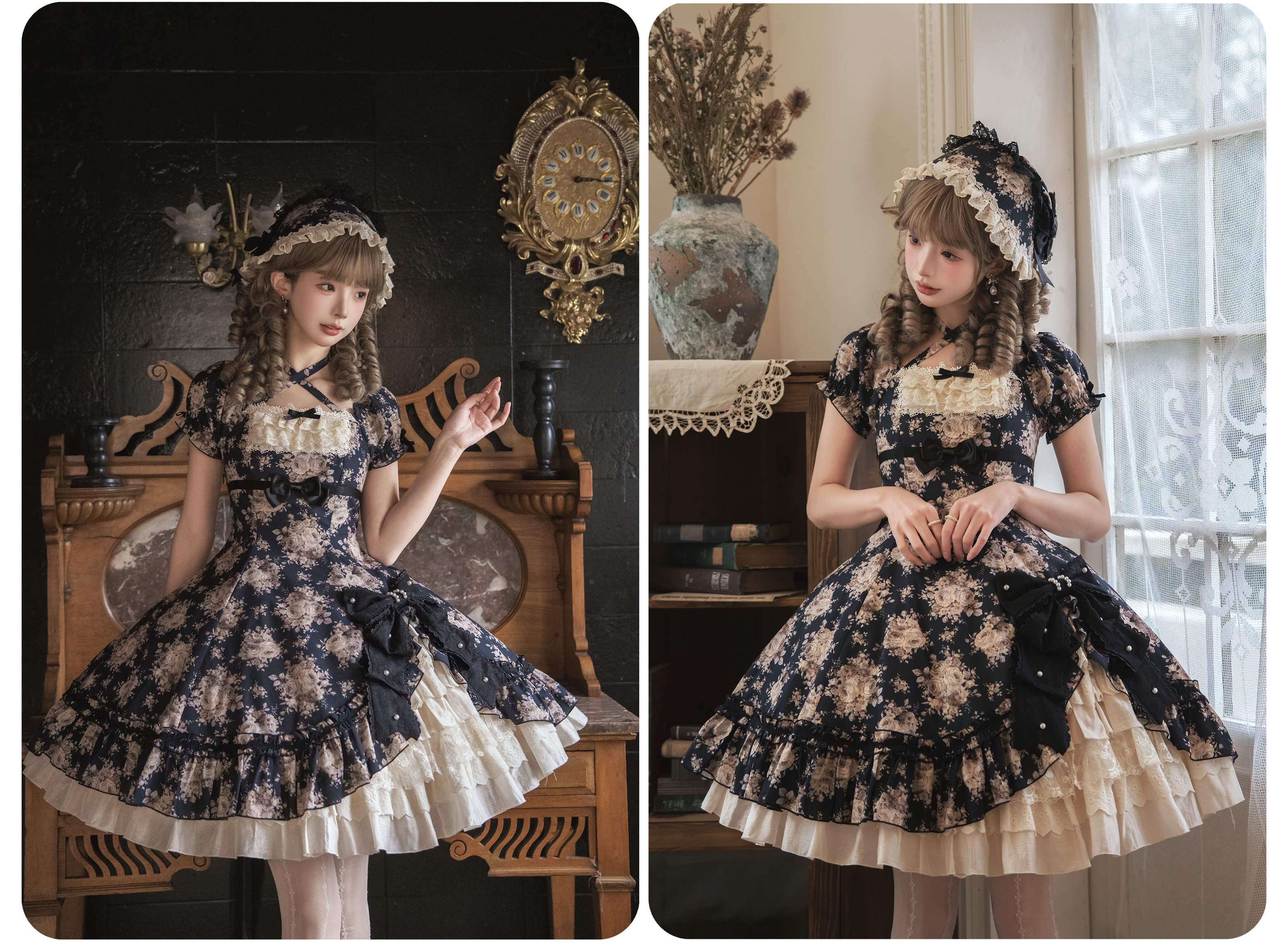 【定金】*黑蔷薇二批慢团*原创春秋碎花花蔷复古优雅洛丽塔连衣裙 [Original Page Link]