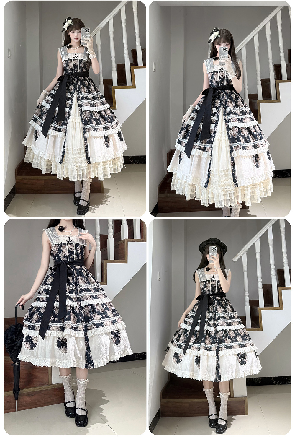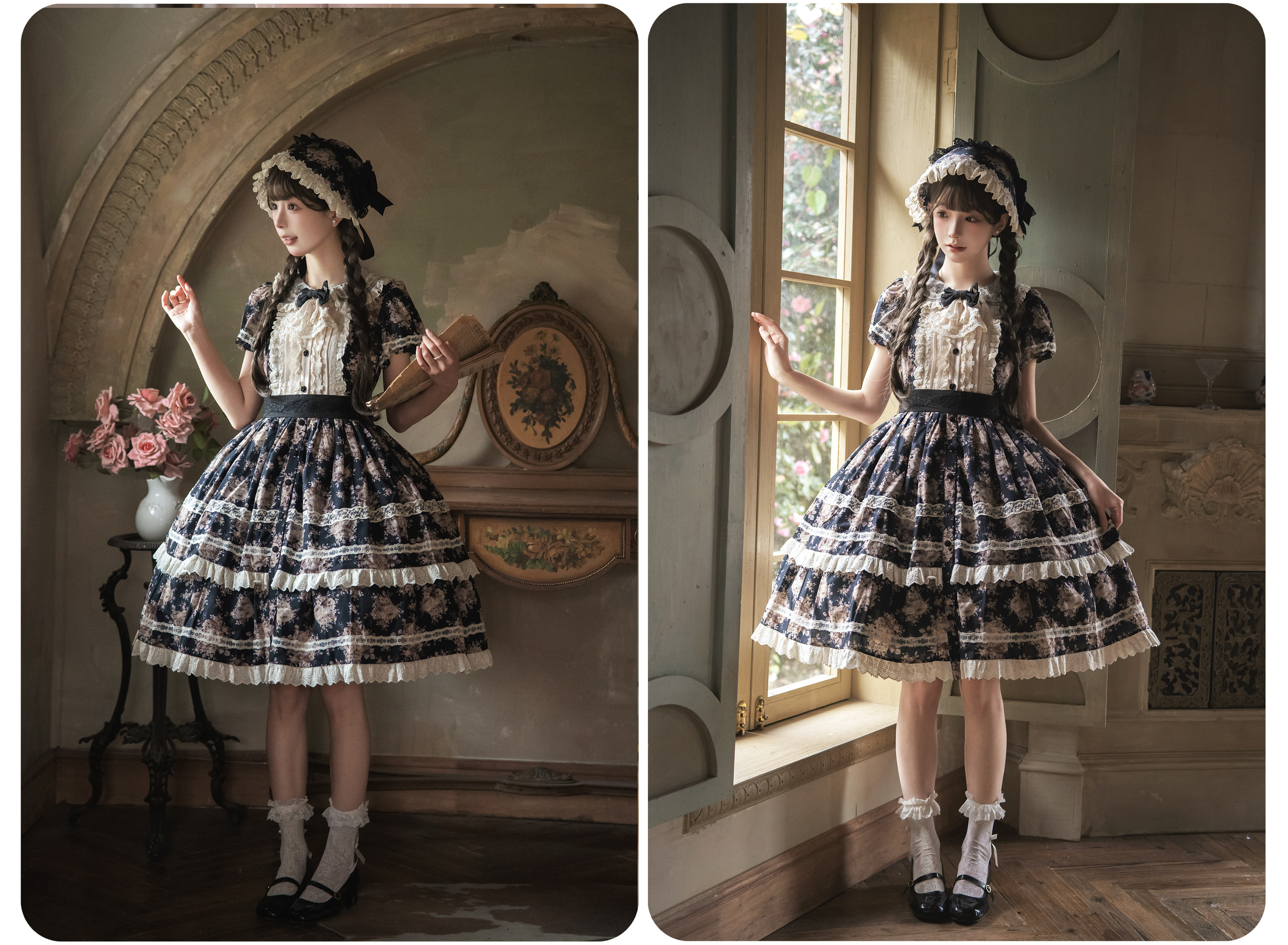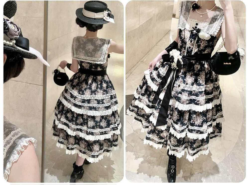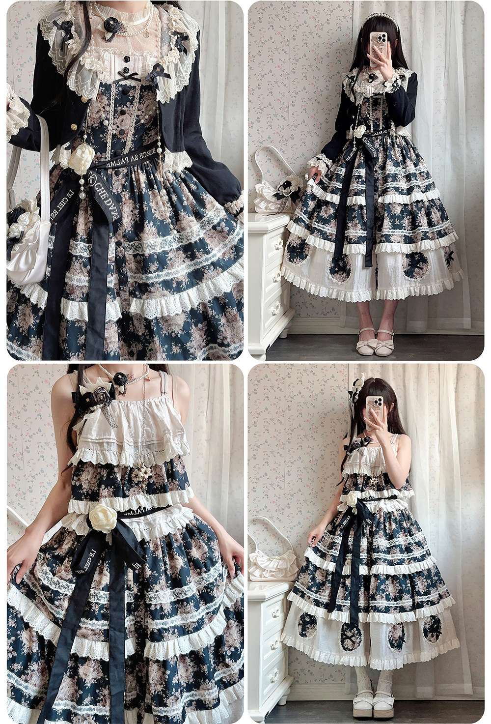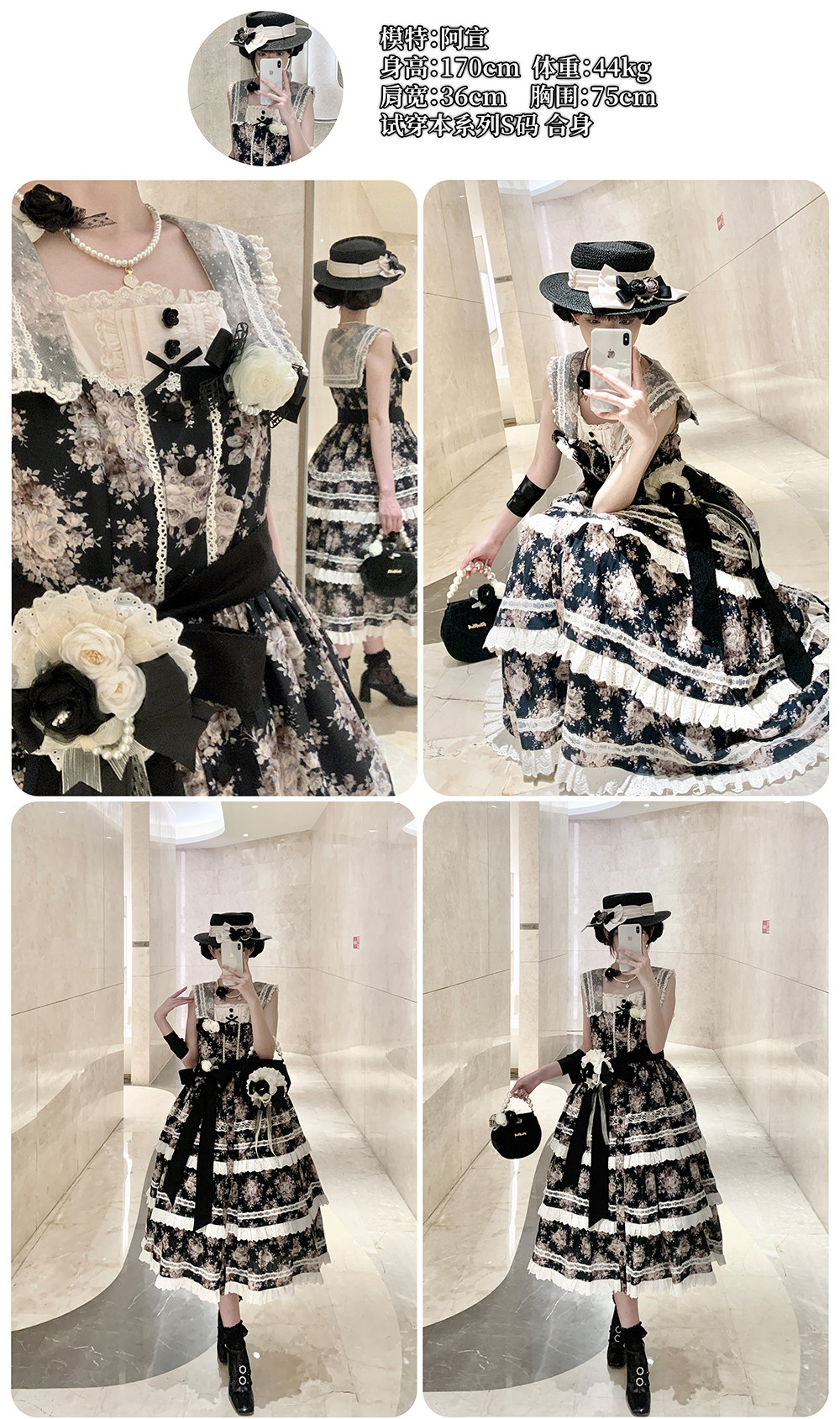 【定金】*黑蔷薇二批慢团*原创春秋碎花花蔷复古优雅洛丽塔连衣裙 [Original Page Link]