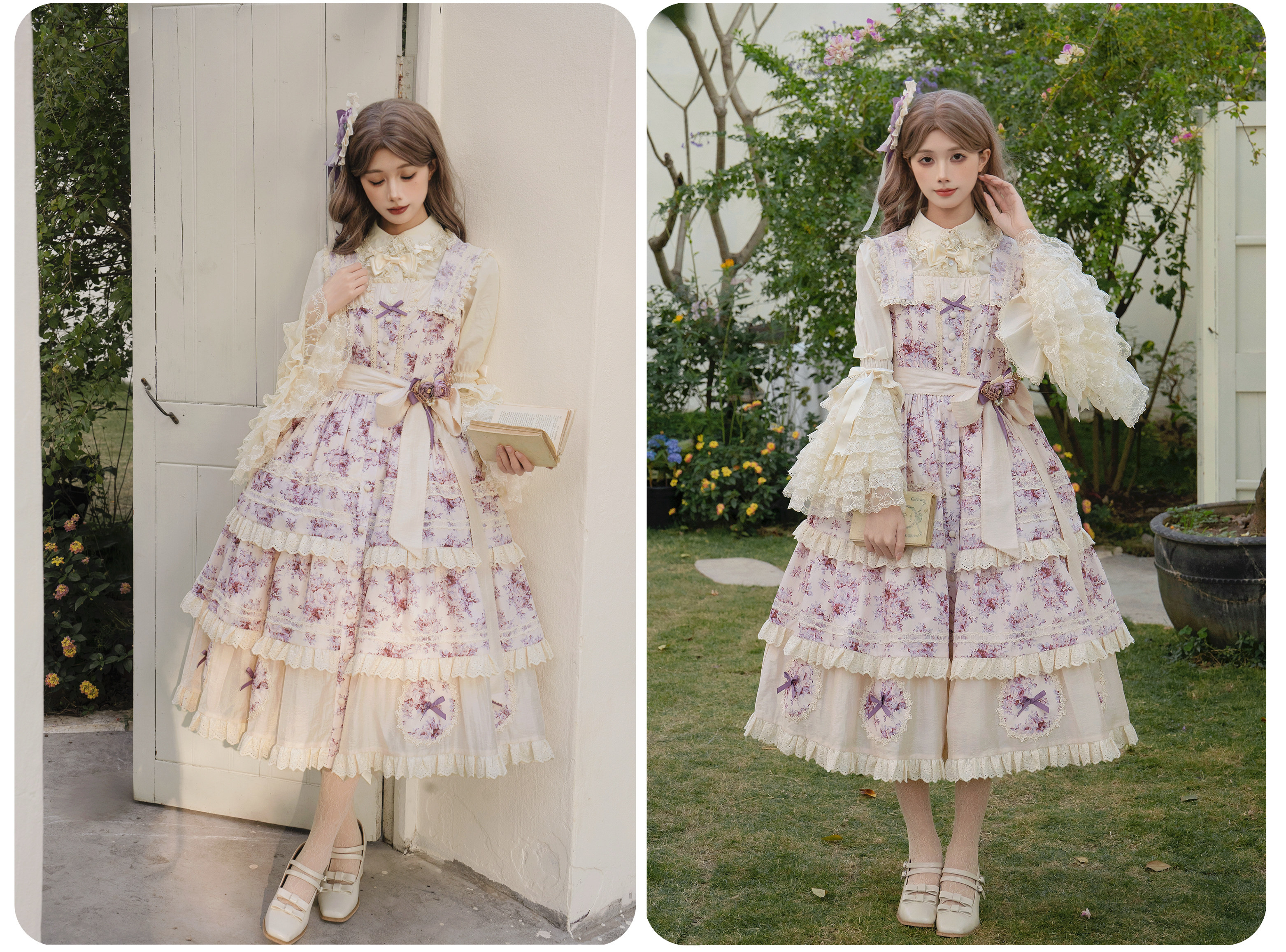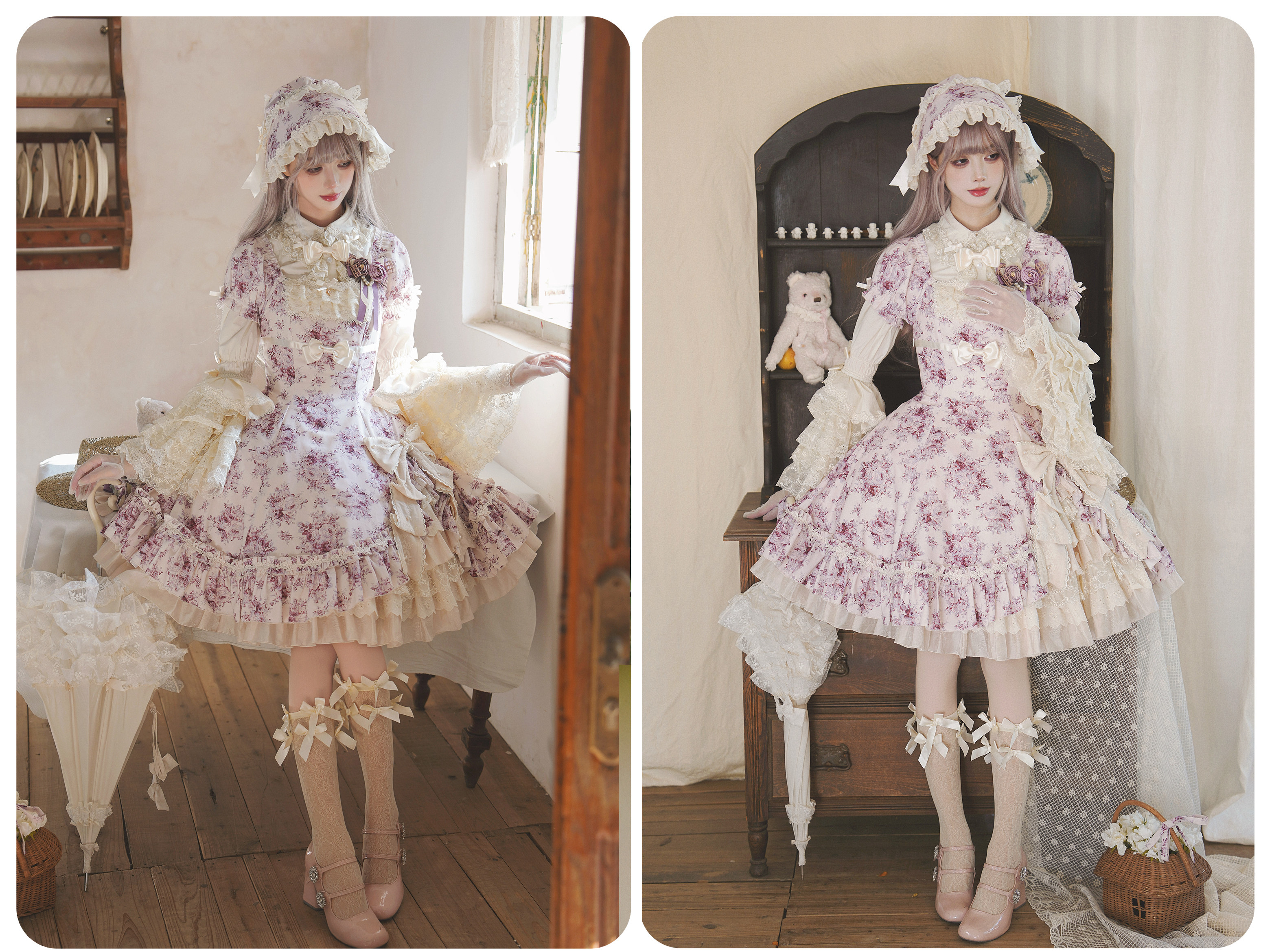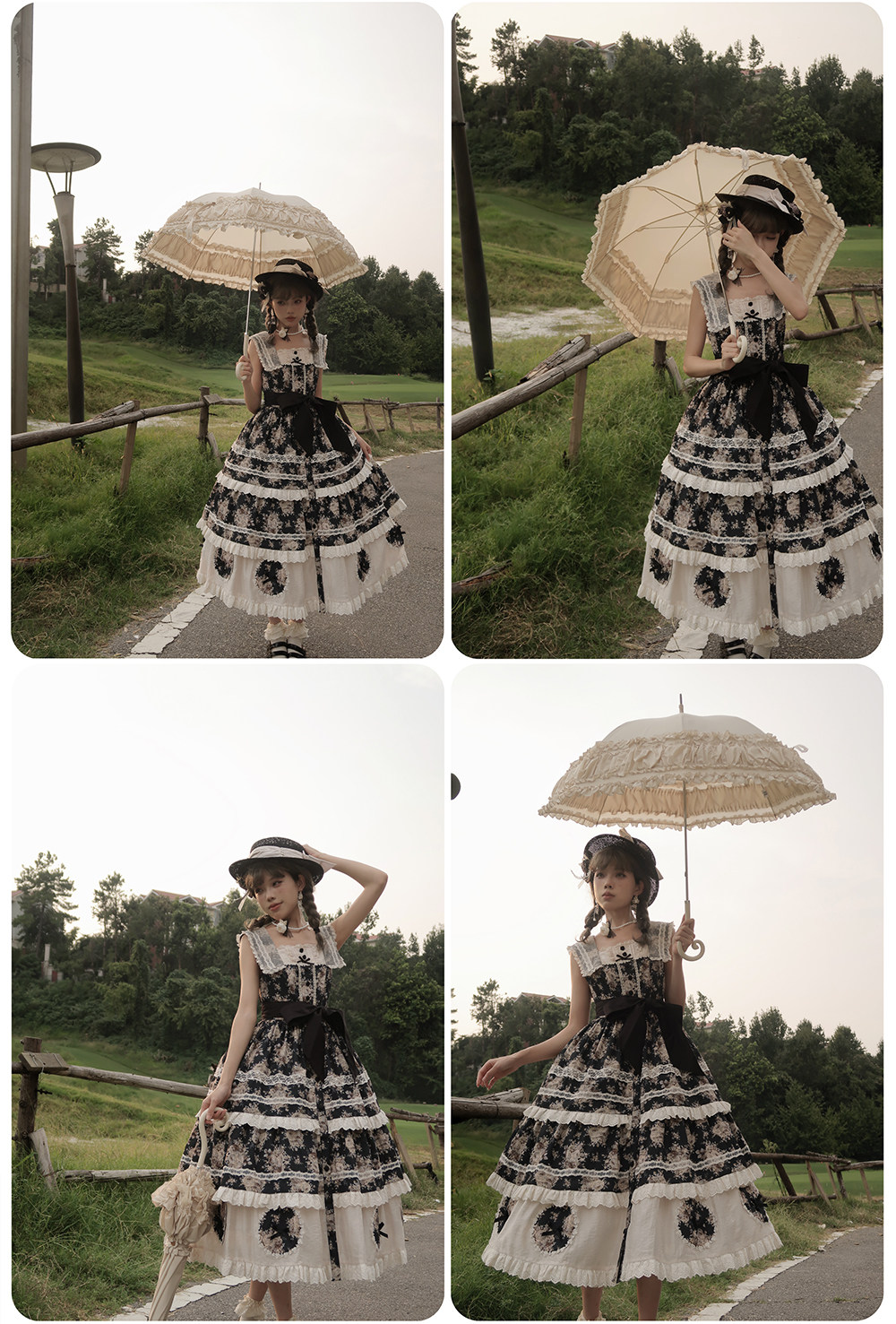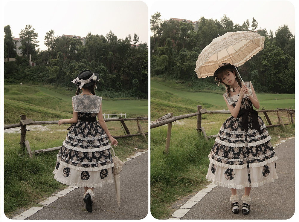 【定金】*黑蔷薇二批慢团*原创春秋碎花花蔷复古优雅洛丽塔连衣裙 [Original Page Link]