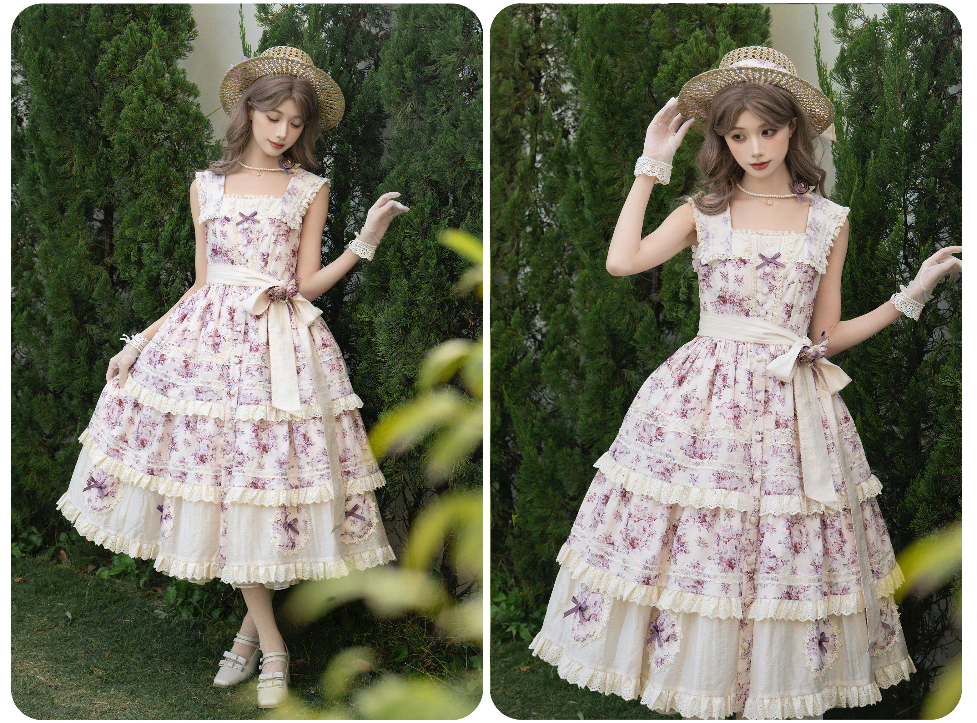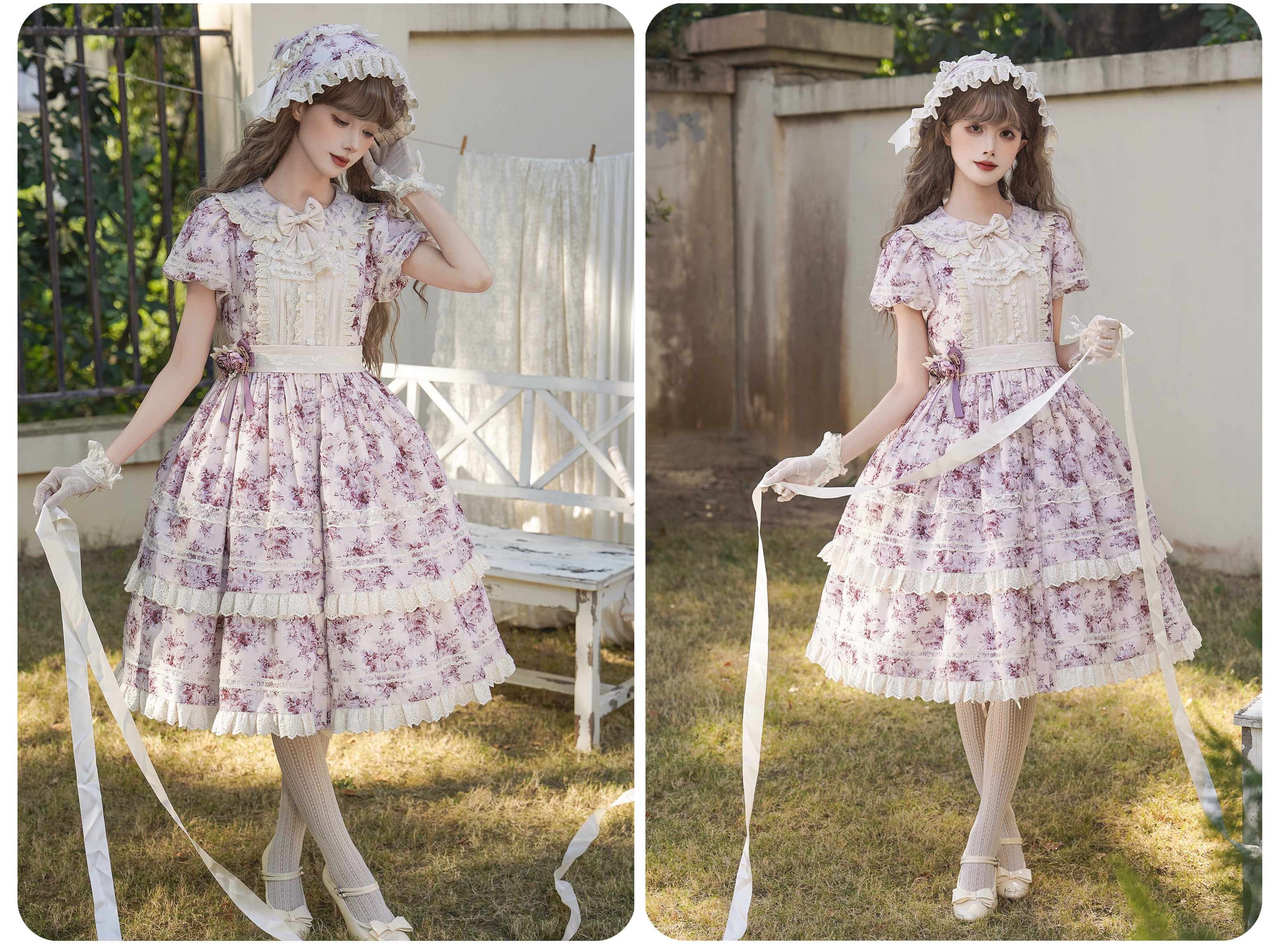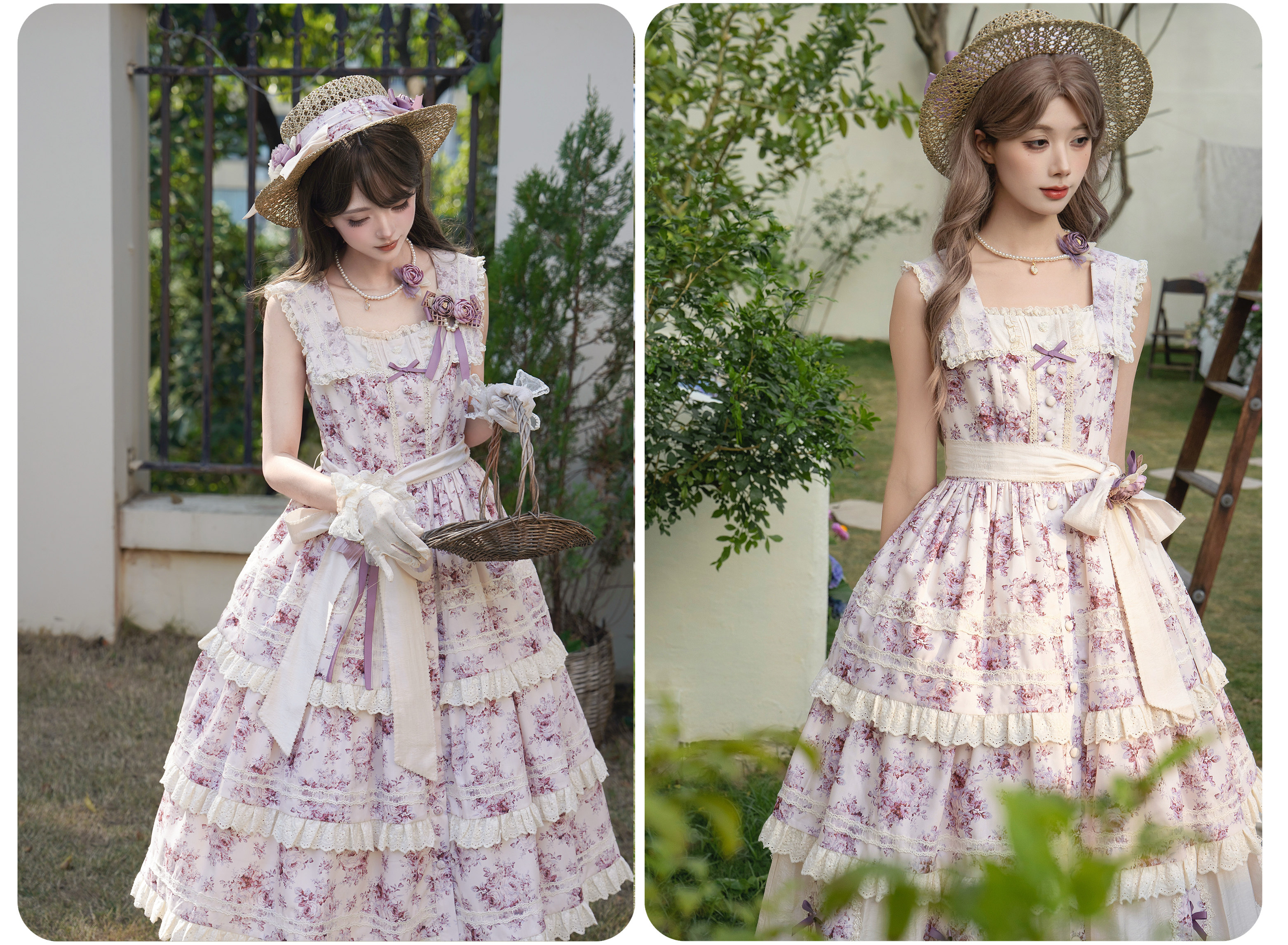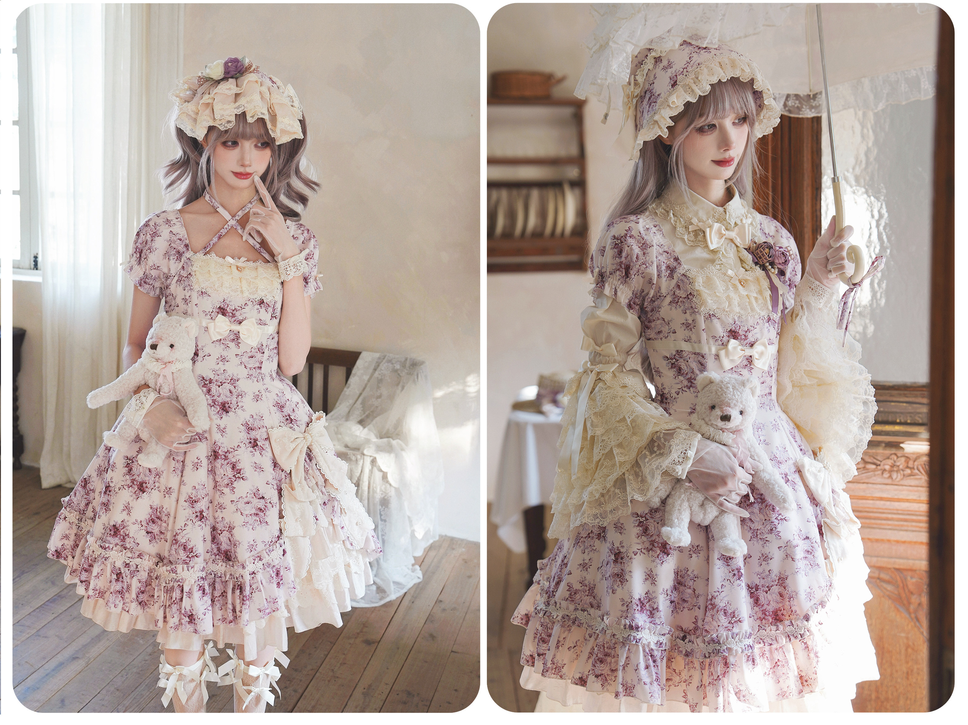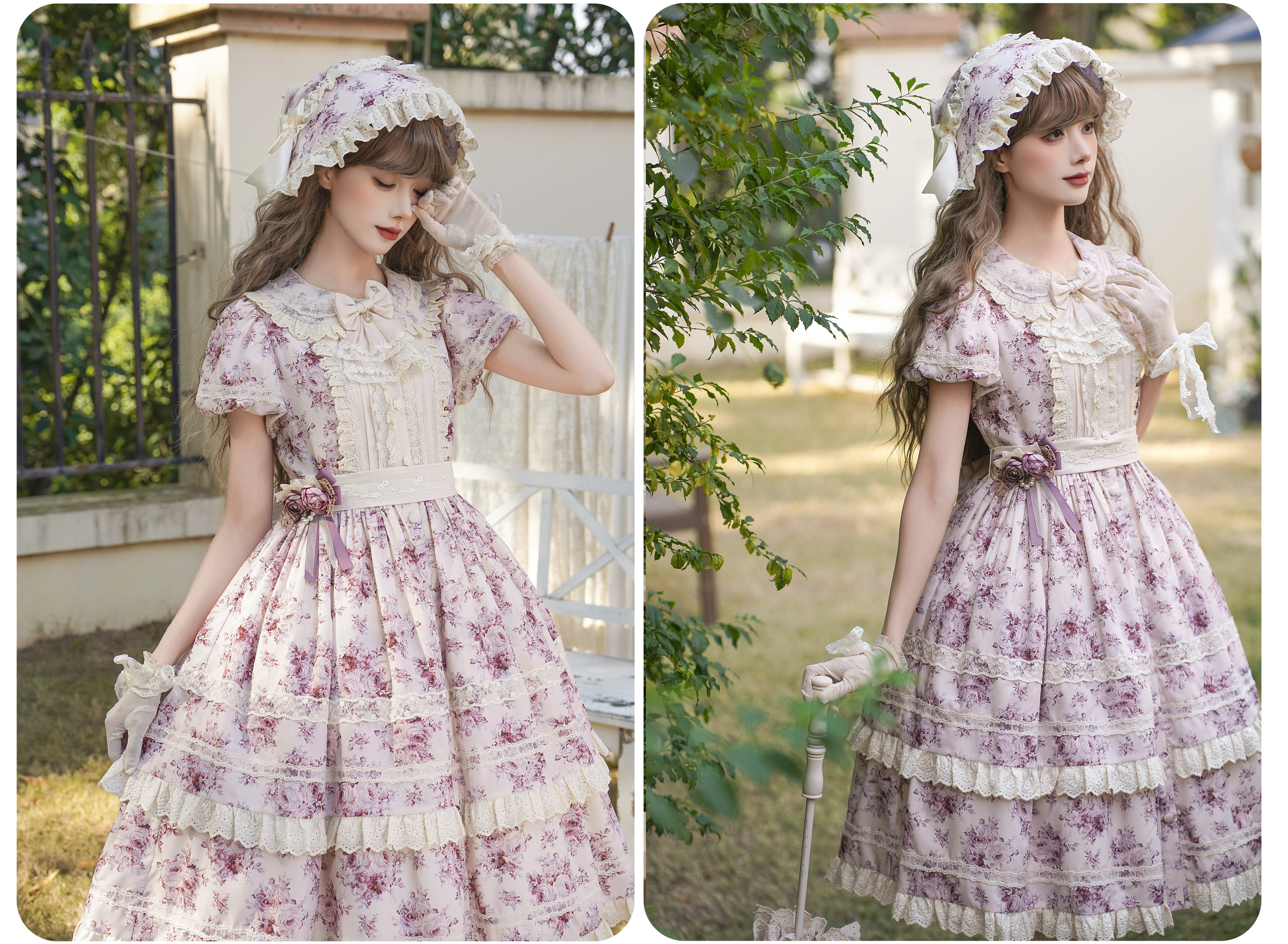 【定金】*黑蔷薇二批慢团*原创春秋碎花花蔷复古优雅洛丽塔连衣裙 [Original Page Link]