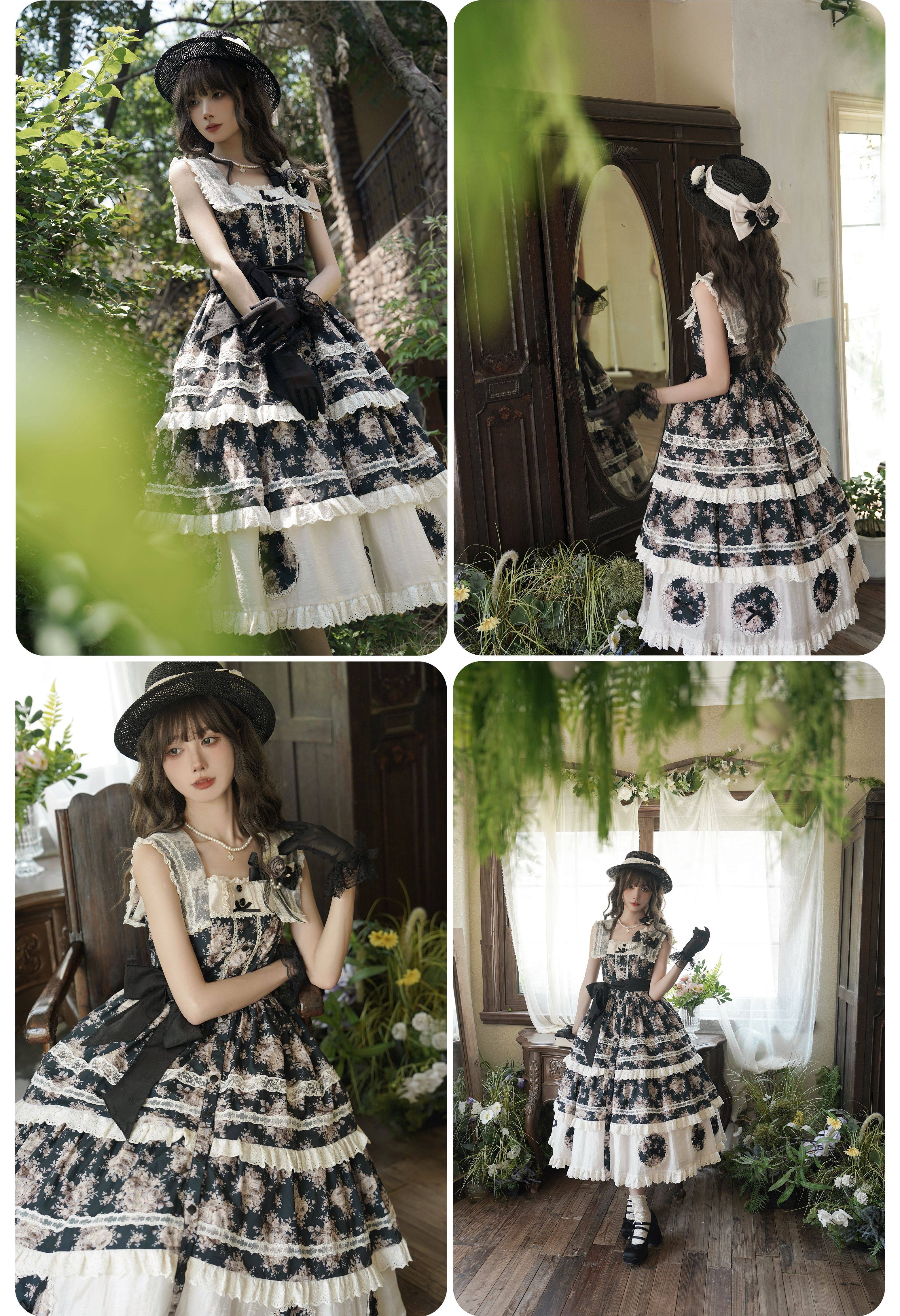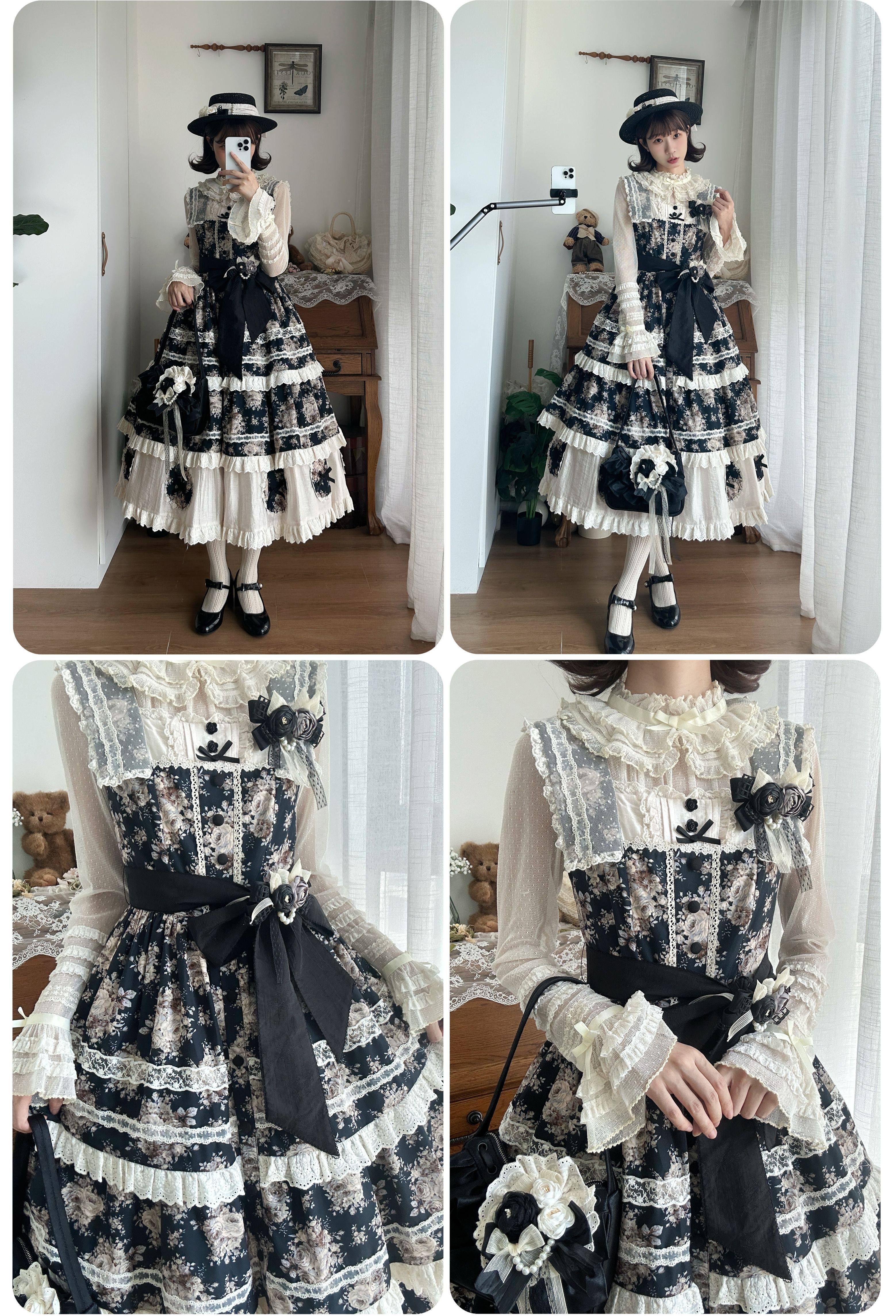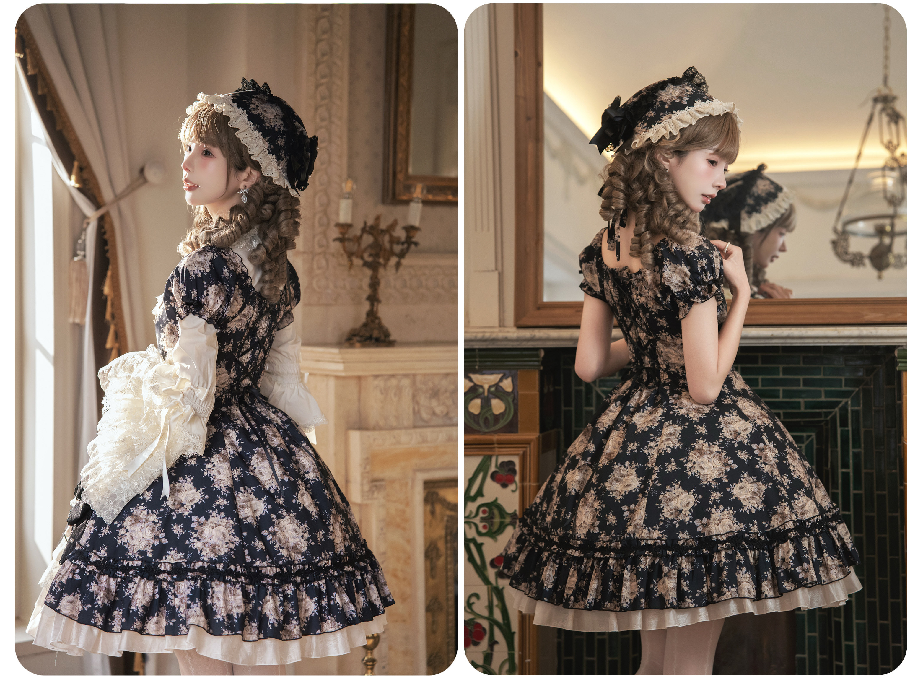 [Deposit] *Black Rose Second Batch Slow Group Order* Original Spring and Autumn Floral Print Retro Elegant Lolita Dress