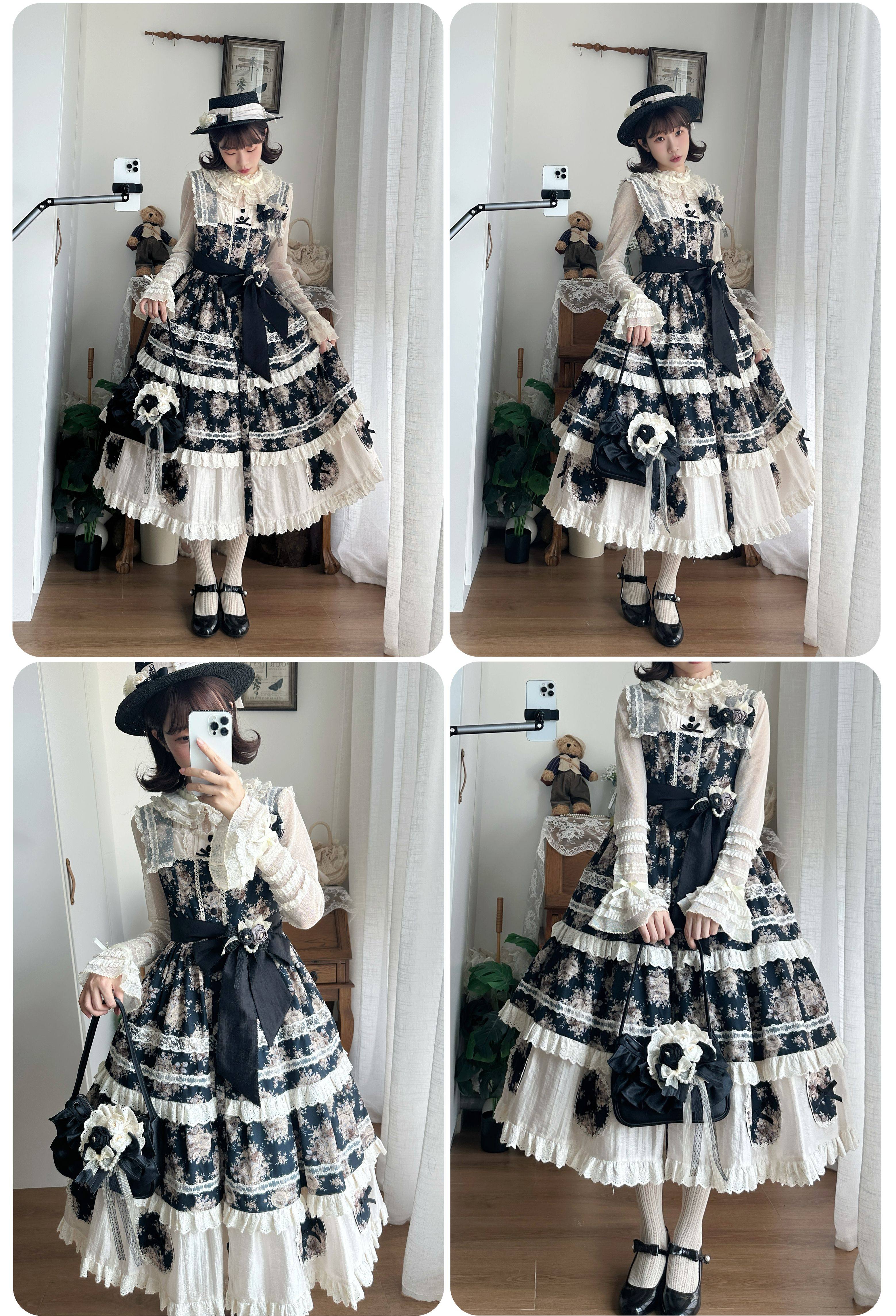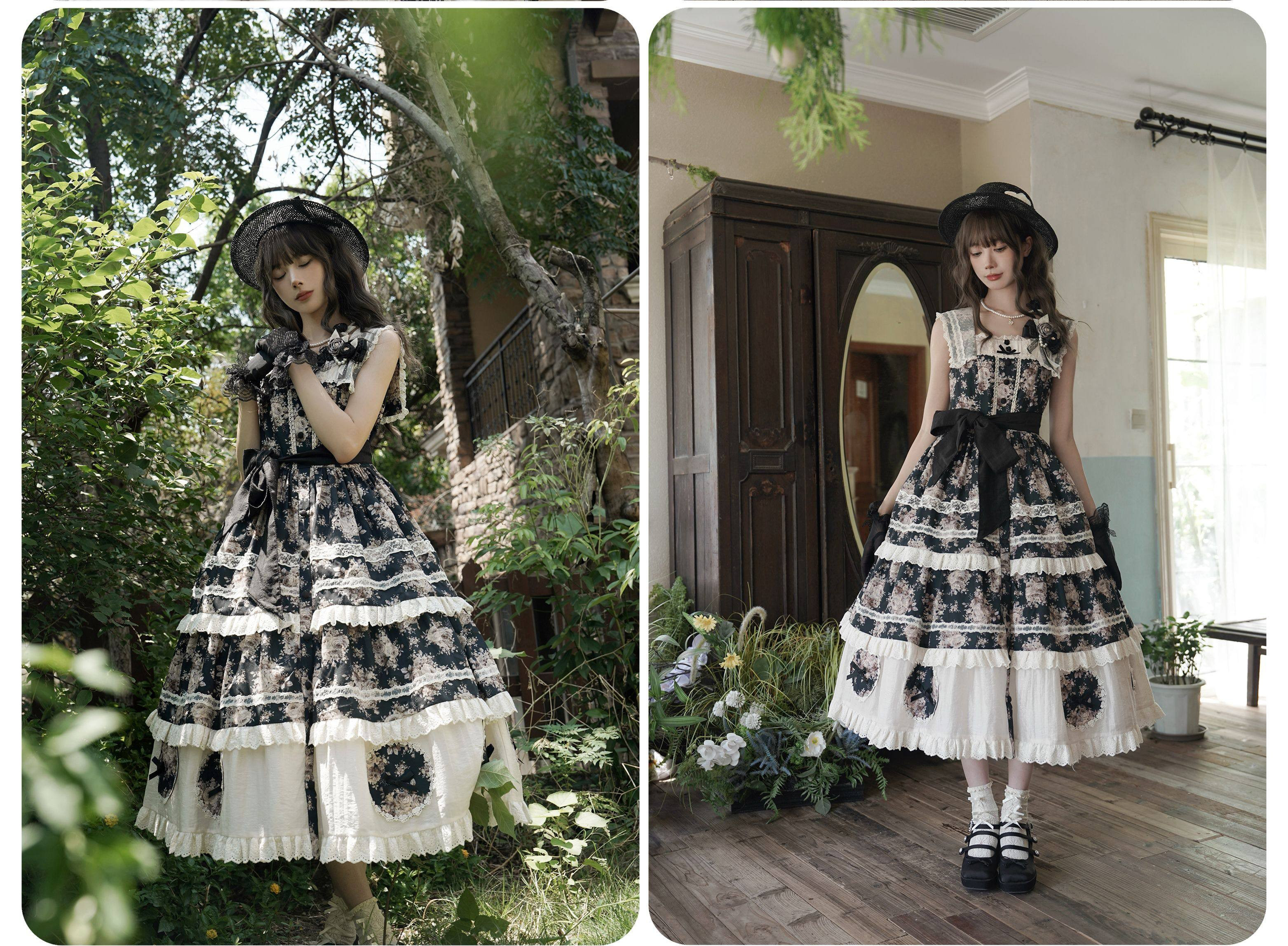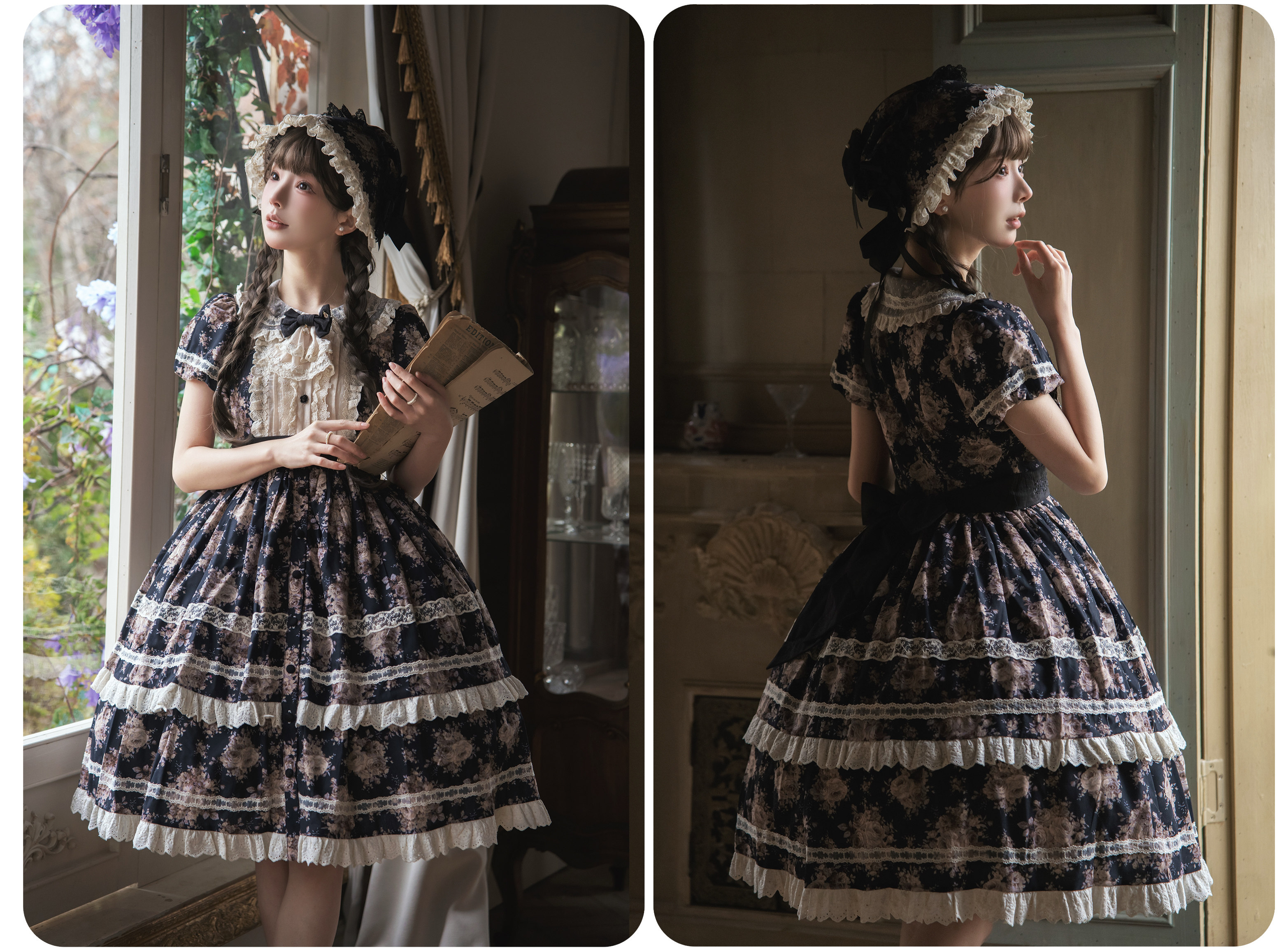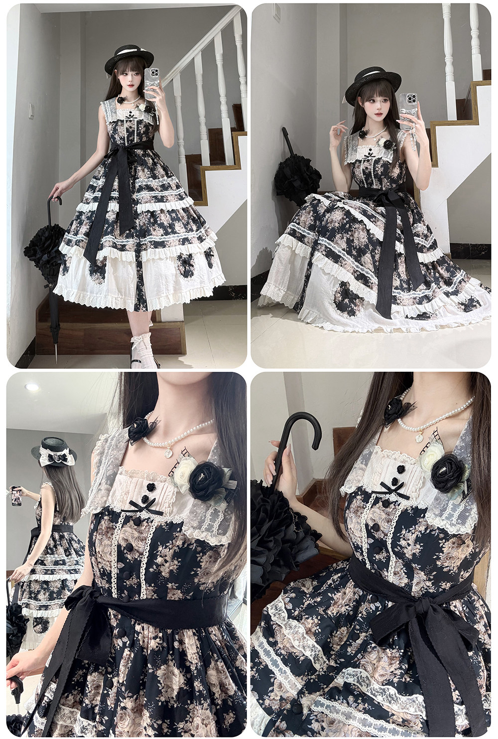 [Deposit] *Black Rose Second Batch Slow Group Order* Original Spring and Autumn Floral Print Retro Elegant Lolita Dress