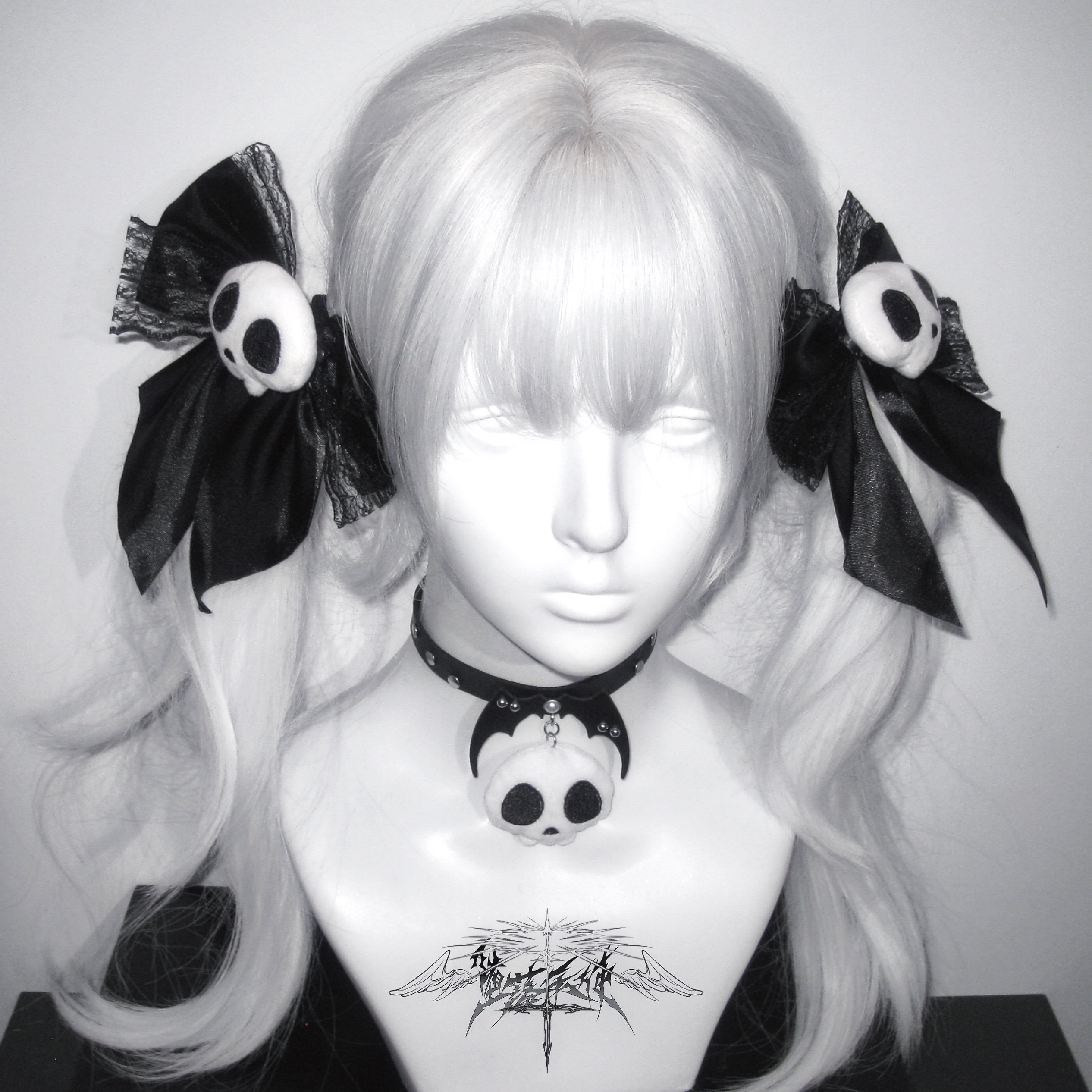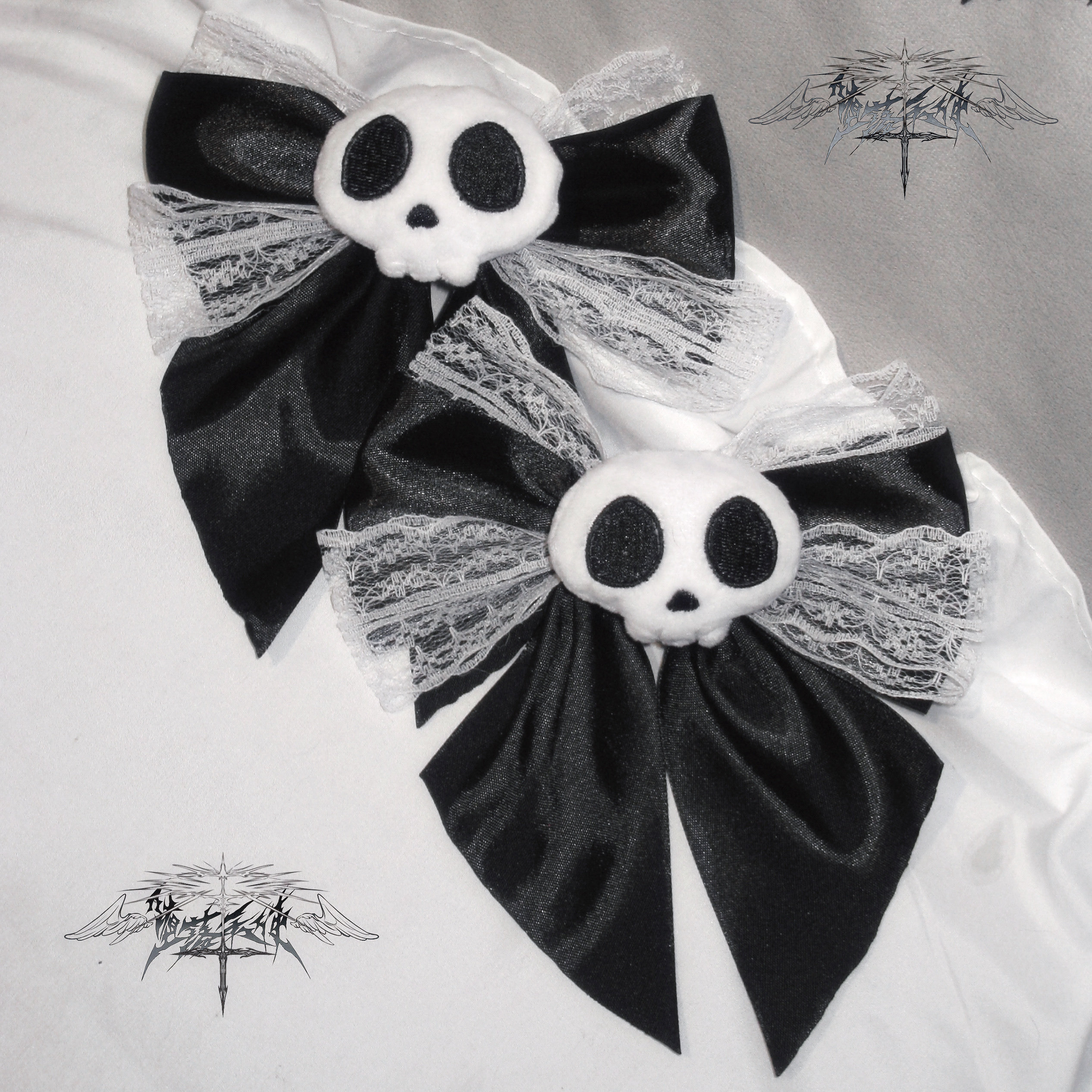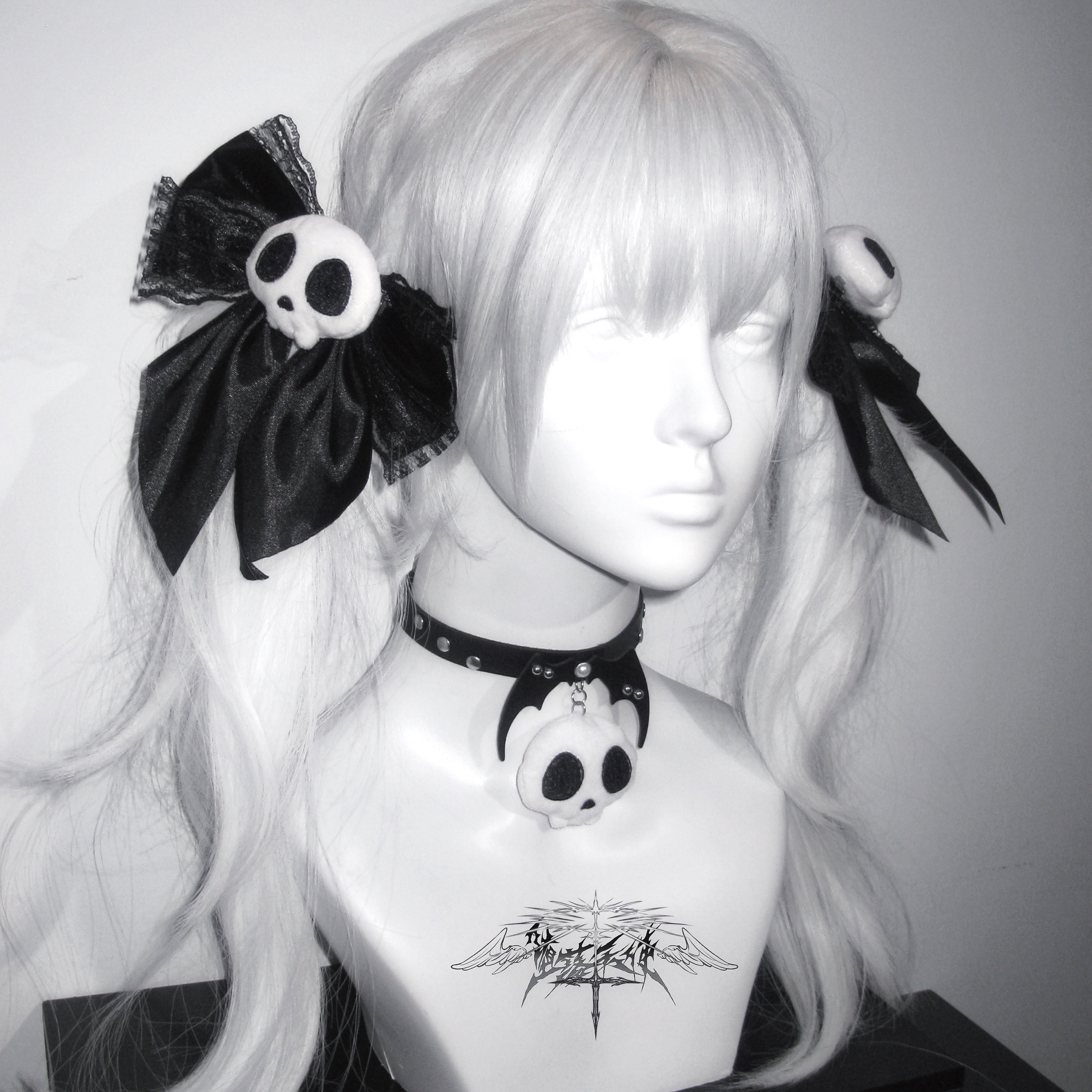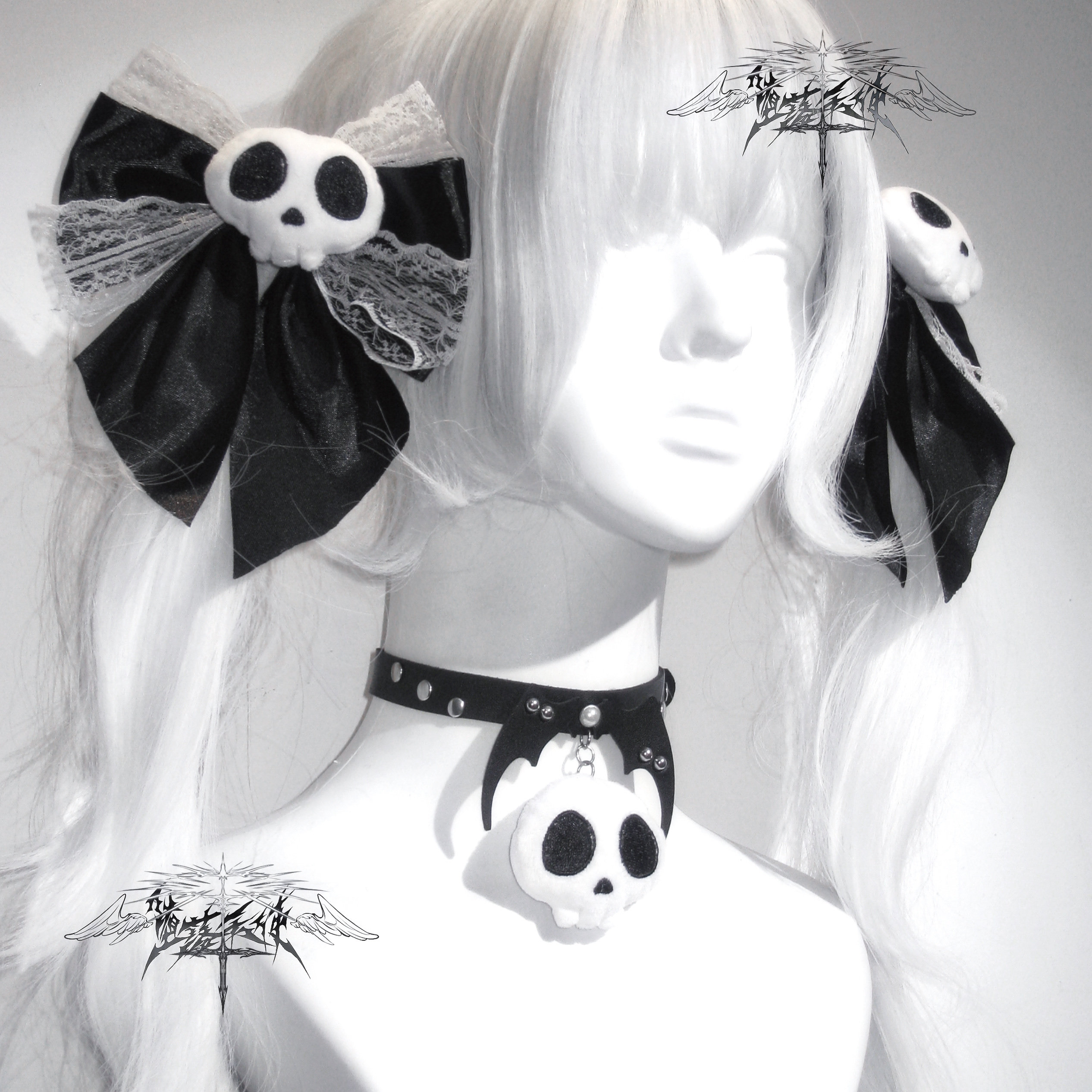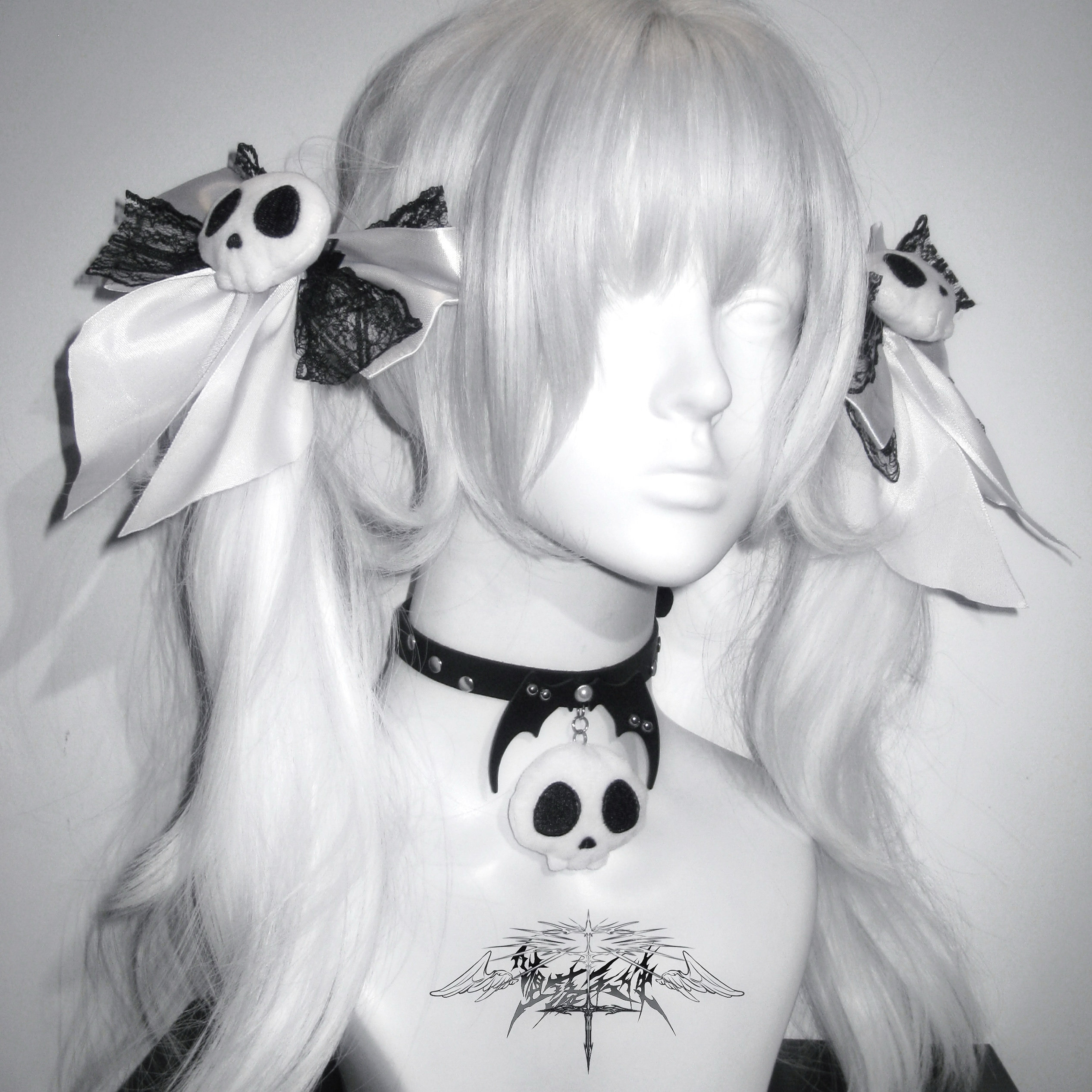 Fallen Angel | Original Subculture Cute Skull Plush Bow Lace Hair Clip Punk Collar